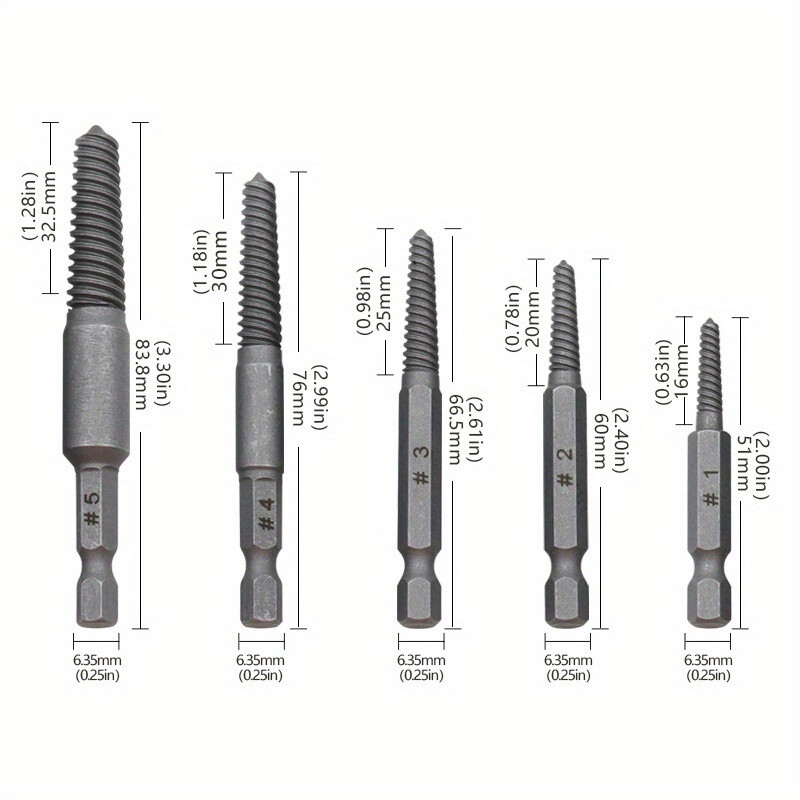 Notice: Due to the different monitor and light effect, the actual color of the item might be slightly different from the color showed on the pictures. Thank you! Please allow 1-2cm measuring deviation due to manual measurement. 5pcs High-Speed Steel Bolt Extractor Kit: Effortlessly Remove Damaged Screws, Bolts & Pipes, Time-Saving, Durable & Suitable For Professional And DIY Use Payment 1. We only accept payment through Payoneer. 2. Please make sure you have a valid account prior bidding. 3. Please pay for your item within 7 days after you order. Shipping 1. Buyer take responsibility in import / tax cost (not included in item price) 2. Pls contact with us to confirm extra cost if you need to upgrade the shipping option 3. If there's any concern about shipping, pls contact with us for further confirmation Return Policy 1. Refund or Replacement request is available within 30 days after parcel received and returning the item as the same condition as received. Please contact us to request a return authorization. Your name, auction number, and reason for return should be included in the message. 2. All items returned must contain all original packaging materials. Please repack the item carefully. Items returned will be tested and a new replacement will be shipping to buyer punctually. 3. In the event that a suitable replacement is not available then a refund will be issued. Shipping, handling and insurance fees are non-refundable. 4.If the item was found non-defective, the item will be sent back to buyer at buyer's expense. Items returned without authorization will be refused and returned to sender/buyer. 5. Buyer pay the shipping cost if the item damaged artificially, or buyer say "not like it", "size/color was different per they imaginary", etc. Contact us Please contact us via ebay message any time, all questions will be replied within 12 working hours. Customer Support Online : 9:00am - 22:00pm (GMT +8) Everyday