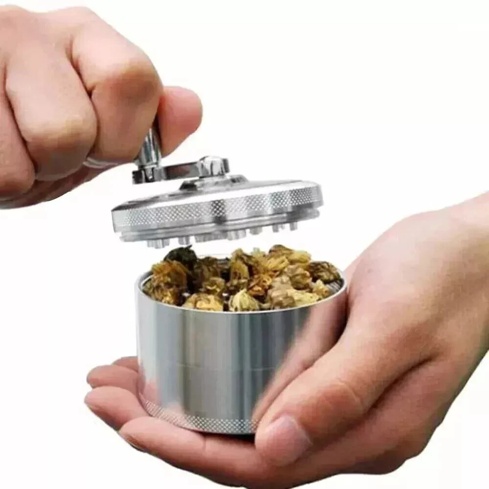 4 PCS Herb Tobacco Grinder Spice Herbal Metal Smoke Crusher Handle Hand Muller 100% brand new and high-quality made. 4 layers made from zinc alloy, solid and durable. Mill handle design makes grind easier. Small size, easily fits into your pockets. Specifications: Dimensions: 40 x 43mm Material: High Grade Zinc Alloy Razor sharp diamond-shaped grinding teeth Steel micro mesh screen to filter pollen Magnetic top enclosure Package Includes: 1x Grinder 1X Dugout Pipe