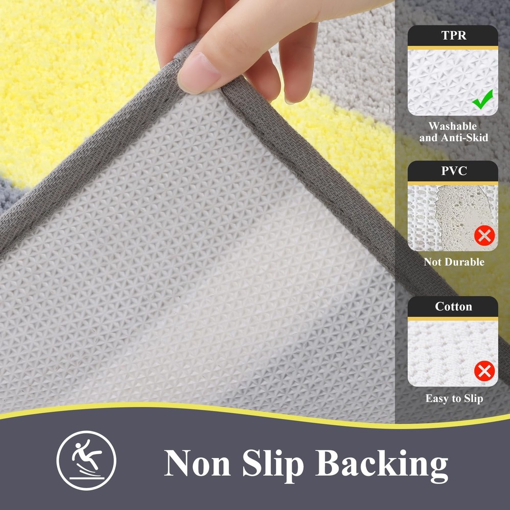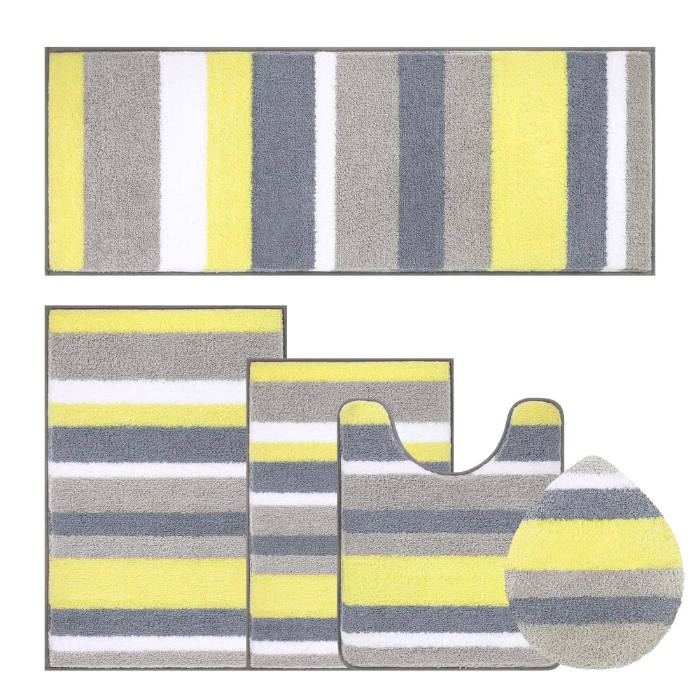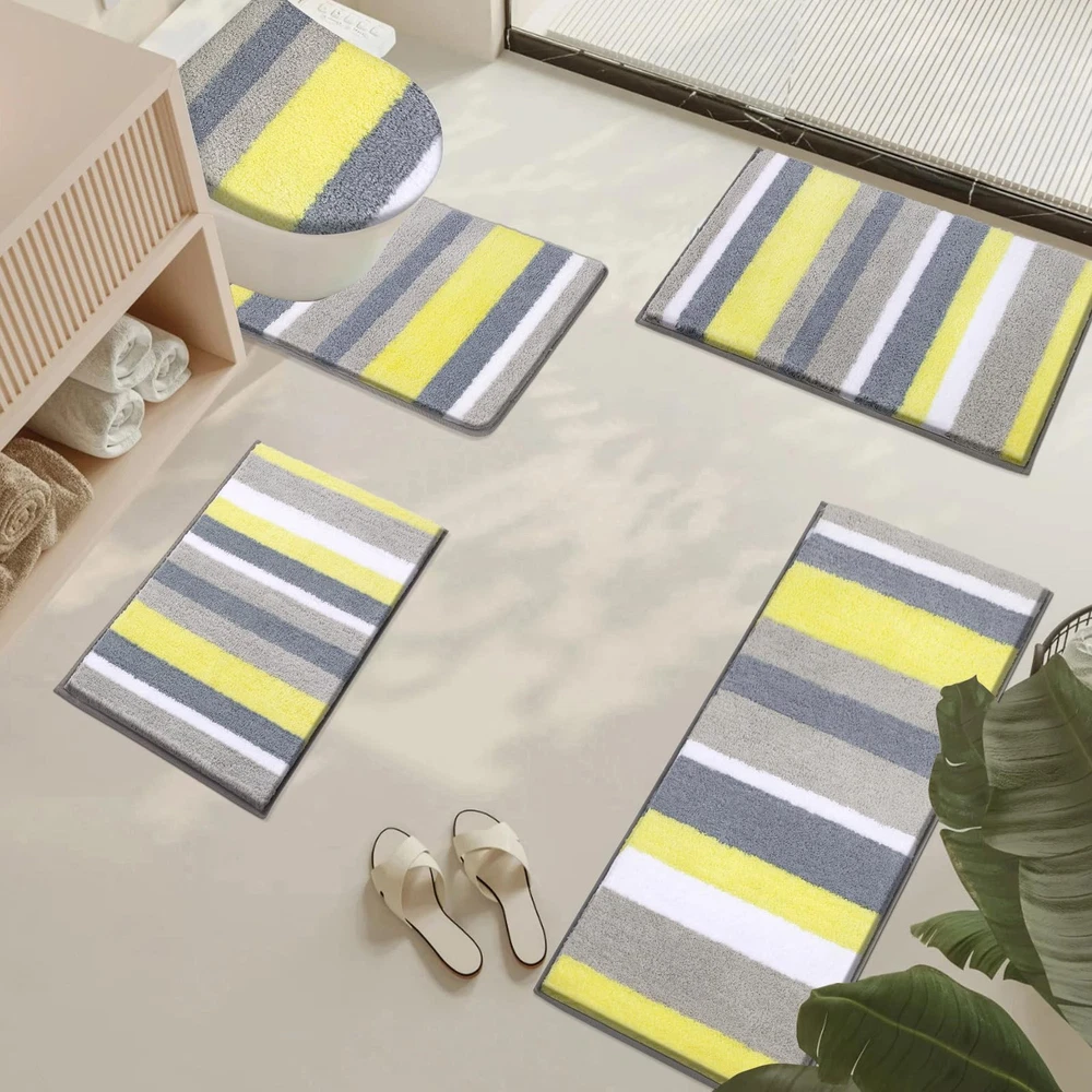 When you walk on the bathroom floor, do you sometimes feel fatigue or afraid of slipping? Microfiber bath mats will be your ideal choice! Why choose us? Not Easy to Shed- The shaggy microfiber mats adopt advanced fiber locking technology. The bathroom floor matts are not easy to shed and won’t be smelly. Gradient Stripes Patterns- The gradient stripes patterns are stylish and attractive, which will matched well with the towels, bathroom decorations and accessories. Non Slip TPR Bottom- High quality TPR materials are more slip-resistance than other PVC materials and cotton materials. Easy to Clean- The cushioned bathmat for home can be washed by hand or washing machine. Or you can use a vacuum cleaner to clean it. Specifications: Material: Premium Luxury Microfiber + TPR Pattern: Gradient Stripes Color: Yellow Thickness: 0.6 inch / 15 mm Size: 18''x26''+20''x32''+20''x47''+U20''x24''+Lid Cover Warm Prompt: Due to the light and camera, the color of the bathroom rug runner and the color in the picture will be slightly different. All dimensions are manually measured, so the deviation is 0.3 to 1.5 inches. Hope you can understand, thanks. Before placing the bath mat 2 pieces set on the floor, please make sure that the ground where it will be placed should be clean, flat and dry. Customer Service: If you have any questions, please contact us and we will try our best to help you deal with it within 24 hours. We will provide you with the most cost-effective shopping experience. Choose us=choose rest assured! Soft Bathroom Rug: The bath rugs set is made of microfiber materials. The thickness is 0.6 inches(15mm), which is soft and can provide enough support for you. Every time you walk on the shower mat barefoot, the soft fabric can soothe your tired feet Absorbent Bath Mat: The non slip bath floor mats set has superb good water absorption. And the bath mat set for bathroom uses non-slip TPR as the bottom material. It can improve friction on various floors including wooden floors and ceramic tiles Washable Bath Mat: You can toss bathroom rugs into the washing machine, wash them in cold water and hang them to dry or air dry. And our dozens of machine washing tests show that the bath carpet can withstand frequent machine washing without deformation Functional :18X26 inches+20X32 inches+20X47 inches+20X24 inches+lid cover bathroom mats use the stylish multi-color stripe design, which can be perfectly matched with towels and other bathroom decorations or accessories. Plrfect for various occasions such as bathroom, toilet, tub, kitchen, bedroom, door entrances, patio entry ways, beauty care business, pet house, and so on. It is also ideal as a gift for your loved ones on Christmas, wedding, Father’s Day or Mother’s Day Warning: Before placing the bathroom rugs and mats set on the floor, make sure that the ground where it will be placed should be clean, flat and dry. If there is water or dust under the absorbent bath mat runner, it may cause slippage