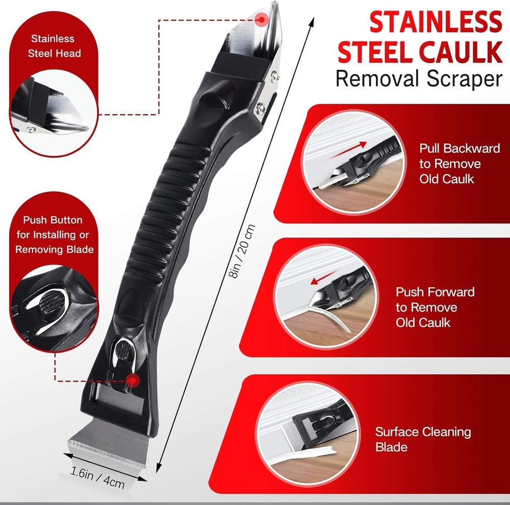 5-Piece Silicone Caulking Tool Kit with Stainless Steel Scraper for DIY Projects ‹ › ‹ › ‹ › ‹ › ‹ › ‹ › ‹ › ‹ › 5-Piece Silicone Caulking Tool Kit Your Ultimate Companion for DIY Projects Transform your home projects with precision and ease using our meticulously designed 5-Piece Silicone Caulking Tool Kit, featuring a robust stainless steel scraper. Perfect for both DIY enthusiasts and professionals, this kit promises impeccable results every time. Features: Multifunctional Design: Equipped with caulk removers, putty knives, and various shapes of caulking scrapers, it caters to gaps of all sizes. High Efficiency: Lightweight and easy to handle, this kit ensures a smooth experience for beginners, making your projects quicker and easier. Durable Material: Crafted with stainless steel blades and ergonomic ABS handles, these tools resist rust and wear, standing up to repeated use. Multiple Projects: Ideal for indoor and outdoor applications, this tool kit is perfect for kitchens, bathrooms, living rooms, and exterior decoration. Perfect Choice: Achieve bubble-free, smooth finishes on walls, floors, and windows with this comprehensive kit. Comes with a compact case for organized storage. Benefits: Achieve professional results without the mess. Reduce effort and avoid frustrating rework with a smooth-gliding design. Versatile enough for a wide range of applications around the home. Store conveniently and keep your tools organized within the compact case. Why Choose Our Caulking Tool Kit? Whether you're refreshing your bathroom, tackling kitchen renovations, or enhancing your outdoor spaces, our 5-Piece Silicone Caulking Tool Kit is your reliable partner. Experience the ease of achieving clean edges and optimal finishes without messy cleanups. Elevate your DIY projects and renovations—order your Silicone Caulking Tool Kit today and create the polished look your home deserves! Shipping Free & Fast Shipping - We offer free shipping to most of the USA with a normal delivery time of 3-7 days. However, due to the current situation, additional delivery time (up to 3 weeks) may be required for some items. Alternative Carriers - We may use alternative carriers (e.g. USPS, FedEx, UPS, etc.) to ensure your package arrives safely and on time. Due to the use of multiple carriers, we are unable to provide a tracking number automatically. Handling Time - Orders are processed and shipped within 1-2 business days of receiving cleared payment. Shipping Restrictions - Shipping to Alaska, Hawaii, Puerto Rico, Guam, and other US territories may incur shipping charges or delivery restrictions. Please contact us before ordering, or your order can be refunded/cancelled. State Restrictions - There may be restrictions based on your state of purchase. For example, certain items may not be shipped to California due to state regulations. Contact for Tracking Updates - If you require tracking updates or have any concerns about the delivery of your order, please feel free to contact us, and we will be happy to assist you. Return 30-Day Hassle-Free Returns - We want you to be completely satisfied with your purchase. If you are not, you can return the item within 30 days of receiving it for a full refund or exchange. Easy Return Process - To start a return, simply contact us and we will provide you with a prepaid return shipping label and detailed instructions. Restocking Fee - There are no restocking fees for returns. However, the buyer is responsible for return shipping costs if the return is not due to a seller's error. Refund Processing Time - Refunds will be processed within 5 business days of receiving the returned item in its condition. Payment We accept all major credit cards, PayPal, and Apple Pay for your convenience. Your payment information is secure and encrypted to ensure a safe and seamless transaction. Please complete your payment within 3 days of purchase to avoid any delays in shipping. Feedback Your feedback is extremely important to us. We strive to provide the best products and customer service possible. If you are satisfied with your purchase, please take a moment to leave us a positive review. If you have any concerns or issues with your order, please contact us before leaving negative feedback. We are committed to resolving any problems and ensuring your satisfaction. Contact Us If you have any questions or concerns, please feel free to out to our customer support team. You can contact us through the eBay messaging system. We are available Monday to Friday, 9:00 am to 5:00 pm EST, and we will do our best to respond to your inquiry within 24 hours. Buy it now and enjoy a pleasant shopping experience! Model: Caulking Tool Kit Item Width: Caulking Tool Kit Item Length: Caulking Tool Kit Item Height: Caulking Tool Kit Item Weight: 0.11 kg Unit Quantity: 5 Material: ABS,Stainless Steel,Silicone Type: Tool Set Number of Pieces: 5 Unit Type: Unit