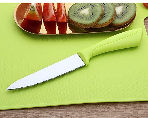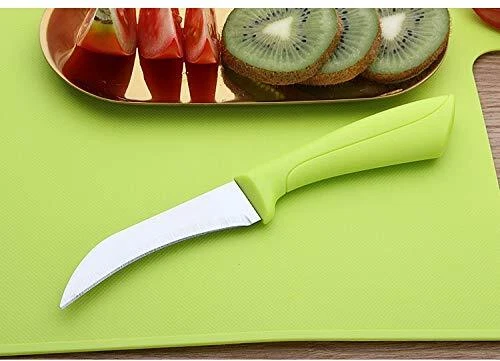 ☑ Best Value Combo--- 【Package Include: 3 knives, 1 peeler and 1 cutting board】 ┉┉┉┉┉★┉┉┉┉┉★┉┉┉┉┉★┉┉┉┉┉★┉┉┉┉★┉┉┉┉┉★┉┉┉┉┉┉ Features: ① ☑ Various Knife Set--- Sharp stainless steel blades, solid ergonomic handles for a safe and secure grip ✔5 inch Utility Knife Ideal for prepping and straight cuts of fruits, vegetables and boneless fish and meats ✔4 inch serrated knife Multi-purpose Serrated Knife, perfect for slicing cake, crusty bread, bagels, pastries, it is also great for cutting slippery and wax skinned fruit like pineapples, lemons, tomatoes, and more ✔3.5 inch paring knife Bird’s beak shape paring knife, curved blade design makes paring small round fruit and vegetable easier ② ☑ Safe Material & Perfect Size Cutting Board --- BPA Free safe material, perfect small size measuring at 11.5x7.5 inches, ultra lightweight, non slip surface, both sides are usable, easy grip handle design, convenient and easy to hand and storage ③ ☑ Extra Bonus--- Multi function peeler with bottle opener and easily remove eyes from potatoes, in addition, it is also a fish scale remover ④☑ So Many Use---- Perfect knife set for daily use on fruit and vegetable to make salad, snack, a quick breakfast, processing food for baby, lightweight and compact size make it convenient to take out for picnic, barbecue Caution▲ Knives are very sharp, please keep out of reach of children ✔ Great Value Combo → Package Include: 3 knives, 1 peeler and 1 cutting board ✔ Various Knife Set → Sharp stainless steel blades, solid ergonomic handles for a safe and secure grip, 5 inch Utility Knife is ideal for prepping and straight cuts of fruits, vegetables and boneless fish and meats, Multi-purpose 4 inch Serrated Knife, perfect for slicing cake, crusty bread, bagels, pastries, it is also great for cutting slippery and wax skinned fruit like pineapples, lemons, tomatoes, and more ✔ Safe Material & Perfect Size Cutting Board → BPA Free safe material, perfect small size measuring at 11.5x7.5 inches, ultra lightweight, non slip surface, both sides are usable, easy grip handle design, convenient and easy to hand and storage ✔Extra Bonus → Multi function peeler with bottle opener and easily remove eyes from potatoes, in addition, it is also a fish scale remover ✔So Many Use → Perfect knife set for daily use on fruit and vegetable to make salad, snack, a quick breakfast, processing food for baby, lightweight and compact size make it convenient to take out for picnic, barbecue