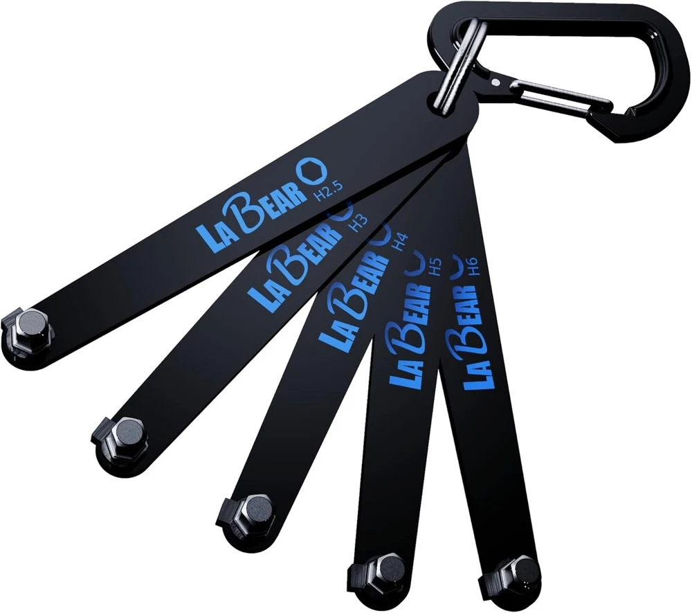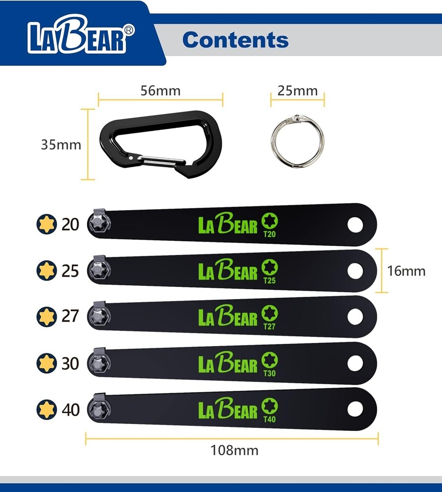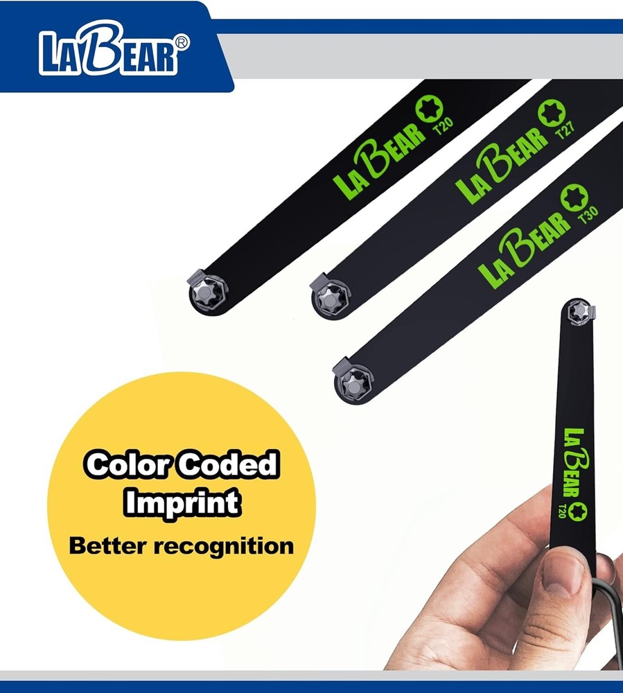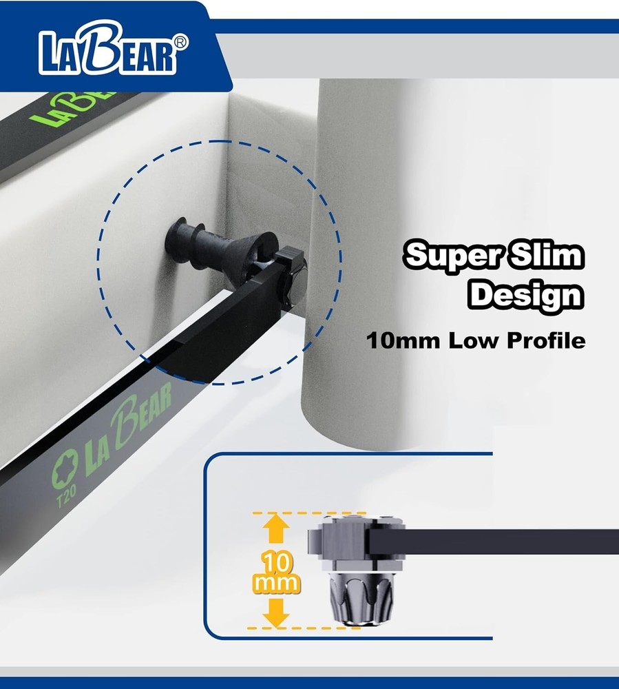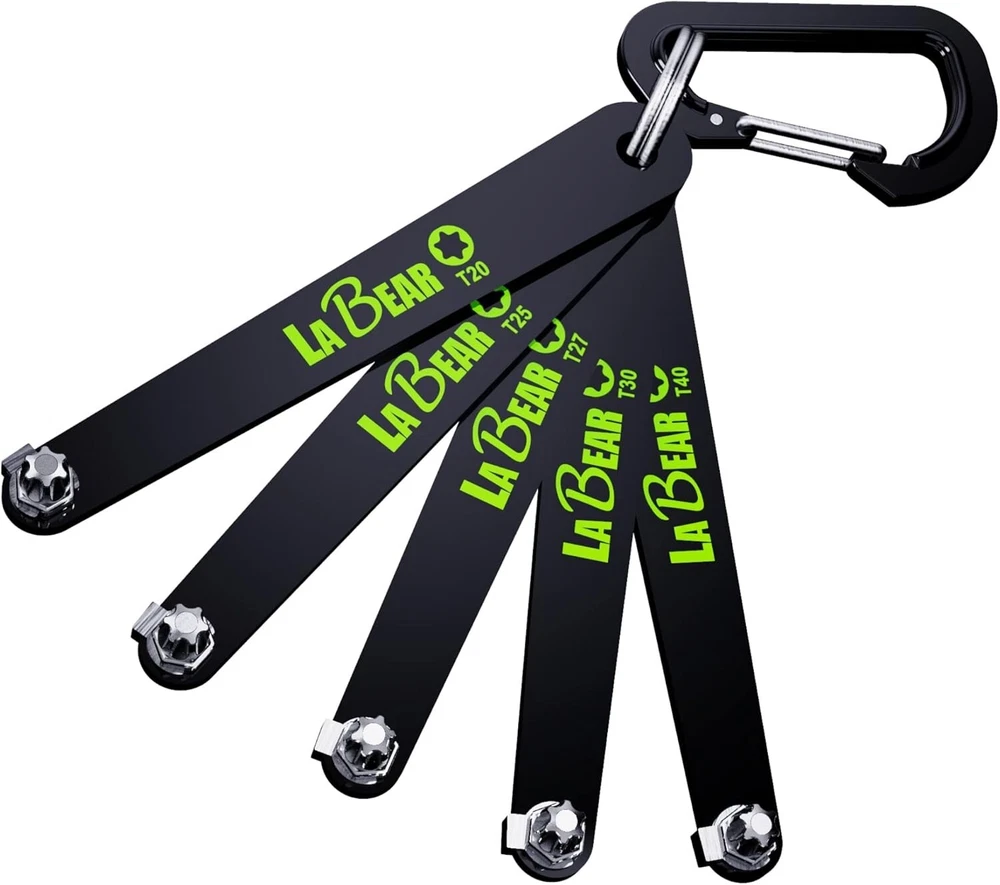 Low profile torx set, Low profile torx, TORX 5-Piece Ultra Low Profile Offset Screwdriver Set, Star, 90 Degree Straight Slim Plate For Tight Area, T20, T25, T27, T30 & T40, EDC Screwdriver About this item 【Heavy Duty Right Aangle】: TORX size: T20, T25, T27, T30, T40 which with a stubby low profile and long flat handle with a 90-degree screwdriver set are perfect for tight workspaces and close quarters. The plate-shaped handle is easy to press and apply force and is even strongly tightened. screw can be easily loosened. 【Low Profile】: 10mm clearance, allows screwdriver access to hard-to-reach areas, useful not only for DIY at home but also for professional hard work on-site such as behind dashboards and inside electronics.. the bits can securely enter the screw groove to prevent the screw from being stripped. 【Application】: Included carabiner and key ring, this lightweight set is the perfect clip-on addition for a tool bag, belt, or utility keyring. The steep offset of these drivers’ heads makes them ideal for maintenance work on small appliances with little working room, electronics and electrical equipment with complex wiring, and obstructed fasteners in complex spaces. 【High Quality】: Useful not only for DIY at home but also for professional hard work on site. Securely enters the screw groove to prevent the screw from being stripped. Each screwdriver bit is constructed of durable S2 alloy steel with visible color-coded driver shapes and sizes imprinted on the body handle for clear and easy identification of bit measurements.