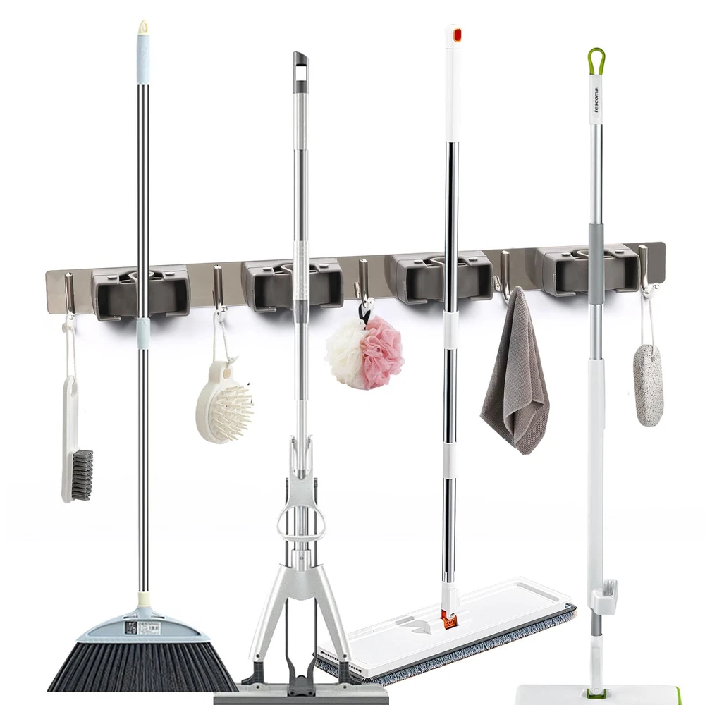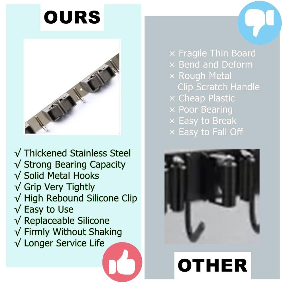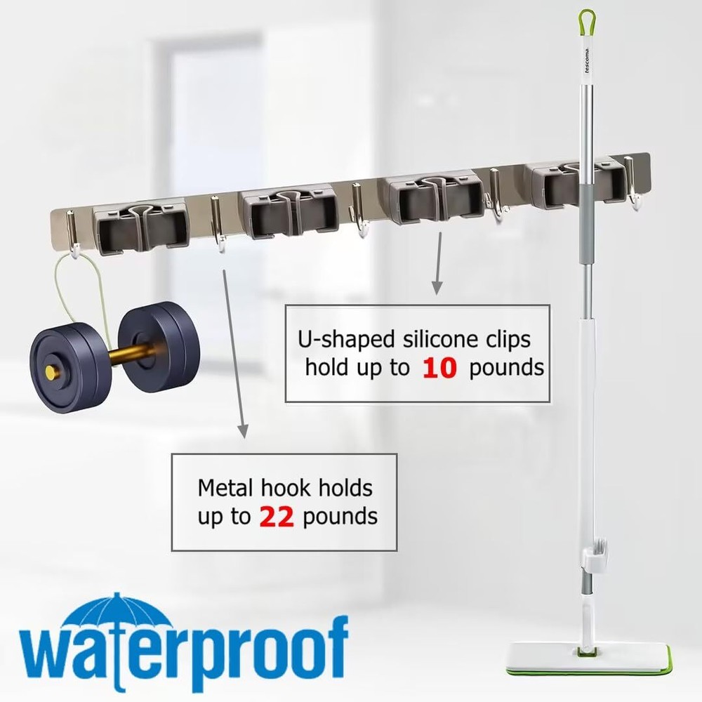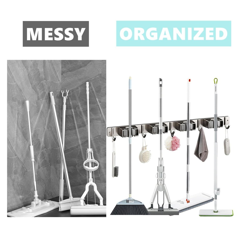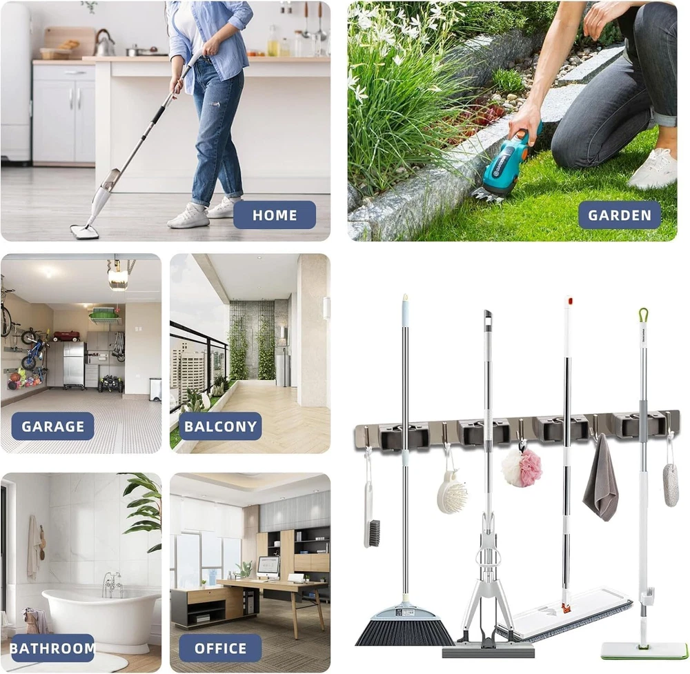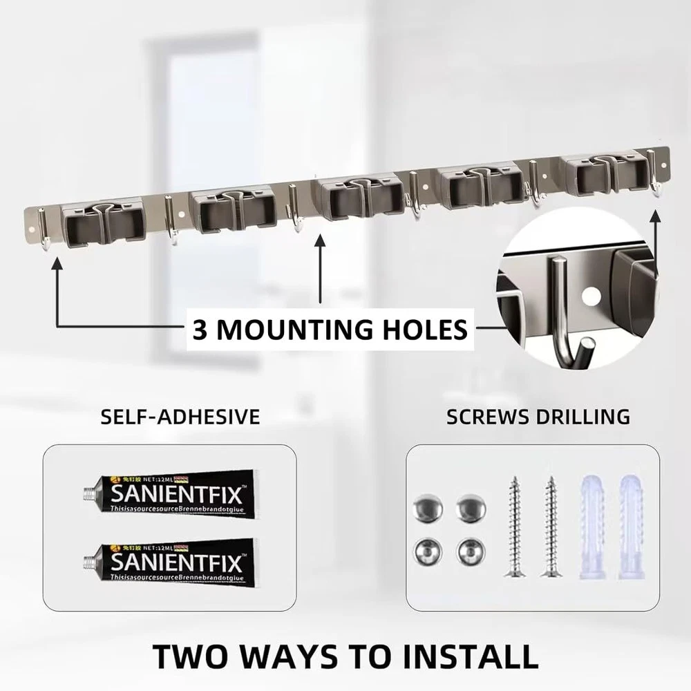 This mop clip holder is a game-changer for keeping my cleaning tools neat and accessible! The sturdy stainless steel construction feels durable, and the black/white finish blends well with any room. I love how lightweight yet rust-resistant it is—perfect for my laundry area. The 5 racks and 6 hooks hold brooms, mops, and even spray bottles securely. No assembly needed, and the wall mount was super easy to install. Finally, no more leaning brooms against the wall or digging through a messy closet. Highly recommend for anyone wanting to save space and stay organized!