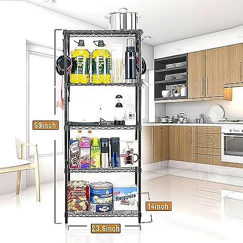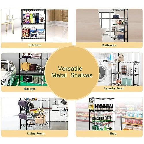 Menu 1. We require immediate payment. 2. We currently accept payment via eBay managed payments only. 3. Once payment is cleared, we will dispatch your shipment within 1-3 business days. Please refer to the "Shipping" tab for more information regarding shipping speed to your destination. 5-Shelf Heavy Duty Shelving Unit with 8 Hooks, Wire Shelving Rack, Garage Organizer Shelves, Adjustable Shelf for Kitchen Pantry (23.6" W x 14" D x 59" H, Black) Product description Metal Strong & STURDY: Enough to handle garage and tool shed storage but nice and neat enough to use in the home, the fixed height shelving unit makes a wonderful addition to any room in the house. From heavier-duty garage storage to towel and cleaning supplies storage in the bathroom, to bedroom storage and more, the organizer shelf has got you covered. FLEXIBLE 5 SHELF STORAGE SHELF: The 5-tier slim storage shelves which can be used in tight spaces in your home for storage. The shelf unit easily slides between closets, kitchens, bathrooms, garages, laundry rooms, offices or in-between your washer and dryer. EASY ASSEMBLY & CLEANING: Designed with convenience in mind, all parts snap together effortlessly without the need for tools, and the material is rust-proof, waterproof, and 100% washable to make setup and cleanup a breeze. SHELVES ADJUSTABLE: The detachable design allows you to put one or two layers on the table as a seasoning shelf or cosmetic shelf. MULTI-PURPOSE: The storage cart can be placed in the office, library, bedroom, dressers, you can store your detergent, cleaning products, bathroom accessories, kitchen accessories and lots more. PLEASE MESSAGE US IF YOU HAVE ANY OTHER QUESTIONS, AND MANY THANKS FOR READING ALL OF THIS. Copyright ©#. All Rights Reserved.