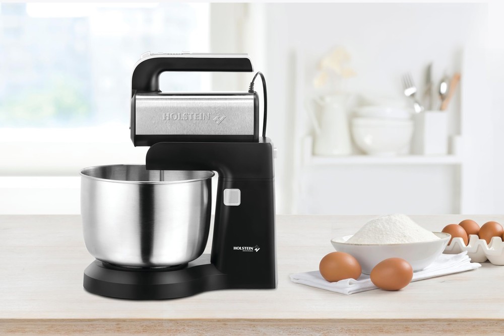A baker’s dream come true! The 5-Speed Hand and Stand Mixer with LED Light is designed for hands-free mixing for a wide variety of recipes ranging from light and airy meringue to dense cookie dough. It can be used as a stand mixer or a hand mixer, featuring 5 speeds plus turbo function for recipes that need from slowly stirring to fast mixing. This stand mixer comes with a 2.9QT stainless steel automatic rotating bowl for hands-free mixing and one set of beaters and one set of dough hooks that are effortlessly removed with its eject button. It has an ergonomically designed handle to provide a safe grip while in use and a modern LED light for illumination. 5-Speed Hand and Stand Mixer with LED Light is a handy kitchen helper for prepping meals from savory food to delicious desserts. 250-watt motor to mix with ease, Swivel cord for right or left-handed use, detachable hand mixer from the base, efficient cooling system, includes beaters and dough hooks PREPPING ESSENTIALS: 5 speed settings plus turbo function for a variety of recipes from light and airy meringue to dense cookie dough, Swivel cord for right or left-handed use FUNCTIONAL FEATURES: Lightweight hand mixer effortlessly detaches from the base for mixing versatility, ergonomically designed handle for comfortable grip and safe operation, Eject button to quickly remove accessories with a single-handed press GREAT ADDITION TO YOUR KITCHEN: 250-watt motor to mix with ease, 2.9QT stainless steel automatic rotating bowl for hands-free mixing, includes one set of beaters and one set of dough hooks to breeze through recipes WHO WE ARE: strives to make cooking and entertaining easy by simplifying life in the kitchen. We develop a special blend of products so you can create endless recipes for all types of lifestyles, from healthy meals to guilty pleasures. : offers a 1-year limited to purchase worry-free. A user manual is included in the packaging (and available digitally) with easy instructions on how to use the product.