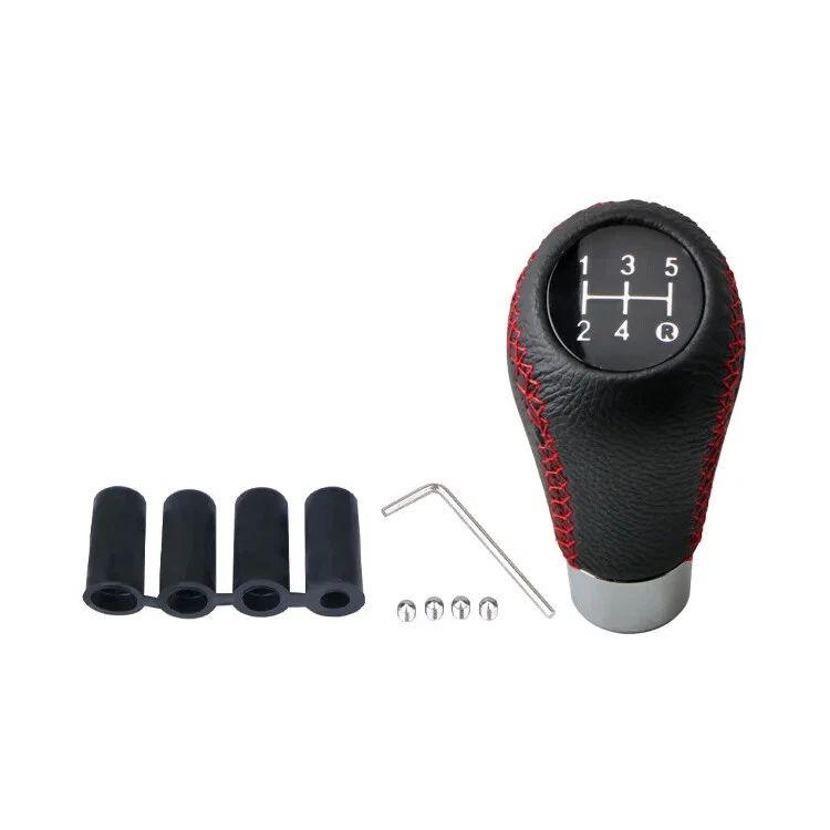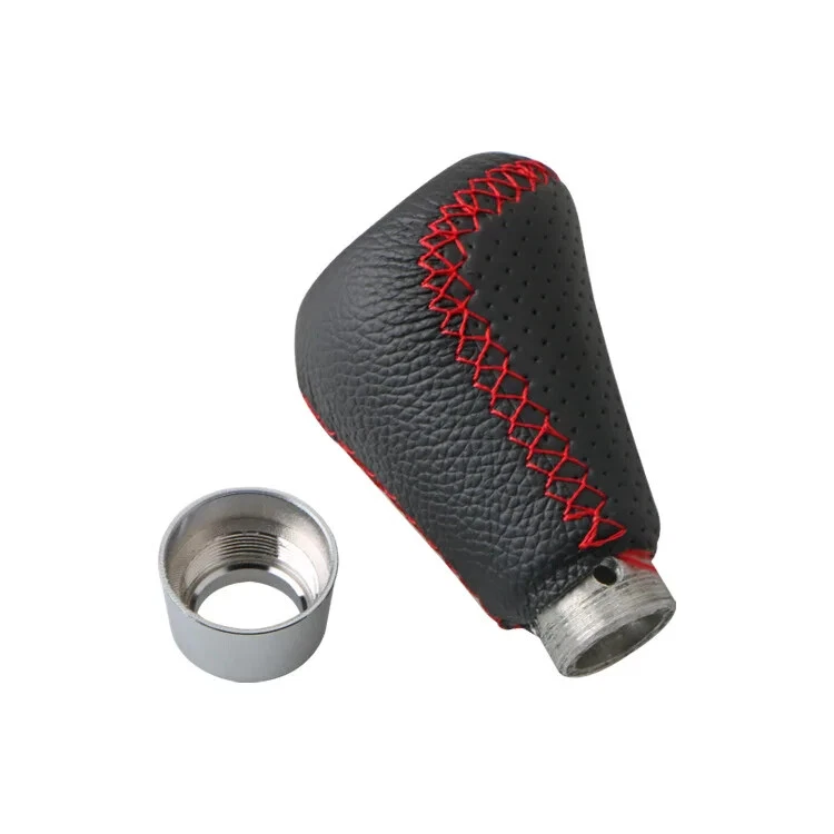 [Commercial products] : Car modification leather five gear head - three colors [Material] : leather + aluminum alloy [Color] : Red, blue, black [Gauge] : Length 9cm [Package size] : length 12cm* width 5cm* height 6cm [Weight] : 164g [Fittings] : Adapter + mounting wrench [Applicable model] : Manual general purpose [Other note] : The automatic file can be modified by using the shift head converter.
