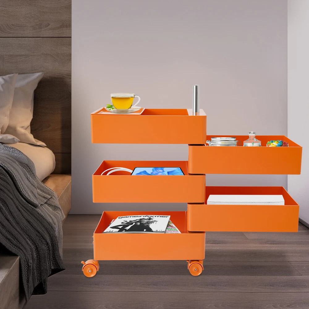 5-Tier 360° Rotating Storage Cabinet with Wheels in Orange