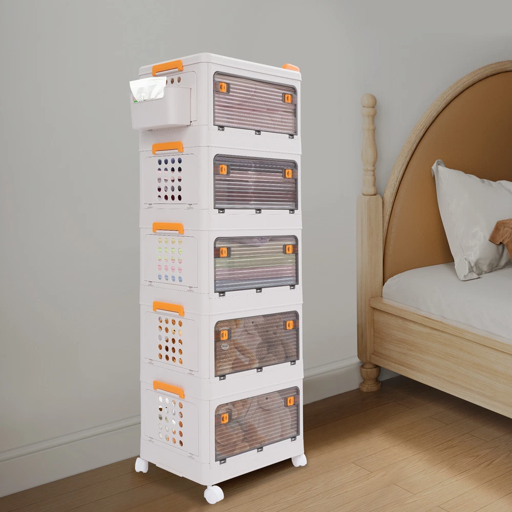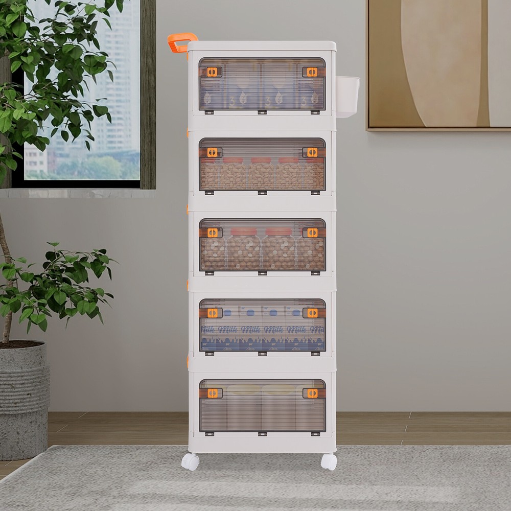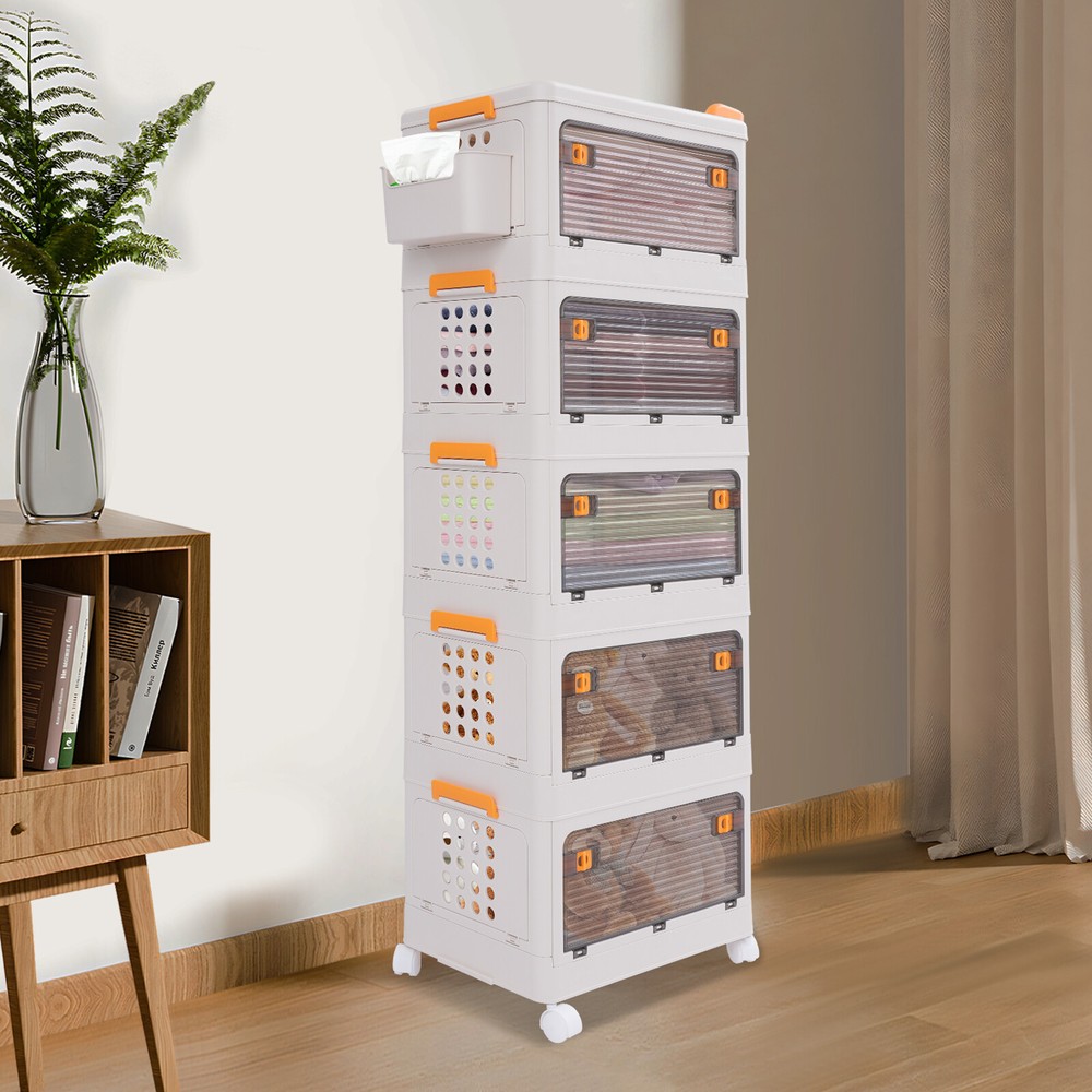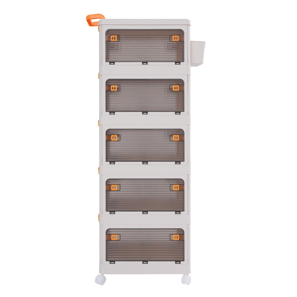5-Tier Folding Storage Bin with Doors, Wheels, and Lids