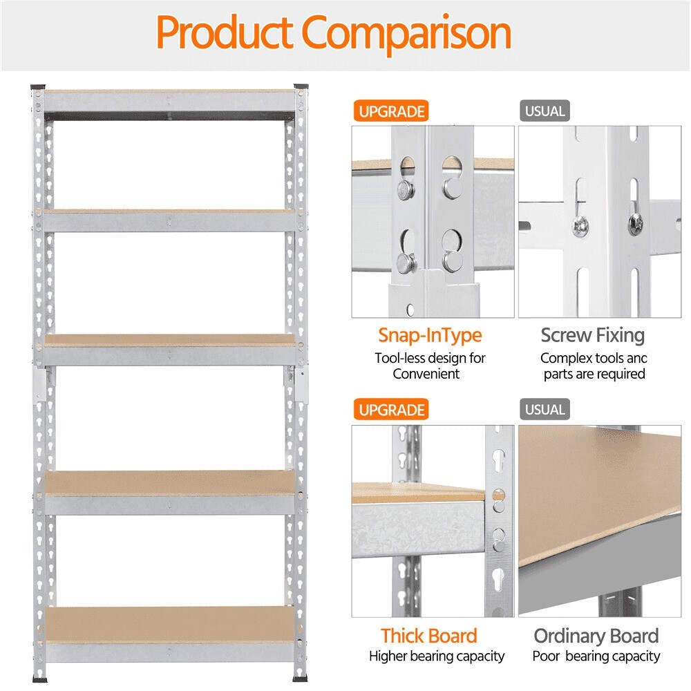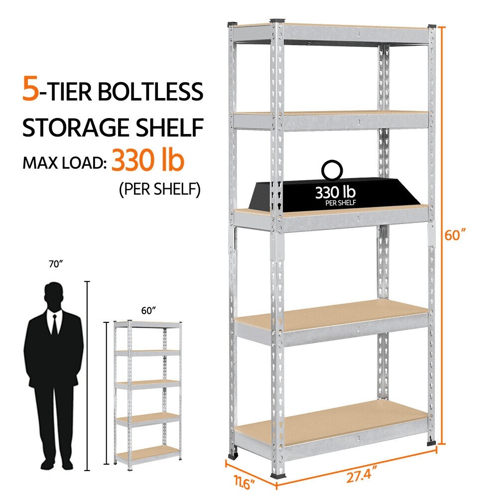 You may also like Wooden Laundry Hamper W/ Interior Bag Handles Rubber Bumpers Storage Solution US 110.44 USD Free shipping Heavy Duty 5 Tier Steel Shelving Adjustable Storage Unit 800 lbs Capacity New 53.5 USD 56.32 USD Free shipping 5% off 4 Tier Plastic Garage Shelving Unit Heavy Duty Storage 400 lbs Capacity New 49.98 USD Free shipping Adjustable 5-Tier Garage Storage Steel Shelving Unit Heavy-Duty Tool Organizer 79.62 USD 83.81 USD Free shipping 5% off Rolling Garage Workstation 3-Shelf Steel Unit W/ Power Outlet Storage Grid New 188.94 USD 198.88 USD Free shipping 5% off Garage Wall Shelf Heavy Duty W/ Wire Baskets Tool Organizer Hooks & Rack Metal 73.61 USD 77.48 USD Free shipping 5% off Versatile Plastic Garage Shelves Storage Shelving Heavy-duty Durable New 5 Shelf 65.95 USD Free shipping 48 Inch Heavy Duty 3 Tier Steel Storage Shelving Unit Adjustable Organizer New 175.82 USD Free shipping Adjustable 5-Shelf Steel Shelving Unit Heavy-Duty Storage Organizer Indoor New 133.06 USD Free shipping Garage Storage System Shelf Kit 3 Heavy Duty Wire Shelves Easy Installation New 84.15 USD Free shipping Durable 4 Shelf Plastic Storage Unit Closet Garage Home Organizing Solution New 53.02 USD 55.81 USD Free shipping 5% off Plastic Shelving Unit Sturdy Garage Basement Adult Black Closet Durable 5-Tier 49.6 USD Free shipping This boltless storage shelf is a very universal and strong garage shelf. Boltless design is for convenient assembly. It is a metal-frame storage rack and its maximum load is up to 330 lb per shelf. The storage shelves have 8mm thick E1 MDF for placing items. This black storage shelving can be disassembled to save more space and for convenient transport. The shelf can be adjusted to fit various items so it can be used for storage or display. It can be used in the garage, balcony, kitchen, etc. SMILE MART 5 Tiers Metal Boltless Storage Shelf for Hmoe Warehouse, Silver: Color: Silver Material: Iron frame with powder coated & MDF Boards Overall Dimensions: 27.4″ L × 11.6″ W × 60″ H Each Tier: 27.2″ L × 11.5″ W Max. Load Capacity Per Shelf: 330 lb Gross Weight: 29.8 lb Net Weight: 28 lb Note: 1. Please allow ±1cm/ 1/2″ error due to manual measurement. 2. A rubber mallet is recommended for assembly. The rubber mallet is not included. You may also like Compact Telescopic Fishing Rod Reel Combo Portable Travel Spincast Tangle Free 34.73 USD 36.56 USD Free shipping 5% off 8.5-Amp Joiner Plate & Biscuit W/ Case Adjustable Fence & Pre-set Stops New 76.51 USD 80.54 USD Free shipping 5% off Pet Memorial Box Paw Print Kit Urn Keepsake Storage for Dogs Cats Black Wood New 51.52 USD 54.23 USD Free shipping 5% off All-Purpose Chipotle Seasoning Smoky Sweet Flavor Ideal for New Grilling Smoking 10.25 USD 10.79 USD Free shipping 5% off 3/8 in Drive Impact Socket Set 50 Pcs Standard SAE Metric 6 Point Ratchet Handle 73.61 USD 77.48 USD Free shipping 5% off 8V Cordless Drill Tool Set with Power Drill 64PCS 3/8" Keyless Chuck US 75.93 USD Free shipping 3 Outlet Extension Cord 8’ Braided Cord Power Strip Flat Plug W/ Safety Covers 9.56 USD 10.06 USD Free shipping 5% off Portable BBQ 3 Burner Propane Gas Stove 225000 BTU Outdoor Cooking Picnic Cooker 147.23 USD 154.98 USD Free shipping 5% off 6ft Prelit Artificial Slim Pencil Christmas Tree with Remote Control Hinged 132.51 USD 139.48 USD Free shipping 5% off Ultra Absorbent Fresh Scent Training Pads 100Count Leak Proof Pet Pads New 28.61 USD 30.12 USD Free shipping 5% off Stainless Steel Mess Kit Cookware Camping Backpacking Compact Lightweight New 30.72 USD 32.34 USD Free shipping 5% off 2 Pack Solar-Powered Area Spotlight Cool White Landscape Adjustable Outdoor New 35.37 USD 37.23 USD Free shipping 5% off