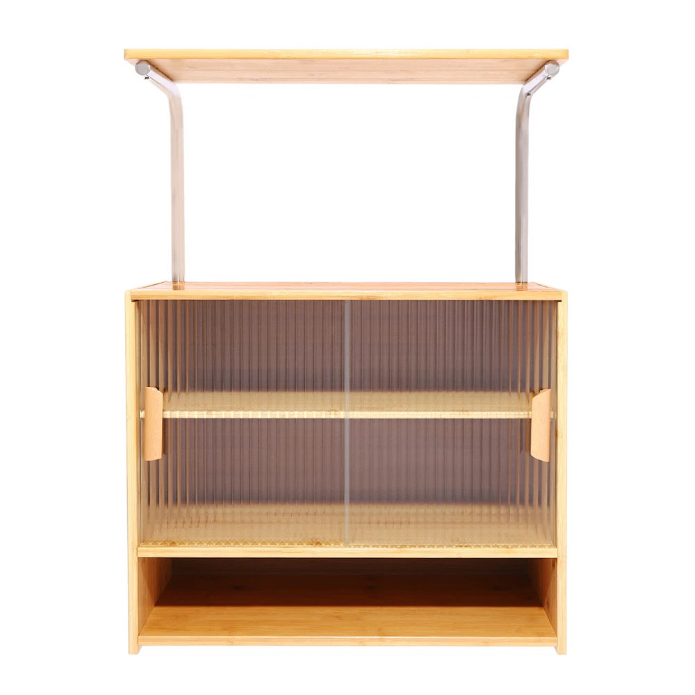 This kitchen storage cabinet is a game-changer for keeping everything organized! The 5-tier design with partitions makes it super functional, and the clear sliding doors let me quickly spot what I need. Love the modern look—it blends perfectly with my kitchen while keeping spices, jars, and utensils neatly stored. The sturdy build (density board, bamboo, and stainless steel) feels durable, and the smooth-gliding doors save so much space. Perfect for small kitchens or restaurants—highly recommend for a clutter-free, stylish setup!