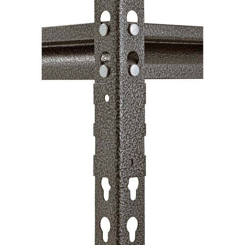 Create some extra storage space by adding this Muscle Rack 5-Shelf Steel Shelving to keep things in your home garage or basement clutter-free. It features industrial-grade steel construction with a durable silver-vein finish to combine durability and style. Shelves are made of particle board supported by double-riveted Z-beams with braces and adjust in 1-1/2" increments to accommodate items of varying heights. This Muscle Rack Steel Shelving comes with a rivet lock design and includes a post coupler to make assembly faster and easier without needing any nuts or bolts. This versatile storage unit can be built vertically and used as a traditional 60"H shelf or horizontally and used as your very own sturdy workbench. Its ingenious design allows you to keep bulky items off the ground and on a more stable foundation so they'll be safe for whenever you need them. It is recommended that you use the included instructions and a rubber mallet (sold separately) to assemble this Muscle Rack Shelving Unit. Each space-saving organizer measures 12"D x 30"W x 60"H and can hold up to 4,000 lbs. Creates extra storage space in your home, garage or basement Industrial-grade steel construction with a durable silver-vein finish Made of particle board supported by double-riveted Z-beams with braces Shelves are adjustable in 1.5" increments to accommodate taller items Muscle Rack Steel Shelving comes with a rivet lock design Includes a post coupler to make assembly faster and easier without needing bolts Can be built vertically as a shelving unit or horizontally as a workbench Keeps bulky items safely off the ground Includes instructions A rubber mallet (sold separately) is recommended for assembly Shelving organizer measures 12"D x 30"W x 60"H Can hold up to 4,000 lbs
