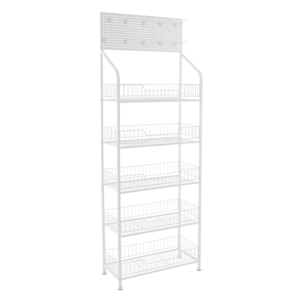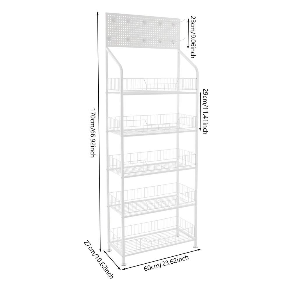 Specifications Material: Iron Process: Baking Paint Style: Modern Color: White Shape: Rectangular Mount Type: Free Standing Assembly Required: Yes Number of Tiers: 5 Each Tier Load-bearing Capacity: 20kg/44.09 lbs Each Hook Load-bearing Capacity: 1kg/ 2.2 lbs Tier Spacing: 29 cm/11.42 in Top Hole Hanging Plate Height: 23cm/9.06 in Product Size: 60*27*170 cm/23.62*10.63*66.93 in Package Size: 146*28.5*4.5cm/57.48*11.22*1.77 in Gross Weight: 9 kg/ 19.84lbs Net Weight: 8.55 kg/18.85 lbs Package Included 1* Retail Display Stand 10* Hooks 4* Adjustable Feet All Accessories for Assembly 5-Tier Snack Candy Display Shelf Retail Display Cases w/ Hooks & Adjustable Feet Specifications Material: Iron Process: Baking Paint Style: Modern Color: White Shape: Rectangular Mount Type: Free Standing Assembly Required: Yes Number of Tiers: 5 Each Tier Load-bearing Capacity: 20kg/44.09 lbs Each Hook Load-bearing Capacity: 1kg/ 2.2 lbs Tier Spacing: 29 cm/11.42 in Top Hole Hanging Plate Height: 23cm/9.06 in Product Size: 60*27*170 cm/23.62*10.63*66.93 in Package Size: 146*28.5*4.5cm/57.48*11.22*1.77 in Gross Weight: 9 kg/ 19.84lbs Net Weight: 8.55 kg/18.85 lbs Package Included 1* Retail Display Stand 10* Hooks 4* Adjustable Feet All Accessories for Assembly Description In the retail industry, a good display can make goods stand out and attract customers' attention. Take a look at our well-designed retail display stand. It is not only rugged but also stylish. The multi-tier storage structure can meet your diverse display needs, and the hole-hanging plate at the top is a highlight. With its reasonable structural design, premium material, multi-functional applications, and convenient use experience, it has become an ideal choice for your store display. Key Features Build to Last : It is mainly made of high-class iron, with a baking paint process, which is impact-resistant, scratch-resistant, and not easy to deform, so it can be used for a long time. Stylish Appearance: The classic color scheme and smooth lines make it easy to blend into a variety of shop environments and can be paired well with most decorative styles to become a beautiful landscape. Excellent Load-bearing Capacity: The thick material, rectangular frame, and sturdy screw fixation allow each tier to hold up to 44.09 lbs and each hook to hold up to 2.2 lbs, thus providing greater stability for your supplies. Storage Assistant: The product has a total of 5 tiers, giving you enough space to put your toys, snacks, drinks, and other items, and the top of the hole hanging plate and 10 hooks also increase your storage space, which can be used to hang key chains, necklaces, bracelets, and other small ornaments. User-friendly: The spacing (tier spacing: 11.42 in) between each shelf is moderate, ensuring that the goods are neatly placed and easy for customers to browse. In addition, the hooks are removable, you can adjust the position of the hooks according to the type of goods and display needs, providing great flexibility. Space-saving: Adopting a vertical structure, this product occupies very little space (23.62*10.63 in ), which is very practical and space-saving. Thoughtful Design: Featuring an open wire frame design, it can effectively drain water, promote air circulation, keep your items dry, and provide convenience for you. Convenient to Assemble : The pre-drilled holes, simple structure, and complete accessories allow you to complete the assembly and start using it in a short period. Exquisite Gift : This functional and aesthetically pleasing product is an ideal gift for Christmas, birthdays, or housewarming for your friends, family, and colleagues. Simple Cleaning: With its open construction and smooth surface, you can simply wipe off surface dust with a damp rag (not included). Buy with Confidence: We stand behind all our guests and look forward to assisting you with your purchase. It is our pleasure to answer your confusion and questions. The end of the story between us is not "we sell and you buy". Details Non-slip Adjustable Feet: They make the product more stable and improve safety. Elevated Guardrails: They allow you to better showcase your products vertically and also prevent your display items from falling off. Practical Handles: The two carrying handles on the top make it easy for you to carry the whole product. Raised Bottom: This design prevents your items from directly touching the floor and also makes it easy to sweep the floor. Smooth Edges : The smooth and round edges make it safer for you to assemble, use, and clean the product. Application It is suitable for grocery stores, supermarkets, bakeries, snack shops, movie theaters, hotels, convenience stores, cosmetics stores, stationery stores, jewelry stores, kitchens, bedrooms, laundry rooms, game rooms, offices, dormitories, and other places. It can be used to store and display fruits, drinks, vegetables, towels, toys, snacks, craft supplies, cookies, condiments, and other items. Notes Please check the size carefully before ordering. This product does not include other items. Please use within the load-bearing range of the product. Please allow the slight color difference caused by the shooting light and 1-3cm error due to manual measurement, and make sure you do not mind before you order. Payment Delivery details Terms of sales About us Contact us Payment We accept ebay payment 。 Fees such as import duties, taxes are not included in the item price or shipping costs. These charges are the buyer's responsibility. Delivery details Shipping: 2-9 working days to: USA Terms of sales We maintain high standards of excellence and strive for hundred percent customer satisfaction. Feedback is very important to us. We hope that you contact us immediately before you give neutral or negative feedback, so that we can address your concerns. It is impossible to address issues if we do not know about them! About us Your satis faction is our ultimate goal. We work hard to earn your trust and futur