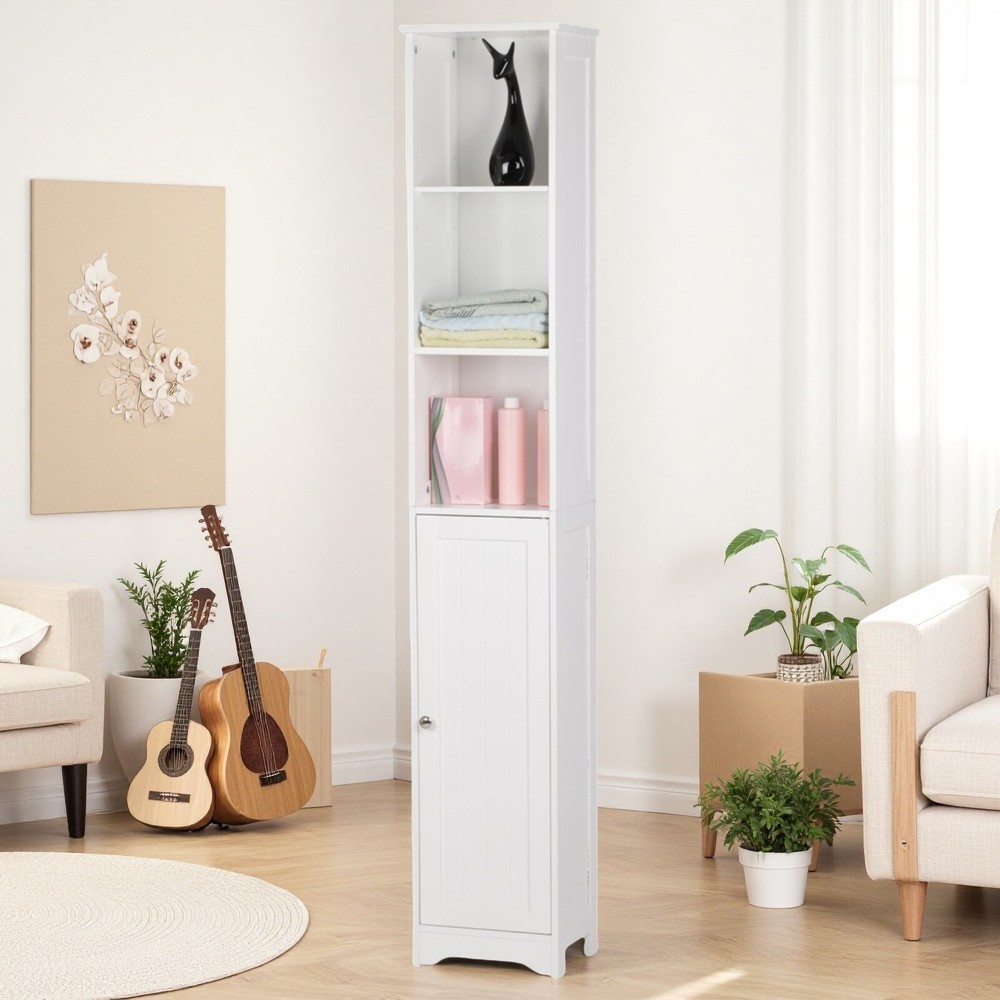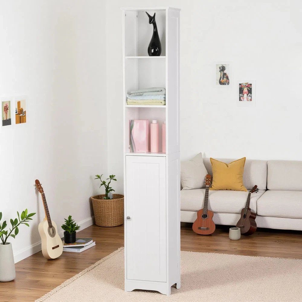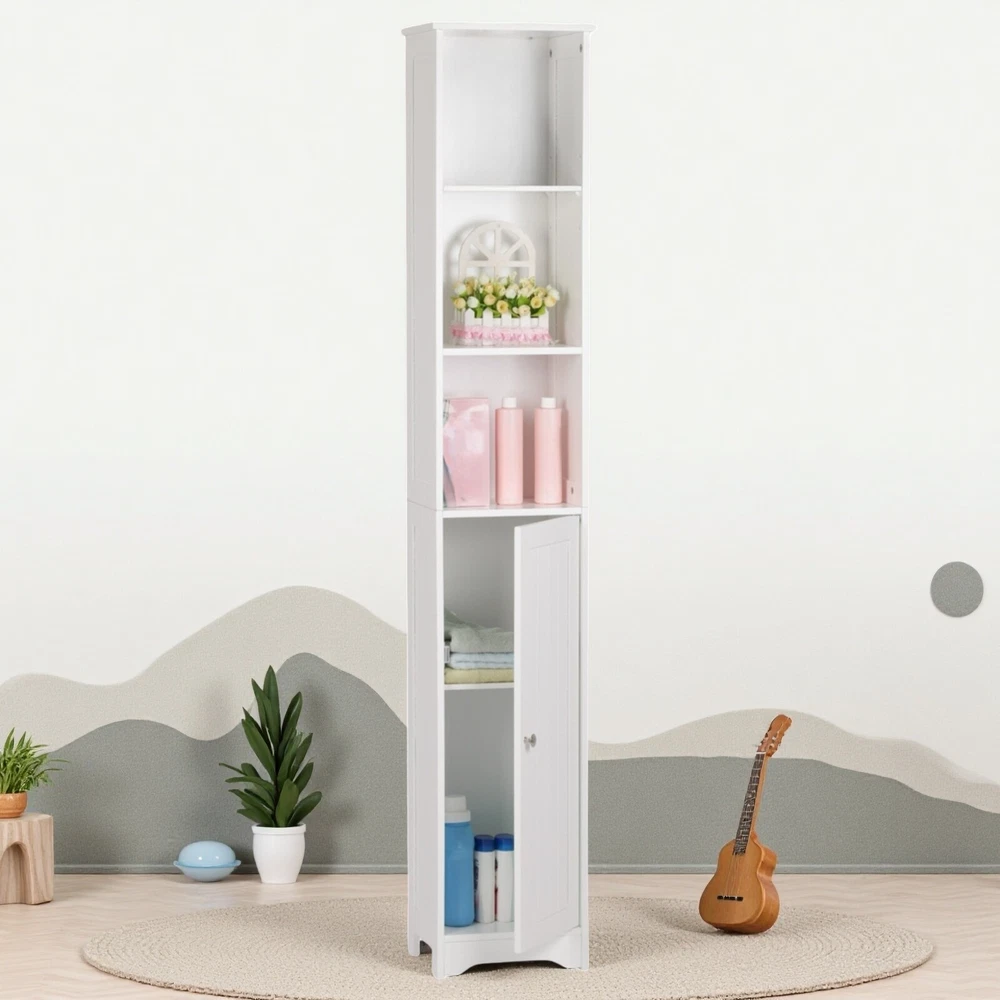 5-Tier Storage Cabinet - White, MDF, Adjustable Shelves Storage & Narrow 5-Tier Storage Cabinet - White, MDF, Adjustable Shelves Storage & Narrow 5-Tier Storage Cabinet Introductions: This is a simple and modern style wall-mounted standing bathroom cabinet. Adopting high quality and hard MDF sheet, it is waterproof and moisture-proof. One door and five-layer design maximizes the storage space and can help you classify your items better. You can put a variety of toiletries, cosmetics, and other sundries. In addition, it features anti-dumping device to further ensure the safety of use. This bathroom cabinet is not only used as bathroom cabinet, but also can be used as side cabinet and bedside table. In addition to the bathroom, you can also put it in the bedroom and living room to meet your diverse home design needs. Features: 1. Made of high quality and hard MDF sheet 2. Chrome handle 3. One door and five layers 4. Anti-dumping device 5. Waterproof and moisture-proof 6. High quality 7. Easy to assemble Specifications: 1. Material: MDF 2. Color: White 3. Dimensions: (11.81 x 9.45 x 66.93)" / (30 x 24 x 170)cm (L x W x H) 4. Storage Room Dimensions: The First/The Second Layer: (10.12 x 9.45 x 9.25-14.57)" / (25.7 x 24 x 23.5-37)cm (L x W x H) The Second Layer: (10.12 x 9.45 x 10.43)" / (25.7 x 24 x 26.5)cm (L x W x H) 5. Door Dimensions: (10.12 x 29.33)" / (25.7 x 74.5)cm (L x W) 6. Weight: 21.16 lbs / 9.6kg Package Includes: 1 x Bathroom Cabinet 1 x User's Manual 1 x Accessories Package Welcome Delivery details Terms of sales About us Contact us Welcome Welcome to our store! Elevate your lifestyle with us. Enjoy a fulfilling shopping experience! Delivery details Your order will be dispatched within 3-5 business days. Once shipped, you will receive all order details via email. Stay informed every step of the way. Sit back, relax, and look forward to your order! Terms of sales Upon payment receipt, your order will be promptly dispatched. Delivery times vary by location and logistics provider. We ensure swift shipping with tracking details. Contact our customer service team for any querie!!! About us We are dedicated to providing high-quality products and exceptional service. Trust us to be your top choice. Your satisfaction is our priority! Find your perfect option with us! Contact us If you encounter any issues, please don't hesitate to reach out to us. Our team is here to assist you promptly and effectively!!! Brand Jutoop Item Length 11.81'' Item Width 9.45'' Item Height 66.93'' Item Weight 21.16 lbs MPN JT-33910436 Model 5-Tier Storage Cabinet Type Storage Cabinet Material MDF/Chipboard Door Style Shaker Color White Number of Shelves 5 Mounting Free Standing Item Length (Interior) 11.8'' Item Width (Interior) 9.45'' Item Height (Interior) 66.93'' Item Depth 9.45'' Assembly Required Yes Additional Parts Required Yes Department Adults Unit Quantity 1 Unit Type Unit Country/Region of Manufacture China
