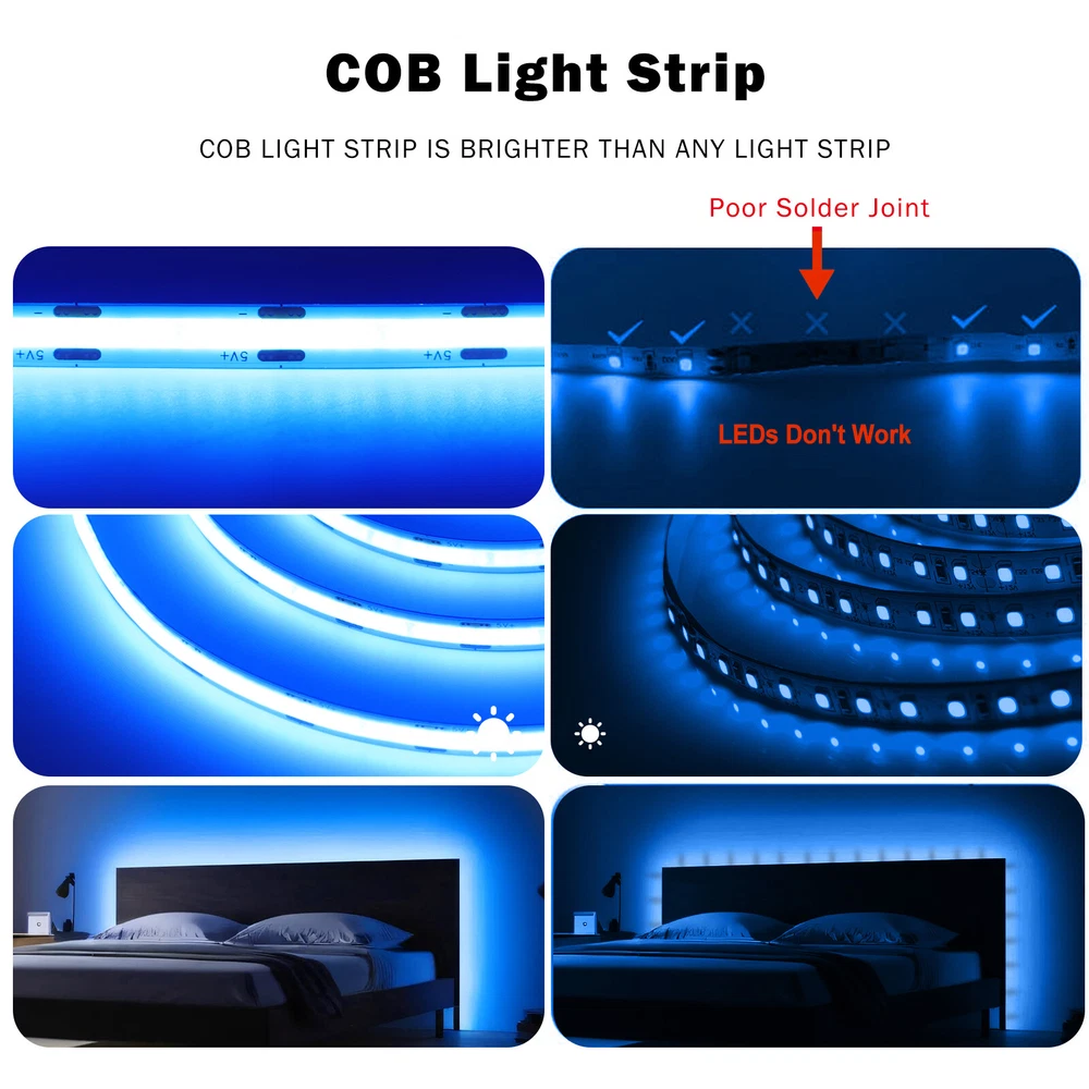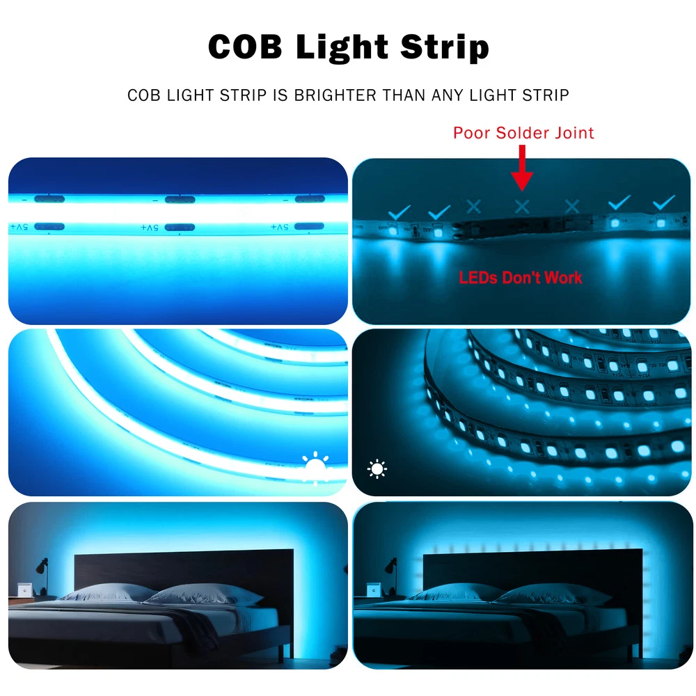 Mini Wireless Hidden Spy Camera HD 1080P WiFi Smart Home Security Night Vision 3.99 USD 2.58 USD Permanent Outdoor Eaves Lights 100ft Smart RGB 60/180 LED APP Remote Control 40.74 USD Free shipping 5V 12V 24V COB LED Strip Light Flexible Tape Lights Home DIY Lighting WW/NW/CW 6.34 USD Free shipping Solar Power String Fairy Lights 20M 200LED Outdoor Waterproof Garden Christmas 3.99 USD 1.99 USD 12V LED Neon Rope Light Strip 1M-5M Flexible Indoor Outdoor Lighting Waterproof 1.98 USD 1.99 USD 2-Pack 5G WirelessWiFi Security Camera System Smart Outdoor Night Vision 1080P 11.98 USD 4.99 USD COB LED Strip Light 12V 24V Flexible Tape Lights Home DIY Lighting 3mm 5mm 8mm 3.24 USD Free shipping 2PCS Solar Christmas String Lights Outdoor Waterproof 200LED Copper Wire Garden 9.99 USD Free shipping Outdoor Wireless Security Camera System Wifi Home 5G HD 1080P Night Vision Cam 6.99 USD 4.99 USD Cut Plush Fleece Throw Blanket Super Soft Lightweight Bed and Couch Sofa Blanket 7.89 USD 6.99 USD 110V COB LED Neon Strip Lights Waterproof Flexible Tape Rope Cabinet Kitchen USA 3.58 USD 2.99 USD 3PCS 1080P Mini Wireless Hidden Spy Camera WiFi Smart Home Security Night Vision 8.99 USD 2.99 USD 24V LED Lights for Bedroom Music Sync Color Changing RGB LED Strip Light+Remote 22.25 USD Free shipping 3 Pack LED Solar Motion Sensor Light Bright Garden Outdoor Street Wall Lamp 9.99 USD 5.99 USD LED Solar Motion Sensor Light Bright Garden Outdoor Street Wall Lamp 1000000LM 2.99 USD 3.99 USD Firework Strip Lights 120LED Dream Color RGB Smart Music Sync APP Remote Control 17.86 USD Free shipping Kindly note : (1) Led strip must be light up after unfolded completely , do not light up in a roll, otherwise it will melt and do not work, which may cause safety problem. (2) Before you want to make a dispute, please contact us frist,we will do our best to resolve it ! Specifications: * Control type: 3KEY Dimmer/Button/Touch Dimmer * Input voltage: DC 5V * LED type: COB * LED quantity : 320leds/m, high brightness!! * Waterproof rate: Not Waterproof IP21, can be used indoors / outdoors. * Strip Size: W12 * H8mm * Light Color: Cold white(6000-6500k), warm white(3000-3500k), natural white(4000-4500k) *RA (CRI): >90 *Operation temperature: -20℃-+60℃ *Storage temperature: -20℃-+60℃ *Dimmable: YES *Life Span: > 50000 hours *Cut: 25cm can be cut Applications: * light up colorful home life ,DIY household lights for hallways, stairs, trails ,windows, * Light up colorful life hotels decoration use,Theaters, clubs, shopping malls, festivals and performances * Architectural decorative lighting,Archway, canopy and bridge edge lighting, Security lighting and Emergency, * Extensively applied in Backlighting for signage letters, concealed lighting and advertisement sign lighting Packages: 1*COB LED Strip