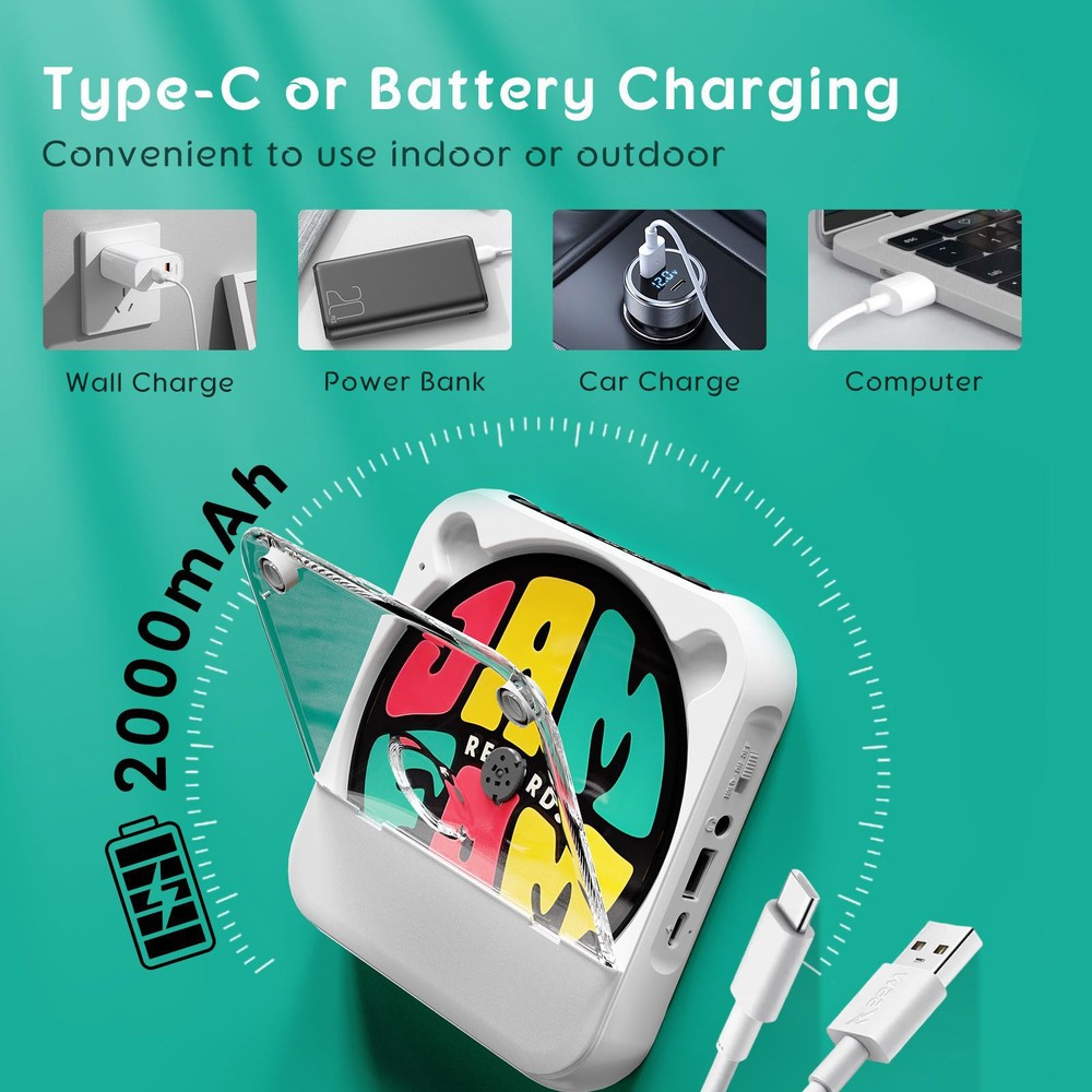 5V2A BT 5.3 CD Player CD/USB/3.5mm AUX Multiple Media Formats Compatibility