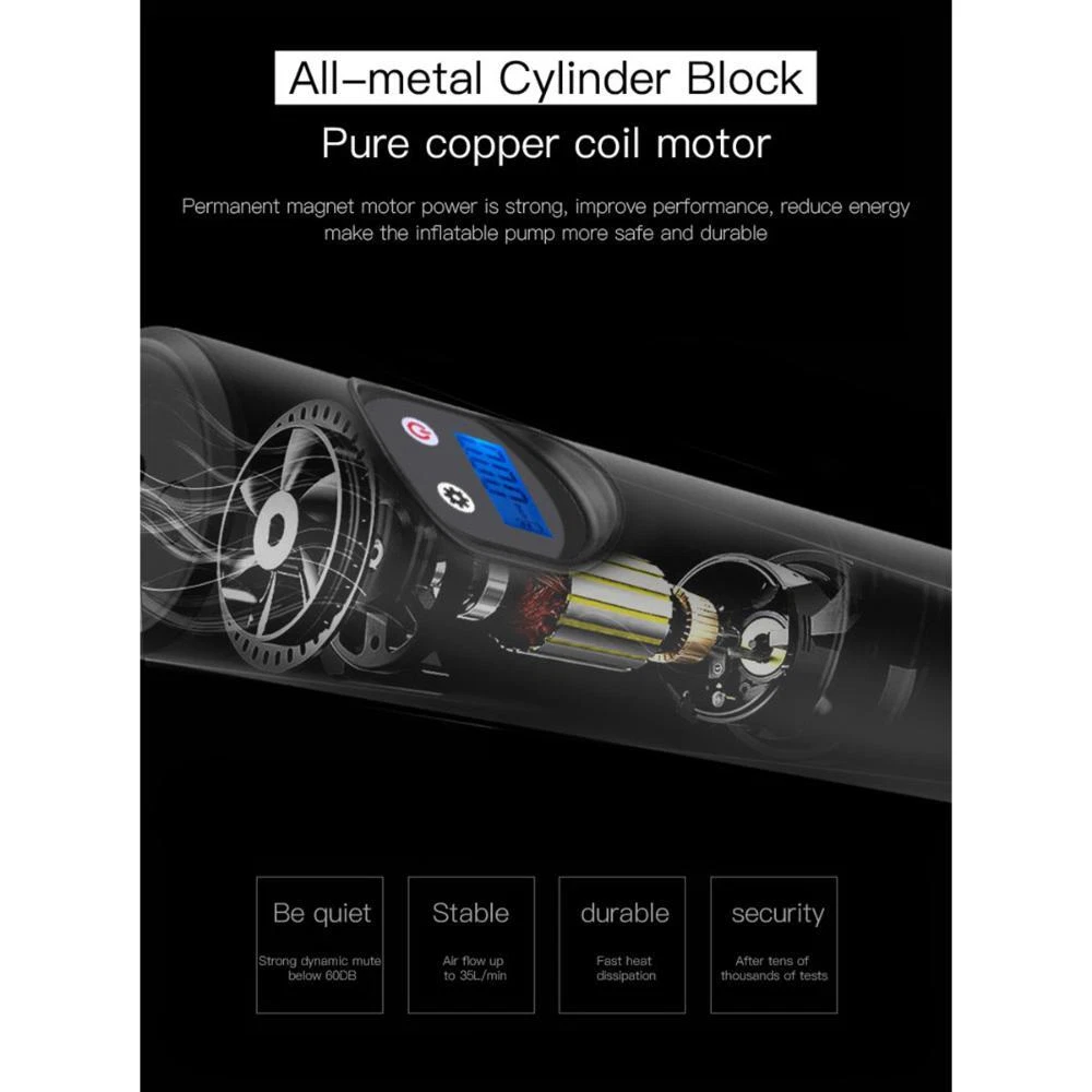 Product Description Features: Built-in Lithium Battery 2000mAh: Mini-body, extra-Large capacity with 2000mAh. The rechargeable air compressor can be inflated for emergency. It supports AC DC Adapter at home 110V & 12V 3 meters Cigar Lighter cable. (Attention: Please don't activate the pump when there is a charging status at home wall charger). LCD Digital Pressure Gauge with Backlight: With 3 optional units as PSI, BAR, KPA, Kg / cm². You can preset tire pressure to what the tire needs and test the tire pressure at any time. The air pump will automatically stop inflating when the inflation reaches the preset value which can be avoid over inflating. Super Bright LED Flashlight: 8 LED Light Beads can be controlled by the independent switch to provide you with convenient for emergency lighting at night. And the LCD digital display with backlight, which is easy to read the digital during night. Low Voltage Protection: Built-in battery protection device. When the voltage is too low, it will automatically cut off the power and the battery will not be over discharged during a long time placing. The maximum inflatable pressure is 120psi, which is suitable for car bicycles, motorcycles, balls, swimming rings, inflatable toys and Other Inflatables. Miniatures Take Up Little Space: Mini and compact, easy to accept, can be put everywhere, making travel and carry more convenient. Specifications: 1. Car power input: 12V 3A 2. Input voltage: charger 5V/2A 3. Working current: 1-5A 4. Maximum current: ≤5A 5. No-load current: ≤2A 6. Air efficiency: charge 1.95 mountain tires for 2 minutes 7. Battery capacity: 2000Am 12.4V 8. Emergency lighting: 8 hours of 10 hours 9. Working temperature: -20°C~70°C 10. Charging method: Micro USB 11. Charging time: about 2 hours 12. Reachable pressure: 150PSI/10.3BAR/990KPA/10.5KG/CM 13. Product size: about 250*56*47mm/9.84*2.2*1.85in Package includes: 1* Inflatable pump 1* Car charging cable 1* Micro USB charging cable 1 set Inflatable interface Notes: 1. Children are forbidden to use this pump! Keep out of reach of children! Never insert the trachea into the mouth of an alive animal or in the eyes of an ear. Do not use the pump as a toy! 2. Do not use this pump in places close to flammable and explosive liquids and gases (eg gas stations)! 3. Do not leave when the inflation is in progress. The machine must be allowed to rest for 8 minutes after 8 minutes of continuous use. 4. When there is abnormal noise or excessive temperature during inflation, please shut down immediately and allow it to cool for at least 15 minutes. Disassemble the trachea and be careful with hot hands. 5. The product is protected from rain and water, and it is resistant to impact and impact. 6. If the pump is not used for a long time, it must be stored in a dry and closed place. If you store for a long time, it is recommended to charge the battery for three months. 7. Before using the rechargeable air cylinder, check whether it has enough electricity. For the first time, charge for 4 hours. After each charge is full, the charging indicator will be fully charged. 8. Please read the instructions carefully before use! If you have any questions, please feel free to contact us via ebay. We usually respond within 24 hours. Payment Shipping Returns Contact Us We accept all verified payments from ebay. Orders will be shipped after receiving cleared payment. Payment due within 7 days after auction ends and for buy it now listings. We ship most of our orders within 24 hours, and may up to 48 hours for. If you want faster shipping way. Please contact us before making payment. Sometimes due to problems with our transportation company system, your shipping information may be delayed to update. We recommend that you try again after 3-4 days. If you still haven't checked the shipping information, you can contact us by ebay message. Always believe we can figure things out with communication, if it comes to return, the pacakge must be intact and the same as you receive. If you have any questions, please feel free to email our service specialists 24 Hours a Day, 7 Days a Week. We will reply you ASAP. Return/refund is accepted within 30 days after the buyer receives the item. NO exchange will be accepted after 30 days from the date when the item is received. Please contact us first before returning your product!!! If you have any questions, our Customer Service staffs welcome you to email us. We strive to answer all questions and resolve any problems as quickly as possible. You can contact us 7*24, we will reply at the first time, and we will surely solve your problems. Note: 1.We try our best to reply to your emails as soon as possible, however, due to high volume of daily incoming emails and time zone difference, we may not be able to reply your emails immediately. Please allow 1 business days for us to response. If you do not receive any reply from us, please check your email ensuring your mailbox has not reached full size. 2.Due to some ISP SPAM filter settings, you may not be able to receive our replies; if you have problems receiving our emails, you may need to use a different email account to contact us. 3.Please give us the opportunity to resolve any problem. We understand the concerns and frustrations you might have, and will try our best to resolve the issues. Please email us before leaving any negative feedback or open any dispute on PayPal. 4.We care about our valued customers, and will always try to help you. So if you have any problems, please e-mail us immediately. Payment We accept all verified payments from ebay. Orders will be shipped after receiving cleared payment. Payment due within 7 days after auction ends and for buy it now listings. Shipping We ship most of our orders within 24 hours, and may up to 48 hours for. If you want faster shipping way. Please contact us before making payment. Sometimes due to problems with our transportation company system, your shipping information may be dela