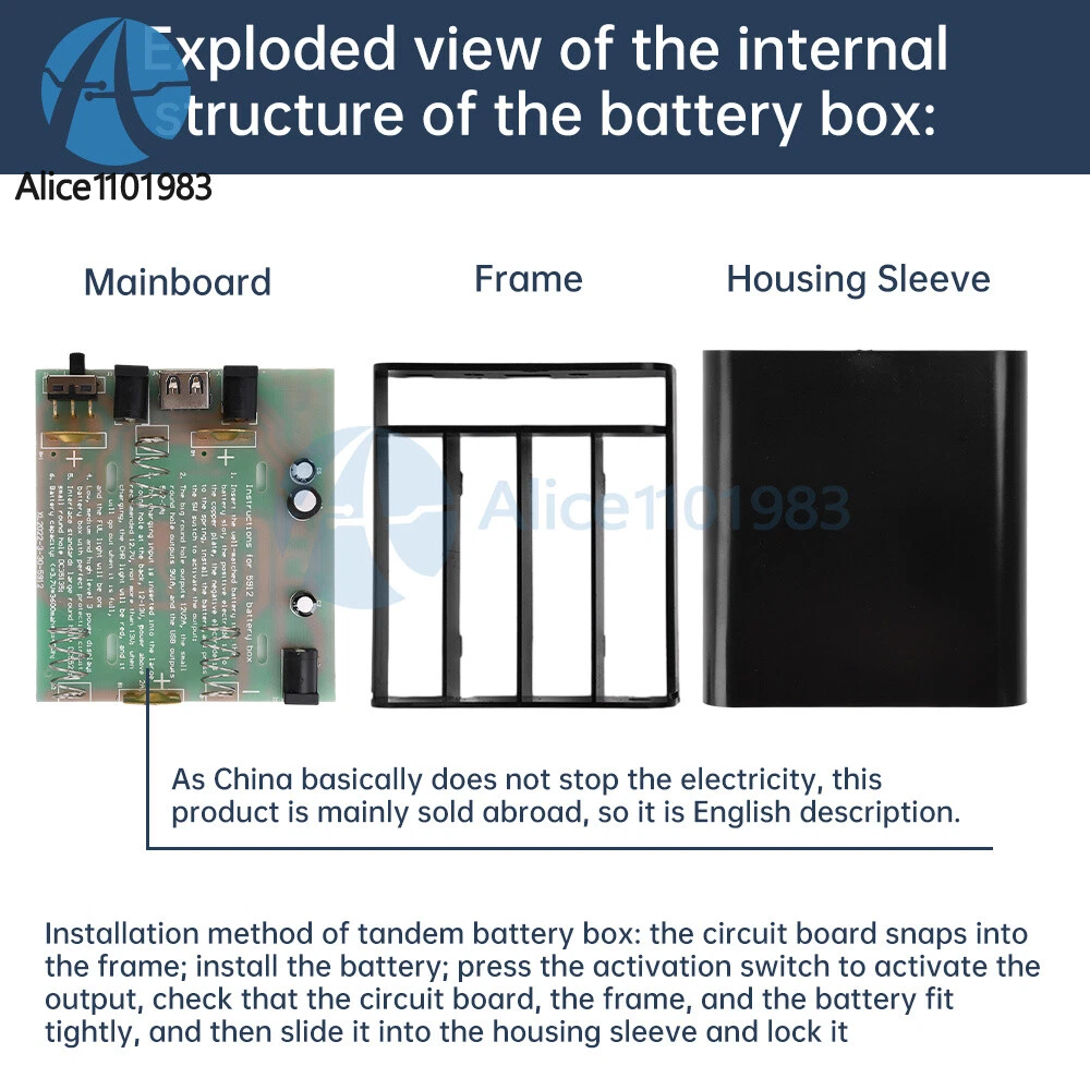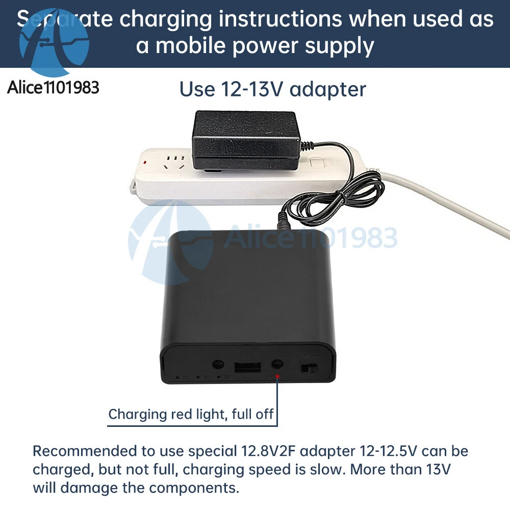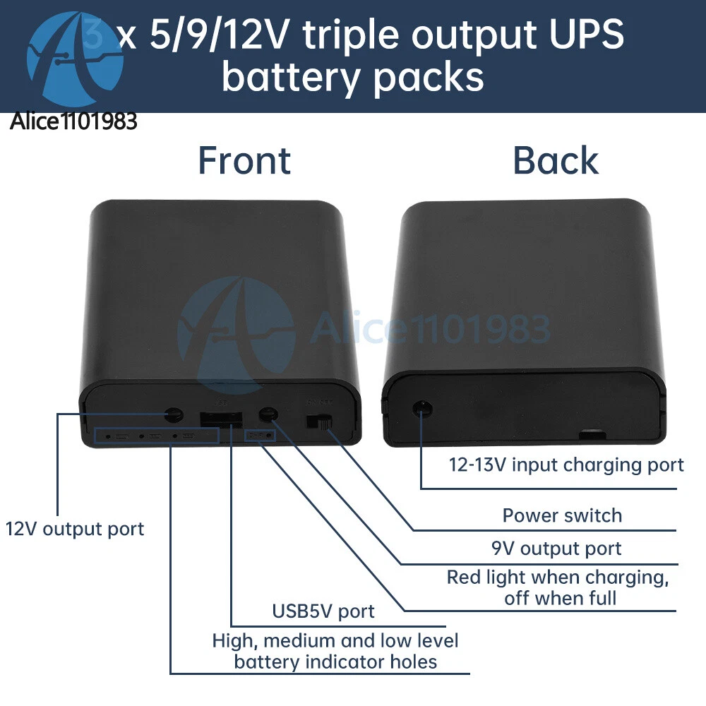 Visit store Items for sale About us Product Details Features: 1. Welding-free products, users can disassemble and replace the battery freely. 2.With DC isovoltage UPS function, automatic charge/discharge management without manual participation. 3. Covering optical cats, routers, surveillance cameras, etc. commonly used 5V, 9V, 12V three voltages 4. Strict quality control to ensure long-term stable operation and prolong service life. 5. Compact size, easy to carry, stable performance Parameter: Capacity: loadable battery capacity: 3 * 3.7V * 3400mah = 37 watt-hours; (batteries provided by the user) Output power: Independent output 12V3A, 9V1A, USB5V2-3A without considering UPS input. Whether voltage regulator: not regulated, 3 batteries in series direct output, full 12.6V, low voltage protection 8V, voltage increases or decreases with the amount of electricity Application Type: This product is designed for MODEM, router, surveillance camera equipment specially designed Battery type: 3.7V cylindrical 18650 battery UPS input voltage: 12-13V range charging, can not exceed 13V, below 12.6V can not be filled, recommended 12.7V UPS input power: input adapter power must meet >= load power + internal battery charging power of 6 watts; the greater the stability of the larger power Protection circuit parameters: overcharge protection: 4.25V * 3; low voltage protection: 2.75V * 3; overcurrent detection voltage: 0.1V +-0.025V Temperature range:-20~60℃ DC interface standard: DC5.5*2.1mm (inside positive and outside negative) Precautions: 1. Spring to the negative pole, copper to the positive pole, do not install the reverse, install the reverse will burn! 2. The use of high-quality batteries and require strict pairing, composed of battery packs of each individual battery should be the same parameters as far as possible! 3.This product can only use flat 18650 batteries, pointed batteries longer than 2MM, can not be used! Package include: Welding-free battery box * 1 Payment Method Shipping Policy Returns & Refund Policy Feedback Payment Method EBAY Managed Payment. But we only Accept your Ebay Address , please Make sure it's 100% right. Payment must be received in 5 business days of auction closing. Please leave note for your special request (e.g. Colors or Size) in PayPal when you pay the order. Any special request cannot be accepted after 24 hours of payment, because most of orders will be processed instantly and same day dispatched. Shipping Policy 1. We only ship to the confirmed address provided by eBay. please make sure your ebay address is 100% matches the address you would like us to ship to. If not, please let us know before we sent you the package, or we will not be responsible for any loss. hope you could understand. 2. Orders will be processed instantly and dispatched within 1-3 business days except hoilday, so we do NOT accept any email/message note after you place orders. 3. All package need to wait 30 days,Please take care it.Less than 30 days,we can't take a refund. Returns & Refund Policy All package need to wait 30 days (US only n eed 7-10 days) , Please take care it.Less than 30 days,we can't take a refund . If the item is defect when you receive it or you are not satisfied with it, please return it within 14 days for a replacement or money back. But the items must be back in factory condition. Please keep in touch with us and double check the return address before you return it. If is item is defective in 12 months, you can return it to us. We will send you a new replacement after receiving the defective item. Feedback We maintain high standards of excellence and strive for 100% customer satisfaction! Feedback is very important to us. We request that you keep in touch with us immediately BEFORE you give us neutral or negative feedback, so that we can satisfactorily address your concerns.