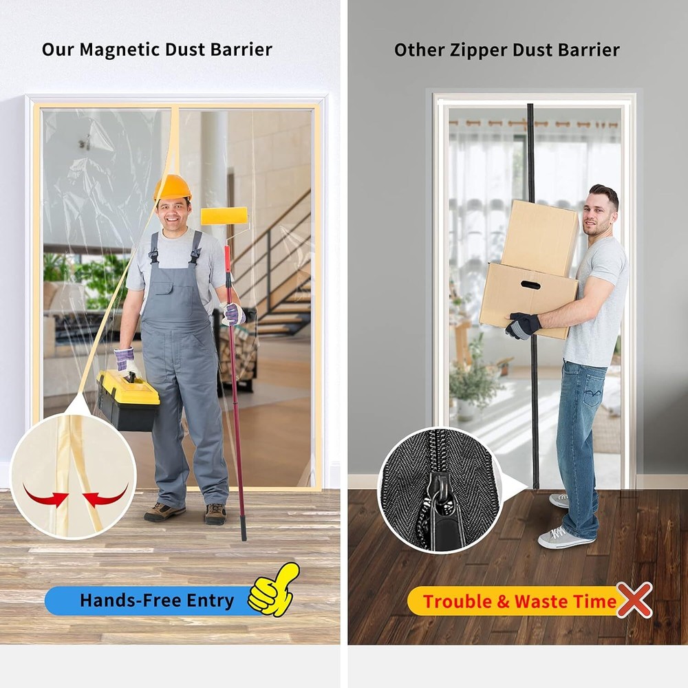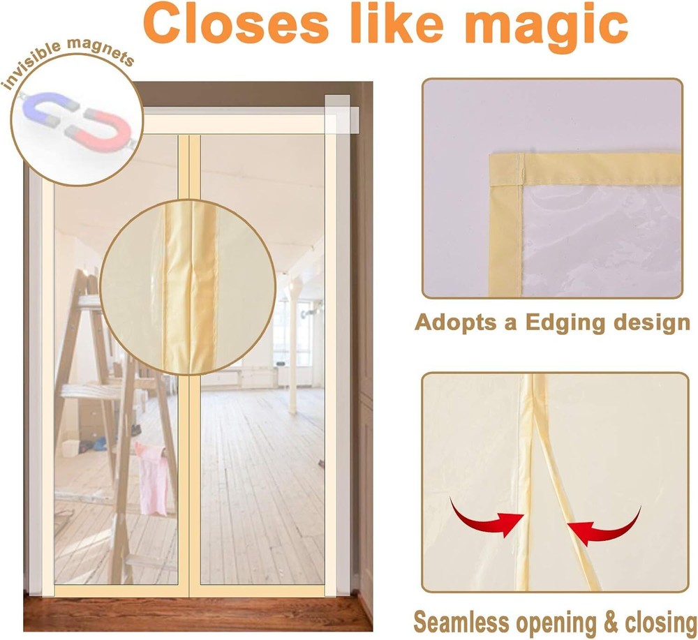Dust Barrier Door Kit for Construction Containment, Magnetic Self-Closing Protection Kit, Easy to Install, Reusable, Living Room/Kitchen/Bathroom Remodel,Fit Commercial Door Size (5'W x 8.5'H) Item Description 【Dust Control】The plastic dust cover can stop dust and particles from spreading to other areas during construction, renovation and painting.Quickly form tight seals in various areas, easily seal doors and doorways, and provide solutions for controlling dust in the air. it saves in clear up and snagging in costs. 【Sealed Protection】The hand-free function of the dust-proof door kit, along with the strong magnetic block of the opening, automatically and quickly seal the door every time, ensuring simultaneous entry and exit without damaging the door frame. Even take a toolbox or paint bucket. This is used to isolate the area to be cleaned the dust, seal the area. 【Clear Plastic】Our doors are made of high quality EVA material, adopts a Edging design to enhance sealing, and a completely transparent material that allows lots of natural light through and provides good visibility of the work area without entering, 100% safe for homes and pets. 【Save on Cost & Easy to Install】It helps to control the dust in the house during reconstruction and saves a lot of cleaning work. The door kit is easy to clean and reuse, and it can also be folded and stored for next use, snagging in costs. No installation and removal tools are required in just a few minutes, and provides a roll of painter's tape and a box of pushpins to make the screen more stable. 【High Traffic Areas】Our door covers size of 5'W x 8.5'H for doorways up to 4'W x 8'H and are wide enough for most commercial door. It can be used in any doorway of home, workshop, office, store, construction site, etc. It is a necessary dustproof tool for home or commercial renovation.IMPORTANT:PLEASE MEASURE YOUR DOOR FIRST! Payment safe payment via eBay Shipping Fast and Free Shipping Return 30 Days Return