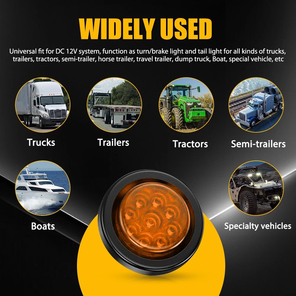 Fit for: Universally fit any vehicles with DC 12V-24V such as Semi Truck & Trailer, Service Truck, Bus, Service Van, Utility Truck, Parade Float, Horse Trailer, Utility Trailer, Pick Up Truck, UTE, UTV. Specifications: Product Material: ABS+PC Suitable Voltage: 12-24V Lens Color: Amber Light Color: Amber Wiring Connections: White Wire: Negative Black Wire: Positive Connector Type: Pigtail Mounting Type: Flush-Mount Waterproof Rate: IP67 Lifespan: 50,000h+ Features: *High Brightness Each LED light bright enough and energy-saving. *Superior Quality 5X 2"inch Round 9LED Yellow Truck Trailer Stop Turn Tail Brake Lights For GMC Fit for: Universally fit any vehicles with DC 12V-24V such as Semi Truck & Trailer, Service Truck, Bus, Service Van, Utility Truck, Parade Float, Horse Trailer, Utility Trailer, Pick Up Truck, UTE, UTV. Specifications: Product Material: ABS+PC Suitable Voltage: 12-24V Lens Color: Amber Light Color: Amber Wiring Connections: White Wire: Negative Black Wire: Positive Connector Type: Pigtail Mounting Type: Flush-Mount Waterproof Rate: IP67 Lifespan: 50,000h+ Features: *High Brightness Each LED light bright enough and energy-saving. *Superior Quality Made of high quality material to ensure its low energy consumption, good waterproof and shock resistance. *Waterproof The tail light has IP67 waterproof rate, which works even under extreme conditions such as rain and snow. *Wide Application This LED light can be used in any vehicle with DC 12V-24V, such as a Semi Truck and trailer, Service Truck, Bus, Service Van, Utility Truck, Parade Float, Horse Trailer, Utility Trailer, Pickup Truck, UTE, or UTV. *Warm Notice Please check the detail information of the product carefully before purchasing. Packaging Include: 5 x 2" Round 9 LED Clearance Side Marker Light 5 x 2.8" Round Black Grommet 5 x 2-Pin 90° Plugs Connector Item Specifics Brand AUXITO Manufacturer Part Number WD-R-2IN-5R Manufacturer Warranty 1 Year Voltage 12-24V Connector Type Pigtail Lens Cover Color Yellow Material ABS,PC Mounting Type Flush-Mount Light Color Red Mounting Hardware Grommet Placement on Vehicle Front, Rear, Left, Right Features Waterproof, Sealed Assembly, Easy Installation Number of LEDs 9 IP Rating IP67 Lens Color Red Payment 1. Instant PayPal payment is the preferred method of payment. We also accept payment via PayPal, DebitCard, Visa, MasterCard, Discover. 2. Before payment,Please keep the consistency of Paypal address and ebay address. 3. Quantity orders are welcome! Shipping 1. All items will be shipped in 24 hours after receiving your payment . 2. We ship this item to US only via USPS first class mail. It usually takes 3-6 working days to deliver. Returns 1. We offer free return & money back guarantee. If you are not satisfied with your purchase for any reasons, you can return the item for refund or replacement/exchange. All returns must include the original packaging. (Please refer to our return policy for details.) 2. If you don't return goods within 60 days from date of purchase, your right to cancel will be revoked. Any items damaged because of incorrect installation will not be refunded. Please contact us for return or troubleshooting help prior to returning any products. Contact Us 1. Negative feedback will not help resolve any problems you have, please contact us via eBay messages before leaving negative feedback, our customer service will make best effort to help you with the issues. 2. We maintain high standards of excellenceand strive for 100% customer satisfaction! Feedback is very important to us. We request that you contact us immediately Before you give us neutral or negative feedback, so that we can satisfactorily address your concerns. FAQ 1. Can you tell me when my order will be shipped? Actually we will ship the item within 1 business day after receiving orders. But USPS need to take longer time to update tracking info and arrange delivery during the challenging time for now. If your order was not shipped more than 3 business days, please contact us with your order number to get quick support. 2. My item has not arrived, what's taking so long? Sometimes items take longer than expected, especially if it's going far or to rural area. Check with your post office to see if your item has been held up. Sometimes USPS will not update a tracking number until it has arrived at its destination. If your item still has not arrived after a few days, let us know so we can double check for you and help solve it asap. 3. Do you ship to Canada, United Kingdom, Australia, etc.? Unfortunately, we could only ship to United States (Domestic shipment) at the moment. 4. I bought the wrong items/ the items were not compatible with my vehicle. Please contact us via ebay message to get quick support. DESCRIPTION PAYMENT SHIPPING RETURN POLICY CONTACT US Hot Item Smoked Black LED 3RD Third Brake Light Cargo Lamp Sealed For Ford 1993-11 Ranger USD 23.74 Fog Lamp Reflector For Toyota RAV4 2013-2015 Passenger Right Rear Bumper Light USD 19.99 Rear Bumper Reflector fog Light Lamp Left For Lexus 2004-2009 RX330 RX400H RX350 USD 24.99 Right Passenger Rear Bumper Light Fog Lamp Reflector For Toyota RAV4 2013 14 15 USD 19.99 LED 3rd Brake Light Tail Lamp For Ford 2009 2010 2011 2012 2013 2014 F150 Pickup USD 30.99 New List Item Carburetor Rebuild Repair Kit For Honda Shadow ACE 750 VT750CD Deluxe 1998-2003 USD 20.09 For 2000-06 Chevy Tahoe Suburban Yukon GMC XL License Plate LED Light Lamp Pair USD 14.09 Right Rear Bumper Light Reflector Red Passenger Side For BMW E70 X5 2007-2010 USD 13.09 Windshield Roof Molding Repair Retainer Set for 2004-2008 Acura TSX 2005 2006 7 USD 10.09 Master Power Window Switch Door for Kia Sorento 3.3L 2.4L 3.5L 93570-2P100VA US USD 21.09 Excellent Delivery 5X 2"inch Round 9LED Yellow Truck Trailer Stop Turn Tail Brake Lights For GMC Fit for: Universally fit any vehicles with DC 12V-24V such as Semi Truck & Trailer, Service Truck, Bus, Service Van, Utility Truck, Parade Float, Ho