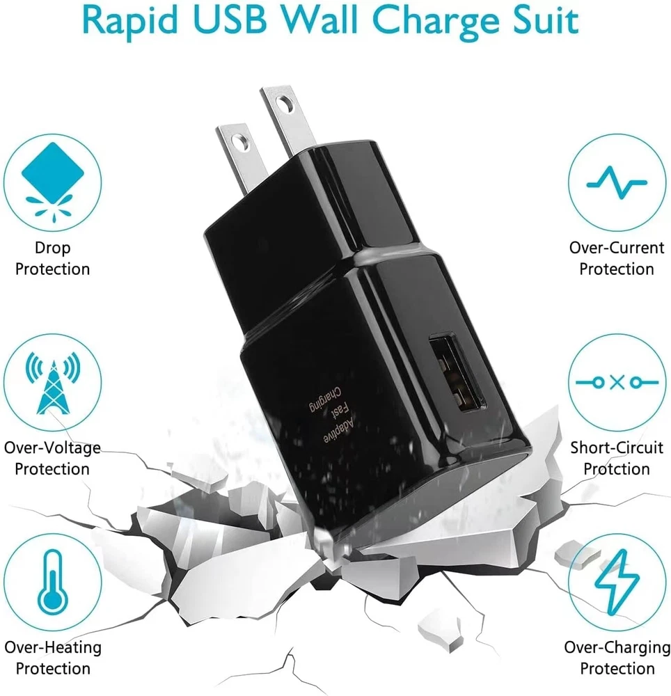Adaptive Fast Charger: This fast wall charger compatible with both Quick Charge 2.0 (QC 2.0) and Adaptive Fast Charging (AFC) ,enables mobile phone to be 50% charged in 30 mins,75% faster than standard chargers. You should not be concerned the fast charger gets hot when charging "The purpose of this AFC technology is to get the phone charged faster to a percentage of 50 to 60 percent. During charging, the phone may become very hot. It will cool down after 60% of battery. Therefore, AFC is actually not used to fully charge a device." Fast charging Compatible phone model: For Samsung Galaxy S21/S21+/S21 Ultra/S20/S20+/S20 Ultra/Note20/Note 10- Samsung Galaxy S10 / S10 e / S9 / S9 Plus/ S8 / S8 Plus / S8 Active / Note 9 / Note 8 - Samsung Galaxy S7 / S7 Edge / S7 Plus / S7 Active / S6 / S6 Edge / S6 Plus / S6 Active / Note 5 - Other Quick Charger 3.0/2.0 supported devices For Huawei P30 Pro, P30 Pro, P20, P20 Pro, P10, Mate 30, Mate 20, Mate 10 For Lenovo Zuk Z1 / Z2 / Z2 Pro / Edge For HP Pavilion X2 / Spectre X2 For Google Pixel / Pixel XL / Pixel 2 / Pixel 3 / Pixel 3XL / Pixel XL2, Nexus 5X / 6P For Nokia N1 Tablet / 9 Microsoft Lumia 950 / 950 XL Asus Zen AiO / Z580C tablet Xiaomi 5 ZTE Axon 7 And More Package Included: 5x fast wall charger (Optional)