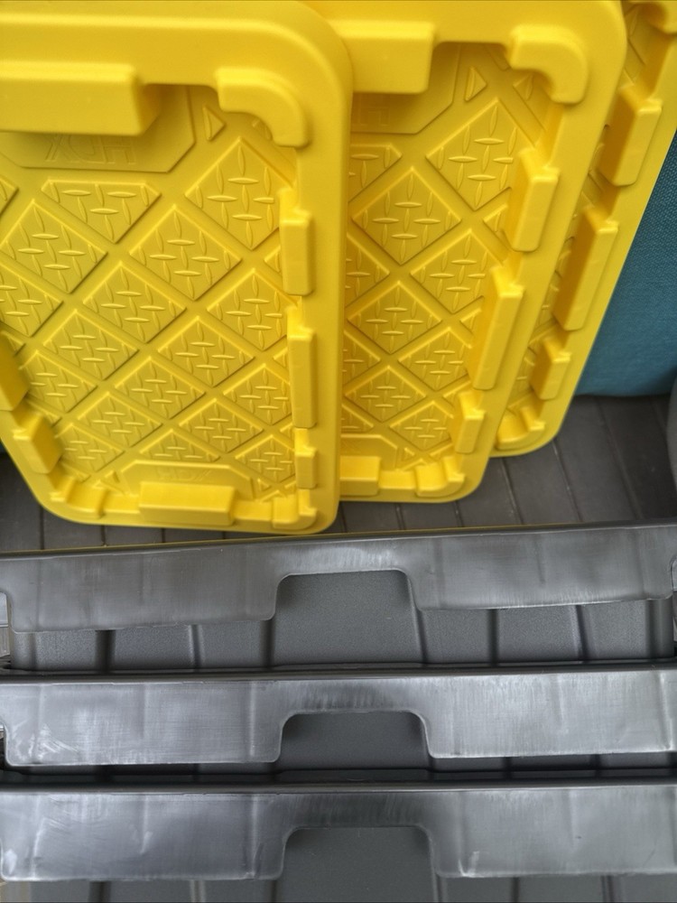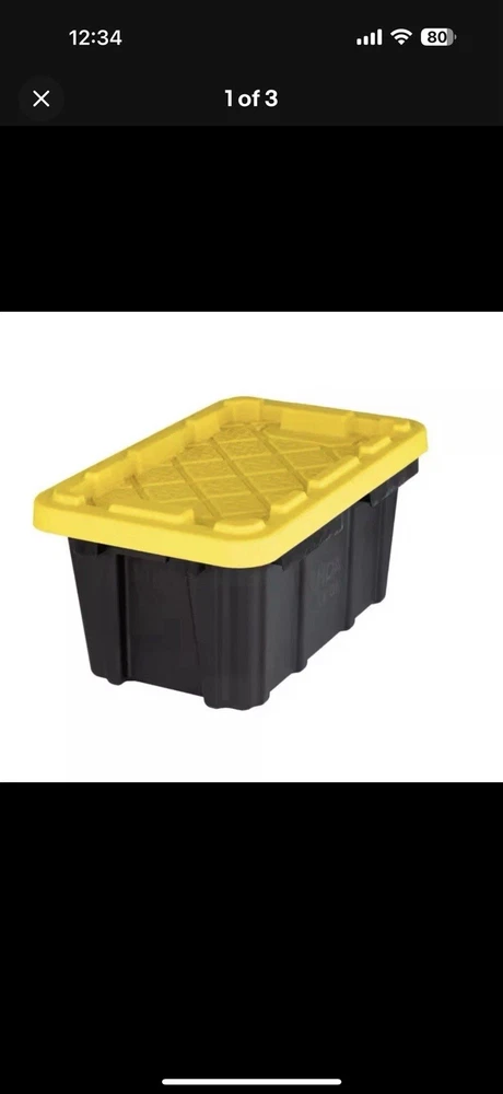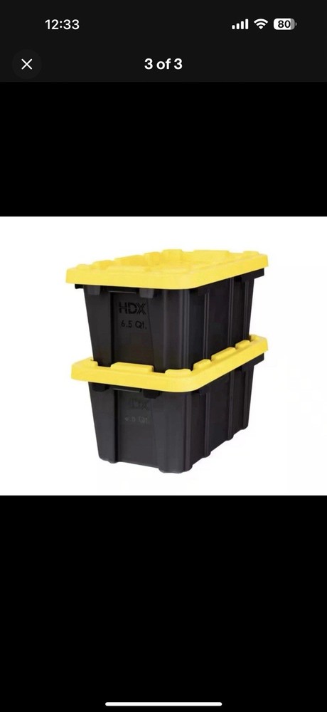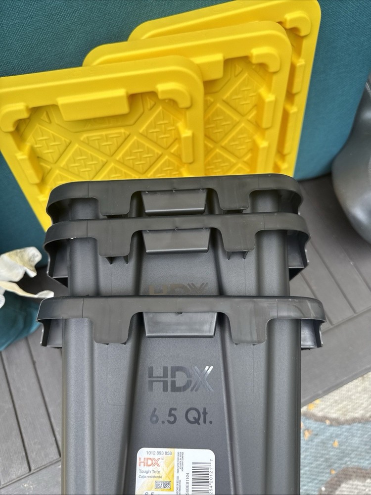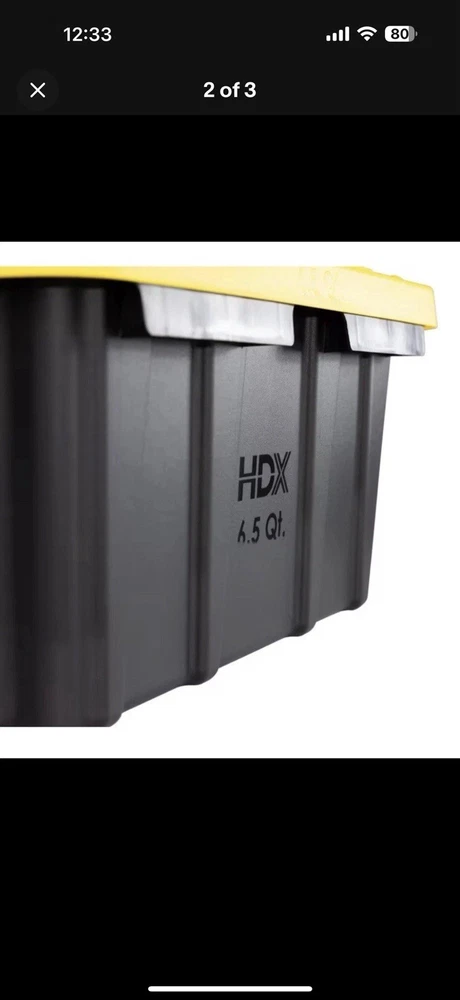 UPC:0840254201217Type:Containergtin13:0840254201217Size:MiniBrand:HDXOriginal/Reproduction:OriginalNumber in Pack:5Item Width:12.9”Assembly Required:NoMaterial:PlasticItem Depth:25.2 inStyle:This storage tote comes in a classic black and yellow color schemPersonalize:NoTheme:See detailNumber of Items in Set:Two-PieceCountry of Origin:United StatesShape:RectangleMounting:Free StandingModel:999-27G-HDX.Item Weight:Less Than 2 lbCapacity:6.5 QtColor:Black,YellowFinish:black with a yellow lid.California Prop 65 Warning:See detailItem Height:6.2”Item Length:8.1”MPN:NAPattern:SolidFeatures:Heavy Duty, Lidded, StackableNumber of Compartments:1