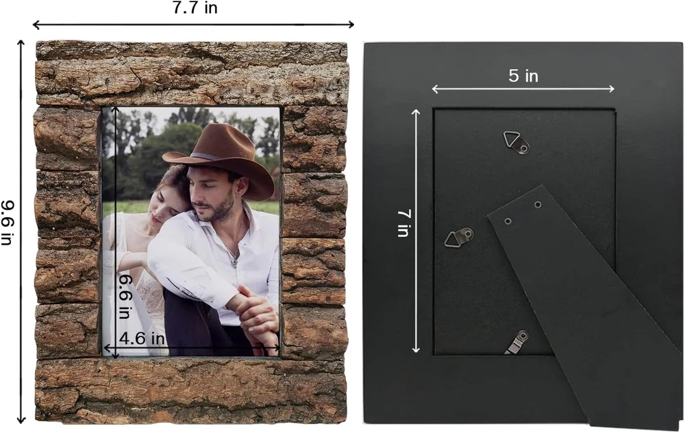 UPC: 313093466418 Number of Items: 1 gtin13: 313093466418 Product Care Instructions: Wipe With Dry Cloth Style: Rustic Type: Does not apply Orientation: Horizontal or Vertical Batteries required: No Brand: Does not apply Item Width: Does not apply Special Feature: Natural Real Bark Finish types: Natural Real Bark Capacity: 0.07 Cubic Feet Back Material Type: Wood Item Height: Does not apply Theme: Wooden, Farmhouse, Country, Rustic, Handmade Product Dimensions: 9.6"L x 7.7"W Item Weight: 1.2 pounds Cover Material: Glass Color: 1200 Shape: Rectangular Occasion: Mother's Day, Christmas, New Year, Father's Day, Valentine's Day Frame Material: Wood Target Audience: Adult Frame Type: Single Picture Frame Mounting Type: Tabletop or Wall Mounting Finish Type: Natural Real Bark Item Length: Does not apply Size: 5x7
