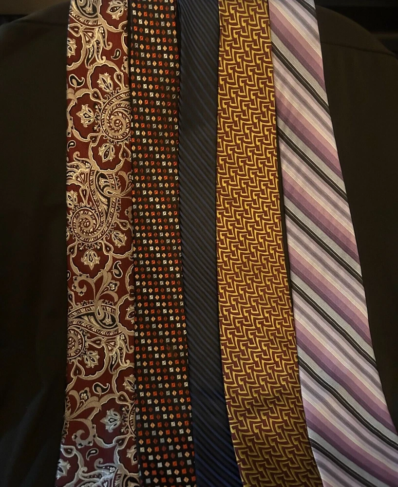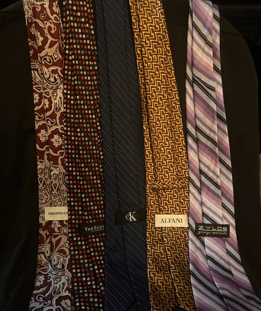 The product is a set of 5 assorted ties for men from various brands such as Calvin Klein, Alfani, and Van Heusen. The ties come in a multicolor design, offering a variety of styles to choose from. This collection provides a selection of ties that can complement different outfits and occasions, making it a versatile addition to any wardrobe.