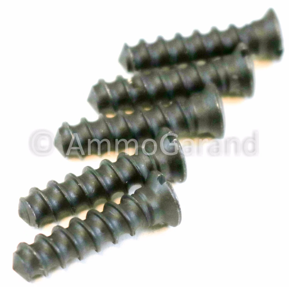Five (5ea) New M1 Garand Short Butt Plate Stock Screws . - New GI Spec Mang Parkerized finish - Fit M1 Garand and 1903 Butt Plates - Price is for 5 each screws. NOTE: * For Multi Item Buys, we combine buys and refund difference when we ship as Ebay usually has incorrect shipping when you buy more than two lots or get other items we sell. ** All orders shipped with USPS Tracking . US Sales ONLY!
