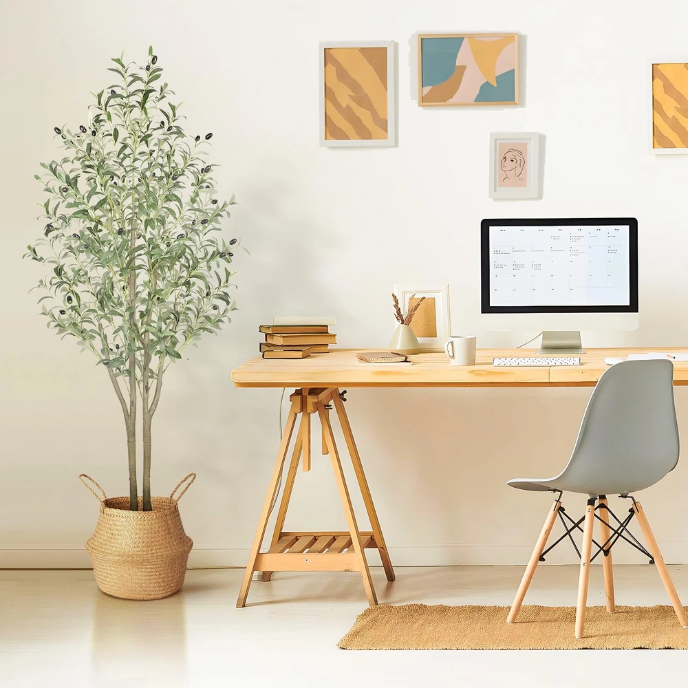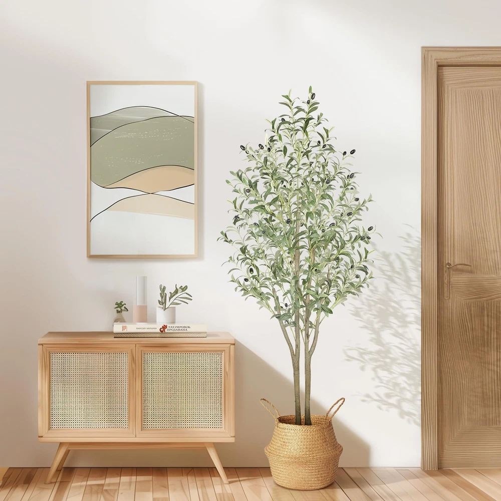 ๐๐๐ข๐ง๐๐ฅ๐ฒ ๐๐จ๐ญ๐๏ผDecorative pot in picture is NOT included. Our product comes with a white pot. ๐ผ๐๐๐ซ๐๐๐๐ญ ๐๐ข๐ฆ๐๐ง๐ฌ๐ข๐จ๐ง๐ฌ๏ผStanding at a graceful height of 5 feet, this artificial olive tree adds charm to any space. Each branch and fruit is carefully crafted, creating a full-bodied look that rivals its natural counterpart. By bringing a touch of nature into your living environment, this tree enhances comfort and adds artistic flair to your dรฉcor. Due to the special nature of the production, each olive tree branch style is unique. ๐ผ๐๐๐๐ฅ๐ข๐ฌ๐ญ๐ข๐ ๐๐ง๐ ๐๐๐ฃ๐ฎ๐ฌ๐ญ๐๐๐ฅ๐๏ผEmbrace realism and versatility with our lifelike Faux Olive Tree, featuring 936 intricately crafted leaves and 52 realistic fruits that exude natural charm. Its adjustable branches allow for effortless customization, making it a perfect fit for any space. Constructed with a sturdy metal frame and reinforced with flexible wire, this tree promises exceptional durability and easy reshaping. ๐ผ๐๐๐ช๐ฎ๐ข๐ซ๐ข๐ง๐ ๐๐จ ๐๐ฉ๐ค๐๐๐ฉ๏ผExperience the Lifelike Charm of Evergreen Beauty with Our 5-Foot Artificial Olive Tree! Enjoy the beauty of nature without the hassleโno need for sunlight, watering, or pruning. Simply wipe it clean for lasting elegance in any space. ๐ผ๐๐๐๐ ๐๐ง๐ ๐๐ซ๐๐ฆ๐ข๐ฎ๐ฆ ๐๐๐ญ๐๐ซ๐ข๐๐ฅ๐ฌ๏ผOur artificial olive tree is crafted from durable, environmentally friendly silk material that feels remarkably realistic. It is odorless, insect-repellent, waterproof, and completely safe, making it ideal for homes with children or pets. The sturdy white base is made of cement-filled hard PP material, ensuring stability and preventing tipping. You can rest easy knowing that all materials used are flame retardant and TUV certified, allowing you to enjoy a safe and reliable environment with peace of mind. ๐ผ๐ ๐ฅ๐๐ฑ๐ข๐๐ฅ๐ ๐๐ญ๐ข๐ฅ๐ข๐ณ๐๐ญ๐ข๐จ๐ง๏ผThis 5-foot Artificial Olive Tree is ideal for enhancing a variety of spaces, including living rooms, bedrooms, dining areas, and offices. It also adds charm to entryways, patios, bookstores, coffee shops, and other commercial settings. A thoughtful gift for occasions like Christmas, Thanksgiving, or housewarmings, it arrives in a non-decorative pot. For an elevated look, we recommend repotting it into a decorative container that complements your style. ๐ผ๐๐๐ ๐๐ฅ๐ข๐ฏ๐ ๐๐ซ๐๐ ๐๐๐ซ๐๐๐๐ญ๐ข๐จ๐ง๏ผFurthermore, to facilitate your DIY creation of your very own olive tree, our product base is ideally suited for positioning within your specially acquired decorative basket.