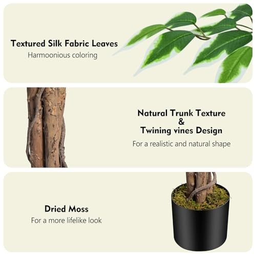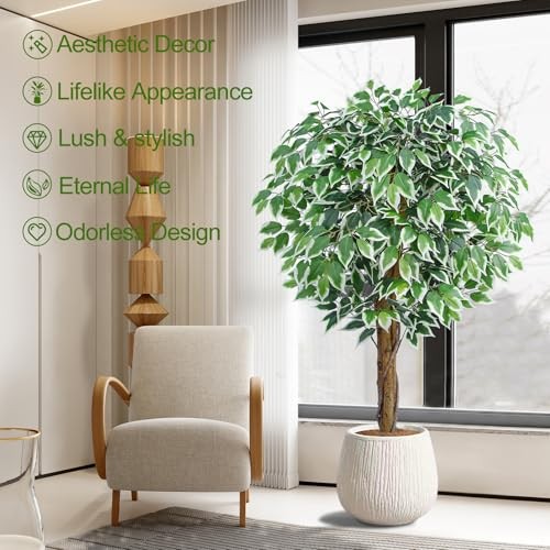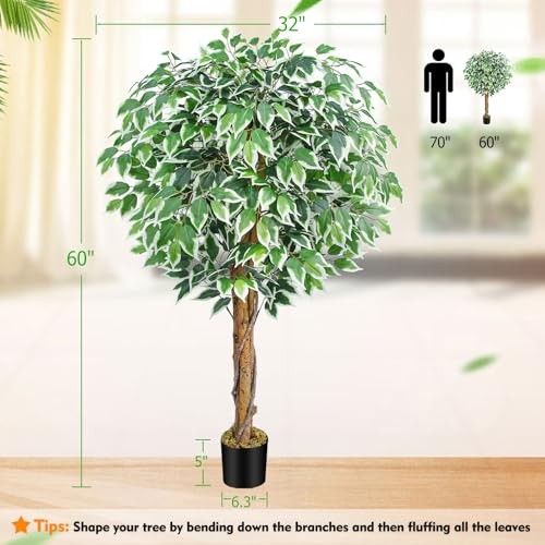 Return Policy Fast Delivery Trusted seller 5ft Ficus Artificial Trees with Natural Curved Trunks, 60" Tall Lush Faux Tree for Home Decor Indoor, Green Lifelike Fake Ficus Tree 1pcs Product Description ?This 5ft tall artificial ficus tree is made of durable and premium silk material, up to 756 high quality silk fabric leaves with realistic texture to give this ficus tree a very lush and luxurious look, 3 natural yellow-cattle wood trunks with a twisted vine design, plus adding our real dried moss, which looks as real as natural ?This lifelike ficus tree will create a sunny atmosp wver you place it, no need for watering and pruning, looks full and fresh every day, it's a perfect decoration for indoor home office living room bedroom modern aesthetic decor, this ficus artificial tree will let you feel the presence of nature, looks so full and real ?Overall Product Dimensions: 60"H x 32"D x 32"W; Black Planter Pot Dimensions: 6"D x 6"W x 5"H; The black pot is made of heavy solid cement which to prevent children, pets knock it down, they are also strong enough to support light string, slights, it is a great addition for wedding ceremony, fireplace, dinner table, party or event decor, etc ?The lush artificial ficus tree outfitted with sturdy inner metal wires, the branches and leaves themselves are adjustable so you can really craft your ideal ficus tree, it is nestled inside a 6" non-decorative black plastic pot for versatile appeal, so we suggest you tuck it into the bigger and more beautiful planter pot of your choice so it fits right into your ensemble ? To get the best look, make sure to buy good quality faux ficus tree that are worth your money, many different options are realistic and sturdy enough to last for years, find the best artificial ficus tree that suits your style, pop it on your home, porch, office, sit back, relax and enjoy the natural and relaxed vibe Shipping Returns Payment Shipping Shipping is FREE to all addresses other than APO/PO boxes in the lower 48 states. All our stock ships from US-based warehouses. Shipped via USPS or UPS (depending on location and package weight) Unless stated otherwise, all orders will ship within 24-72 hours of your payment being processed. Check our feedback to see the great reviews of FAST shipping we offer. Returns Seller does not accept returns Payment We currently accept payment via eBay managed payments only. Once payment is cleared, we will dispatch your shipment within 1-3 business days. Please refer to the "Shipping" tab for more information regarding shipping speed to your destination.