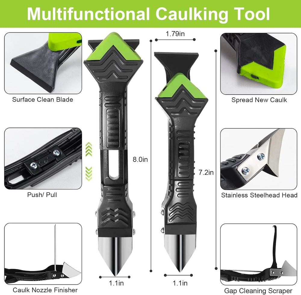5-in-1 Caulking Tool Kit with 6 Replacement Silicone Pads for Easy Repair ‹ › ‹ › ‹ › ‹ › ‹ › ‹ › ‹ › ‹ › ‹ › 5-in-1 Caulking Tool Kit Key Features: Multifunctional design: Repair gaps, clean residual glue, and fill caulk with ease. Stainless steel scraper and finishing tool for removing stubborn old glue. Silicone trowel for smoothing sealing lines and caulking lines. 6 reusable and replaceable silicone pads with a variety of sizes (3R, 6R, 10R, 13R, 15R, 17R radius). Durable materials: High-quality stainless steel head and corrosion resistant plastic ensure longevity. Damage-free application, preventing scratches on delicate surfaces. Enhance Your Project: Perfect for home, kitchen, bathroom, and more. Improve the visual aesthetics of joints and edges effortlessly. Reduce waste of sealant through precision application. Why Choose Our Caulking Tool Kit? The 5-in-1 Caulking Tool Kit is the ultimate companion for DIY enthusiasts and professionals alike. With its multifunctional capabilities, you can achieve a flawless finish on every caulking job. No more messy applications or unsightly gaps. Our tools guarantee superior agglutination quality and enhance the overall appearance of your surfaces. With a blend of durability, functionality, and user-friendliness, this tool kit is a must-have for all your repair and renovation needs. Whether you’re refreshing your bathroom or upgrading the kitchen, this kit ensures a professional finish with minimal effort. Elevate your repair game today — order your 5-in-1 Caulking Tool Kit now! Shipping Free & Fast Shipping - We offer free shipping to most of the USA with a normal delivery time of 3-7 days. However, due to the current situation, additional delivery time (up to 3 weeks) may be required for some items. Alternative Carriers - We may use alternative carriers (e.g. USPS, FedEx, UPS, etc.) to ensure your package arrives safely and on time. Due to the use of multiple carriers, we are unable to provide a tracking number automatically. Handling Time - Orders are processed and shipped within 1-2 business days of receiving cleared payment. Shipping Restrictions - Shipping to Alaska, Hawaii, Puerto Rico, Guam, and other US territories may incur shipping charges or delivery restrictions. Please contact us before ordering, or your order can be refunded/cancelled. State Restrictions - There may be restrictions based on your state of purchase. For example, certain items may not be shipped to California due to state regulations. Contact for Tracking Updates - If you require tracking updates or have any concerns about the delivery of your order, please feel free to contact us, and we will be happy to assist you. Return 30-Day Hassle-Free Returns - We want you to be completely satisfied with your purchase. If you are not, you can return the item within 30 days of receiving it for a full refund or exchange. Easy Return Process - To start a return, simply contact us and we will provide you with a prepaid return shipping label and detailed instructions. Restocking Fee - There are no restocking fees for returns. However, the buyer is responsible for return shipping costs if the return is not due to a seller's error. Refund Processing Time - Refunds will be processed within 5 business days of receiving the returned item in its condition. Payment We accept all major credit cards, PayPal, and Apple Pay for your convenience. Your payment information is secure and encrypted to ensure a safe and seamless transaction. Please complete your payment within 3 days of purchase to avoid any delays in shipping. Feedback Your feedback is extremely important to us. We strive to provide the best products and customer service possible. If you are satisfied with your purchase, please take a moment to leave us a positive review. If you have any concerns or issues with your order, please contact us before leaving negative feedback. We are committed to resolving any problems and ensuring your satisfaction. Contact Us If you have any questions or concerns, please feel free to out to our customer support team. You can contact us through the eBay messaging system. We are available Monday to Friday, 9:00 am to 5:00 pm EST, and we will do our best to respond to your inquiry within 24 hours. Buy it now and enjoy a pleasant shopping experience! Model: Caulking Tool Item Width: Caulking Tool Item Length: Caulking Tool Item Height: Caulking Tool Item Weight: 0.15 kilograms Unit Quantity: 1 Material: Plastic,Stainless Steel Type: Caulking Tool Number of Pieces: 1 Color: Green Unit Type: Unit
