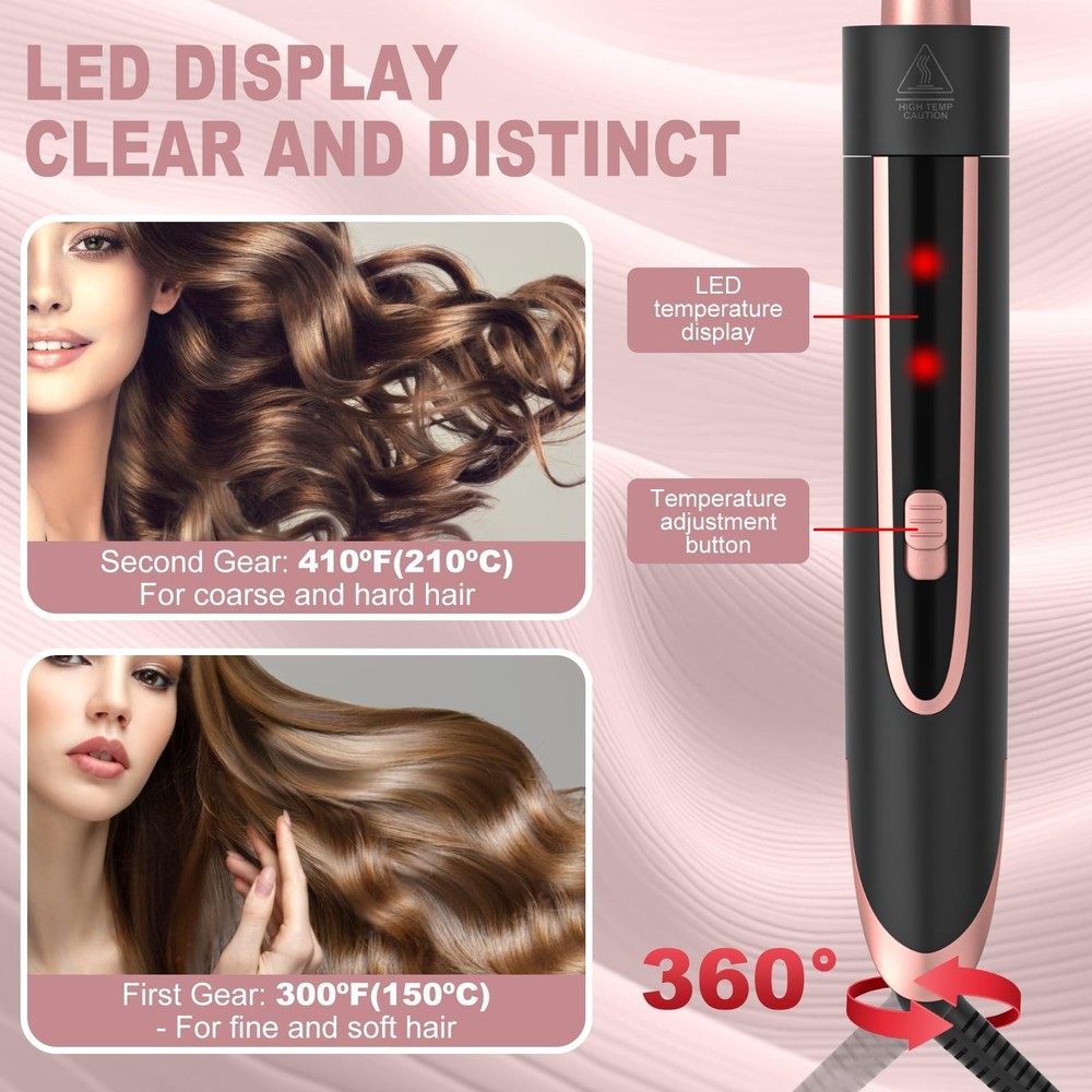 5 in 1 Curling Wand Set, Curling Iron with Curling Brush,Hair Straightener & 3 Interchangeable Ceramic Curling Wand(0.35"-1"), Fast Heat Hair Wand Curler, Include Glove & 2 Clips for Women Girls Gift Product Details Product Benefits: Hair Styling Shape: Barrel Brand: Amgcive Hair Type: All Material: Ceramic, Plastic Product Dimensions : 8 x 3 x 3 inches; 1.94 Pounds Date First Available : March 8, 2025 Manufacturer : Amgcive Country of Origin : China Best Sellers Rank: #341,998 in Beauty & Personal Care (See Top 100 in Beauty & Personal Care) #651 in Hair Curling Wands #651 in Hair Curling Wands Customer Reviews: 3.8 3.8 out of 5 stars 33 ratings Create Any Hairstyle Instantly with 5 Tools in 1: Unleash your creativity with Amgcives 5-in-1 styling set! Featuring a 1.5" Curling Brush, 1" Straightener, 0.35-0.7" Tapered Iron, 1" Bubble Barrel, and 0.4" Curling Iron, this kit lets you craft sleek straight locks, bouncy curls, or beachy waves effortlessly. Perfect for beginners and pros alike Swap Barrels in Seconds No Fuss, No Mess: Change styles in a flash with Amgcives easy-swap barrel system. Simply align, twist, and lock your chosen barrel into place. To switch, pull the lock catch and snap in a new one. Includes protective gloves for safe, seamless styling every time 2-in-1 Magic: Straighten & Curl with One Tool: Why settle for one tool when you can have both? The ceramic-coated straightener delivers smooth, shiny results, while the interchangeable curling barrels create everything from tight ringlets to loose waves. One tool, endless possibilities for stunning hair Fast Heat & Smart Control for All Hair Types: Ready in just 15 seconds with advanced PTC heating technology, Amgcives curling iron offers two temperature settings (302F for fine hair, 410F for thick hair) for precise, damage-free styling. Achieve salon-quality looks at home with ease Travel Anywhere, Style Everywhere: Compact, dual-voltage (100V-240V), and packed with safety features like overheating protection and anti-scald gloves, this set is your perfect travel companion. Create gorgeous hairstyles on the go and turn heads wherever you are