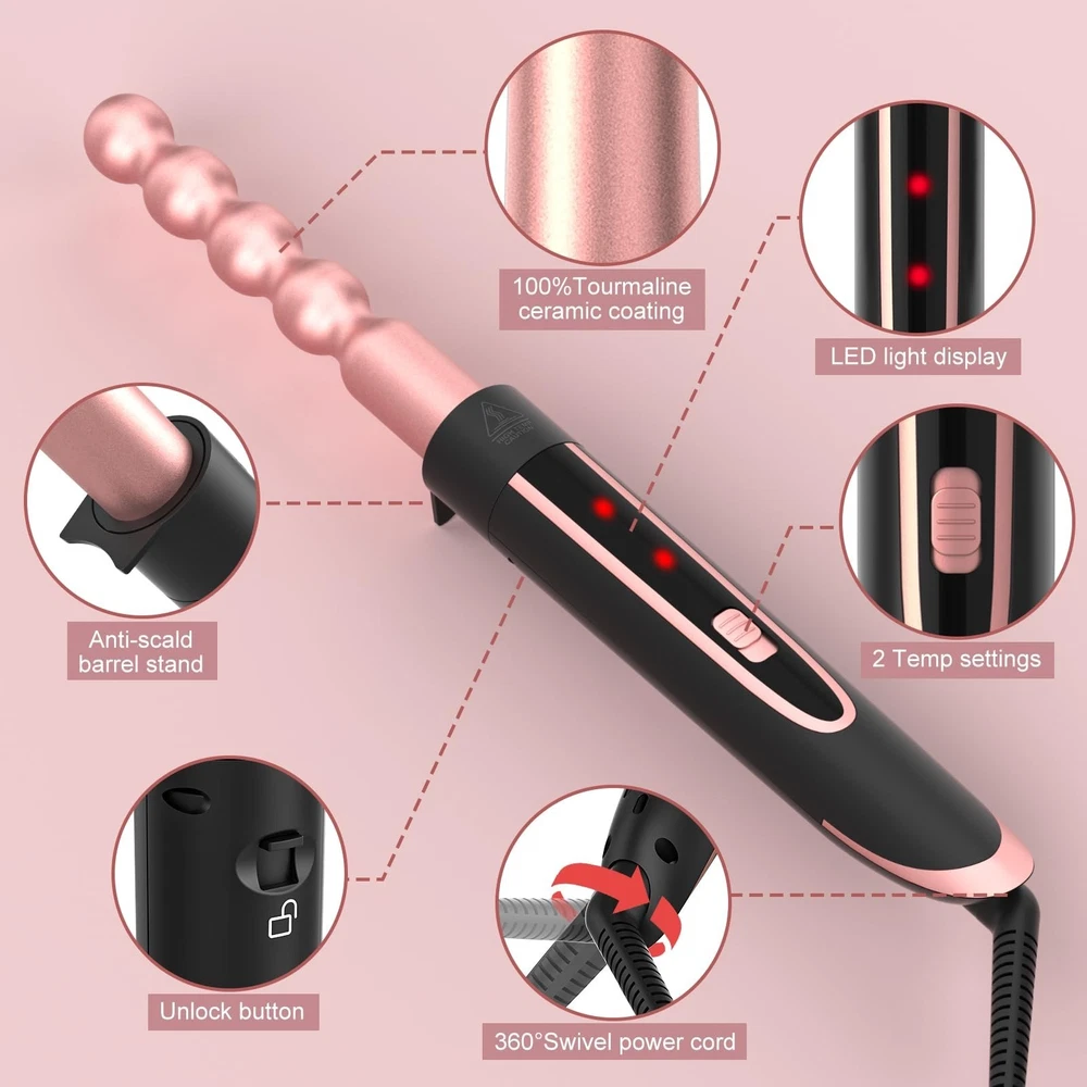 $ 11.4432mm Bubble Curling Wand with LCD Display & Ceramic Barrel for Beach Waves