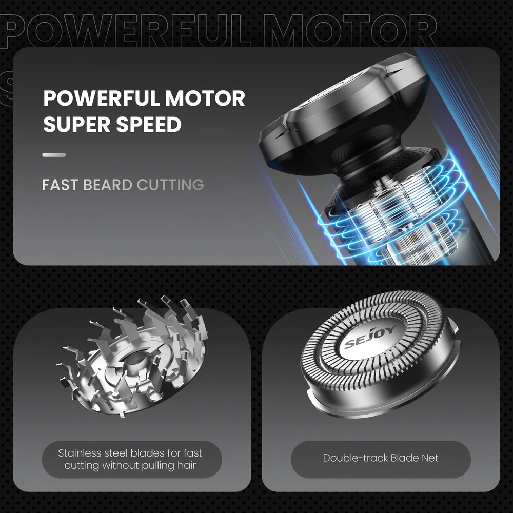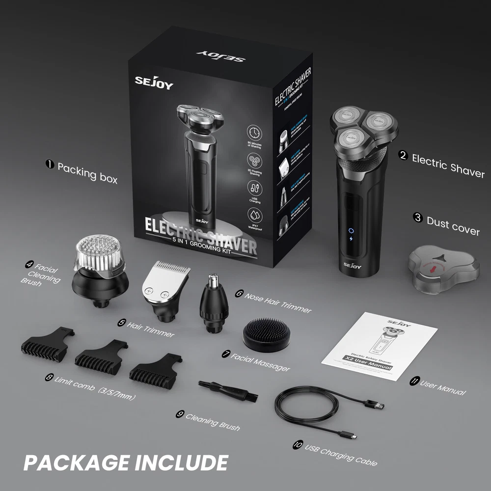 eBay SEJOY Joytech Shop Search... Our Store About us Reviews Contact SEJOY Electric Shaver 5in1 Rotary Shaver 3D Floating Shaving Head IPX7 Waterproof USB Charging & Reliable batteries Low Power Indicator only 18.9 $ Buy it now Any questions? Information Payments & Postage Specifications Colour :Black Model: X2-SET Rated Power: 5W Rated Voltage: 3.7V Charging Time: 1.5 Hours Waterproof:IPX7 Motor type:Rotary Package Content 1*Electric Shaver 1*USB Cable 1*User Manual 3* Hair Trimmer Comb(3mm/5mm/7mm) Nose Trimmer Head Facial Massage Head Feac Cleaning Head Hair Trimmer Head 3D Shaving Head Details 1 Double-track Blade Net (18×3 blades), High Precision Steel (0.11 mm Thickness) and self-sharpening Blade. The 3D Floating rotary shaver head automatically adapts to the contours of your face and neck bringing you an effective and smooth shaving experience. Moreover, the self-sharpening blades designed for durability, which can save your time to change the blade. 2 : An extremely versatile men's shaver includes four interchangeable heads that not only shaves your beard but also allows you to trim away sideburns, hairs (3mm,5mm,7mm) and nose hairs. In addition, features a facial cleaning brush and massage brush for deep skin cleansing. You can easily cut your hair to your preferred length. For all your hair trim and facial needs.(Blue-Electric Shaver Kit) 3 IPX7 waterproof design caters for both wet and dry use, supporting shaving with foam or water. No longer worry about using it in the bathroom, the electric head shaver can complete the trimming task efficiently. Use this electric head shaver under running water and enjoy shaving in the shower. 4 This cordless razors for men comes with a USB cable(NO USB adapter), can be connected to the computer, power bank, car, and other USB device, more secure and convenient. Up to about 90 minutes shaving time after about 1.5 hours charging. Enjoy an easy charging at home, or on the road. It is perfect for every businessman and travelers. 5 When the battery is in a low battery state, the LED light will prompt you to charge in time to avoid the use of insufficient power or stop working on the way to use. Payments & Postage Links All Listings About us Reviews Contact Our Service Free shipping Money-back guarantee 30 Days Refund and Return Competent support Contact Do you have any questions about our products? Feel free to contact us via the eBay contact form. eBay message
