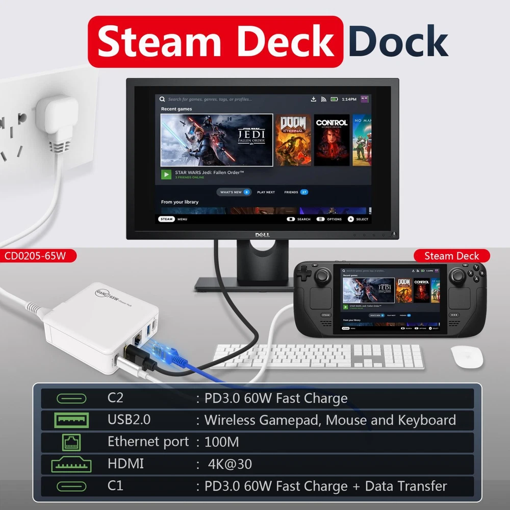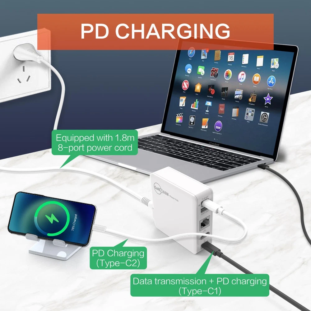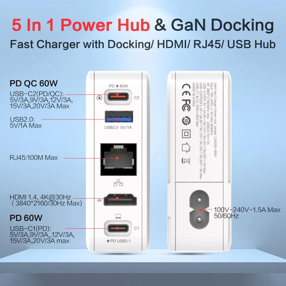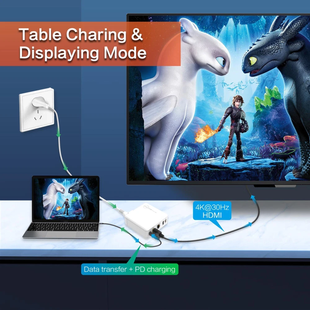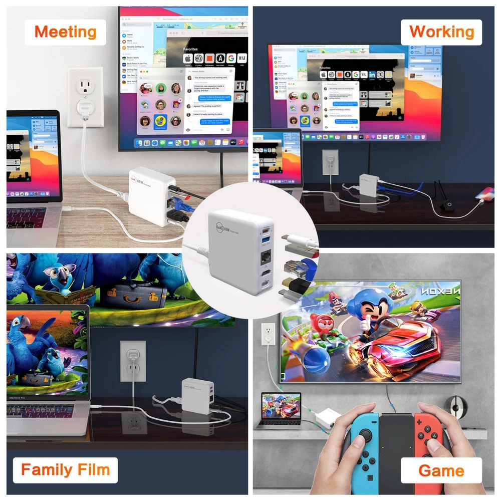 NEW-00023 5-in-1 Expansion USB C HDMI Adapter Fast Charger Dock Station With Power Cable PRODUCT DESCRIPTION Features: Massive Expansion 5-in-1 USB C HDMI Adapter for Nintendo Switch and for Nintendo Switch OLED and laptops, Equipped with 1*HDMI port (4K 30Hz), 1*100M Ethernet port, 1*3.1 USB-C PD 60W, 1*USB-C data port+PD/QC 60W, 1*USB-A 2.0, which meet all your connecting needs in a dock. High-Speed Charging 65W USB-C charing station with the latest wide-bandgap semiconductor chip, get a charge 3X faster than your original charger, and improved heat dissipation to protecting devices from overheating, which is lighter and more secure. The USB C adapter is also equipped with power cable and USB-C charging cable,expand your work opportunities and provide you more stable performance. Wired Network for Nintendo Switch docking station has an ethernet port with a transmission rate of up to 100Mbps, With the Switch docking station, playing games and fast charging can go at the same time. Of course, mobile phones fast charging is no exception. You don't have to worry about network restrictions when you are working, movies, and playing games. For Nintendo Switch charging dock provides you with a stable and fast network environment to win the game! Up to 4K HD ResolutionThe HDMI ports with resolution can be up to 4K 3840x2160@30Hz, it can connect with external large screen HD devices for 4K, 1080P output. When you use the HDMI, transfer vivid 4K Ultra HD video with 3D effects from a laptop screen to a TV, HDTV, Monitor and other HDMI display devices. USB-C power hub provides fast charging and a clearer, allowing you to enjoy a visual feast in movies or games without causing power failure and network interruption. Super Compatibility Our universal docking station has a wide range of applications, which is suitable for many laptops and smartphones. 2 USB-C ports can quickly charge computers, mobile phones, tablets, game consoles, etc. USB-A ports can link gamepads, mice and keyboards, USB, printers, etc. HDMI port can connect TV, projector, monitor screen, etc. RJ45 Ethernet port allows laptops to enjoy 100Mbps high-speed Internet instantly. Specifications: AC: 100V-240V 1.5A Max 50/60Hz USB-C2(PD/QC): 5V/3A, 9V/3A, 12V/3A, 15V/3A, 20V/3A Max PD QC PPS 60W USB2.0: 5V/1A Max RJ45: 100Mbps Max HDMI 1.4: 4K@30HZ(3840*2160/30Hz Max) USB-C1(PD): 5V/3A, 9V/3A, 12V/3A, 15V/3A, 20V/3A max PD 60W Package includes: 1* 5 in1 65W Fast Charger 1* Power Cable Shipping Contact Us Our products have been sent to the US warehouse. All items will be shipped via WINIT CORPORATION. In 2-5 working days, you will receive your items. Thank you and have a nice day. If you have any question about us or items, please contact us, we will reply it as soon as possible. Shipping Our products have been sent to the US warehouse. All items will be shipped via WINIT CORPORATION. In 2-5 working days, you will receive your items. Thank you and have a nice day. Contact Us If you have any question about us or items, please contact us, we will reply it as soon as possible. PaymentShippingReturn policyAbout usContact us Copyright © - Tongtool All rights reserved | Design:Tongtool