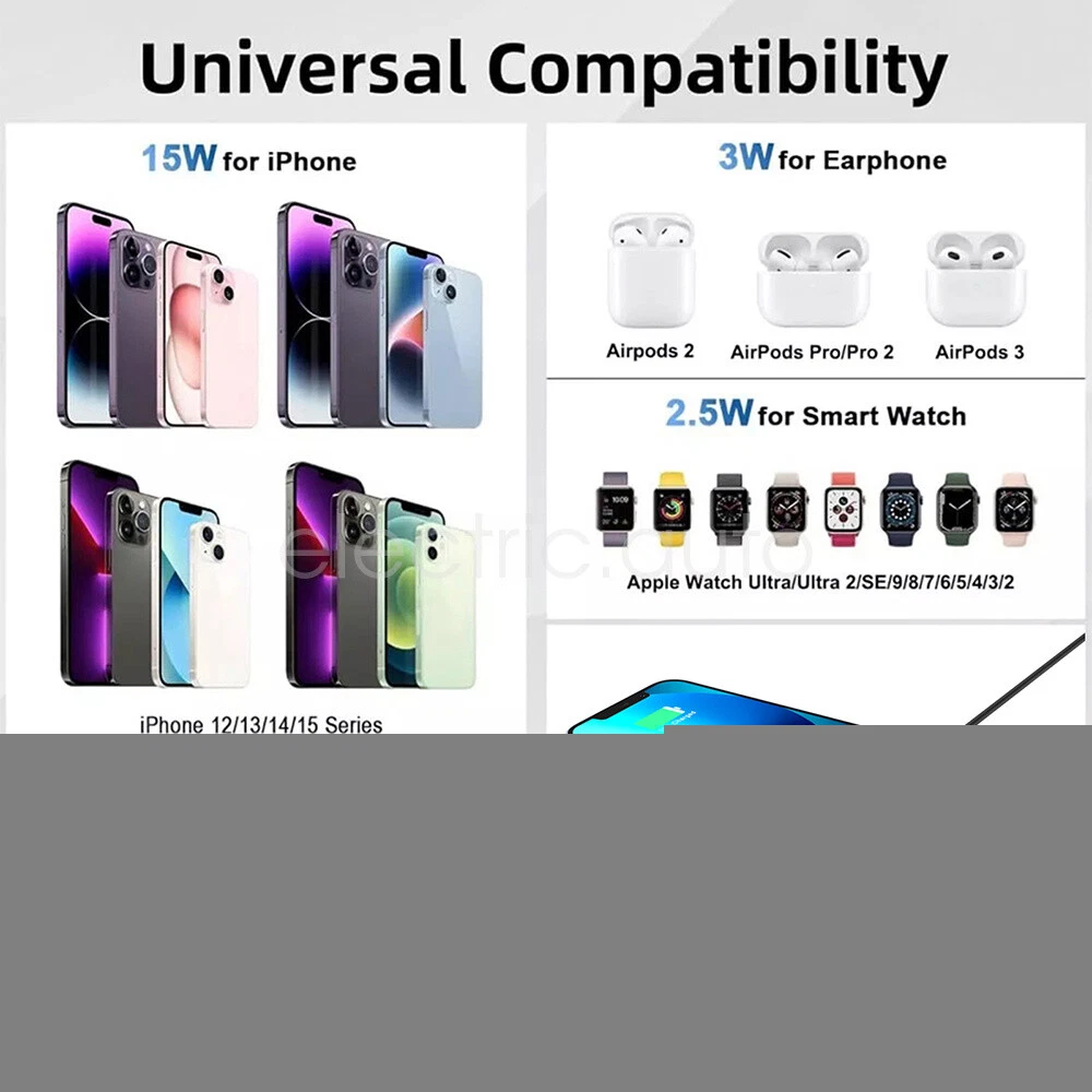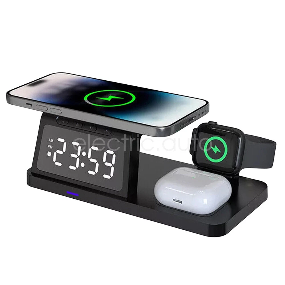 Product View Detail Features: 【 5-in-1 】 :The 5-in-1 wireless charger can wirelessly charge up to 3 devices, you can also connect 1 device for wired charging. It includes night light and alarm clock. 【 LED Clock Display】:Equipped with time display and alarm clock, this charger is very useful to keep on your desk. 【 Widely Used 】 :The 5-in-1 charging cradle can be used in the bedroom, kitchen, office and anywhere you like. 【 5-in-1 Design】: The wireless charging station can charge your phone, Apple Watch, and headphones at the same time, leaving your desk and bedside table tidy and organized without messy cords. For better charging experience, please use QC 3.0 power adapter (QC 3.0 adapter not included). 【Safe Charging】:The cordless phone charger provides temperature control and voltage protection as well as short circuit prevention to ensure safe and stable charging. This wireless charger provides you with a safe experience. Anti-slip silicone pads on the base and bottom protect your device from scratches and slips while charging. 【Universal Compatibility】:Apple charging cradle for most Apple devices. Compatible with iWatch series 8/7/6/SE/5/4/3/2/1; Compatible with AriPods Pro/3/2/1; Compatible with iPhone series. (Not compatible with Samsung watches). Compatible with iPhone 8/X/11/12/13/14 series, Samsung S10/S20/S21/S22; Note8/10/20/21 series; other Samsung series that support wireless charging and all other cell phone brands that support wireless charging. Attention: 1.For a fast charging experience, please use a 9V-3A or 12V-2A power adapter (adapter not included). 2.The watch charger is only for Apple Watch, it can't charge Samsung Watch or other brand watches. Specification: *Product Name: 5-in-1 Wireless Charger *Mobile phone output: 5W/7.5W/10W/15W *Watch output: 2.5W (max) *Headphone output: 3W (max) *Charging distance: 1-8MM *Charging efficiency: ≥75% *Product Material: ABS *Product color: black Package Includes: 1*5-in-1 wireless charger 1*Type-C cable 1*User Manual Attention: 1.Not included not include the power adapter! 2.Item is limited to charger only, not including headphones, watch! 3. Due to manual measurement, please allow a difference of 1 cm error! 4. may vary according to light color or monitor tint! Shipping Policy Payment Method Returns Policy Shipping Policy We only accept your Ebay Address ,Please Make sure it's 100% right. The items you ordered will be shipped out in 1 business day by Hong Kong Air Mail when your payment is clear. The arrival time is 5-20 business days to United States usually. We maintain high standards of excellence and strive for 100% customer satisfaction! Feedback is very important to us. We request that you contact us immediately BEFORE you give us neutralor negative feedback, so that we can satisfactorily address your concerns. Payment Method Returns Policy Copyright © 2017 DataCaciques 5in1 Wireless Charger Station Dock for iPhone Apple Watch Airpods Fast Charging Home Payment Shipping About us Contact us Store Categories Store Categories Consumer Electronics PC&Tablet Accessories Mobile Phone Accessories Sound&Vision Headphones Watches Camera Led Lights Others Auto Car Accessories Lights Others Motorcycle Motor Accessories Lights Others Headlamp&Torch Others Other Product View Detail Features: 【 5-in-1 】 :The 5-in-1 wireless charger can wirelessly charge up to 3 devices, you can also connect 1 device for wired charging. It includes night light and alarm clock. 【 LED Clock Display】:Equipped with time display and alarm clock, this charger is very useful to keep on your desk. 【 Widely Used 】 :The 5-in-1 charging cradle can be used in the bedroom, kitchen, office and anywhere you like. 【 5-in-1 Design】: The wireless charging station can charge your phone, Apple Watch, and headphones at the same time, leaving your desk and bedside table tidy and organized without messy cords. For better charging experience, please use QC 3.0 power adapter (QC 3.0 adapter not included). 【Safe Charging】:The cordless phone charger provides temperature control and voltage protection as well as short circuit prevention to ensure safe and stable charging. This wireless charger provides you with a safe experience. Anti-slip silicone pads on the base and bottom protect your device from scratches and slips while charging. 【Universal Compatibility】:Apple charging cradle for most Apple devices. Compatible with iWatch series 8/7/6/SE/5/4/3/2/1; Compatible with AriPods Pro/3/2/1; Compatible with iPhone series. (Not compatible with Samsung watches). Compatible with iPhone 8/X/11/12/13/14 series, Samsung S10/S20/S21/S22; Note8/10/20/21 series; other Samsung series that support wireless charging and all other cell phone brands that support wireless charging. Attention: 1.For a fast charging experience, please use a 9V-3A or 12V-2A power adapter (adapter not included). 2.The watch charger is only for Apple Watch, it can't charge Samsung Watch or other brand watches. Specification: *Product Name: 5-in-1 Wireless Charger *Mobile phone output: 5W/7.5W/10W/15W *Watch output: 2.5W (max) *Headphone output: 3W (max) *Charging distance: 1-8MM *Charging efficiency: ≥75% *Product Material: ABS *Product color: black Package Includes: 1*5-in-1 wireless charger 1*Type-C cable 1*User Manual Attention: 1.Not included not include the power adapter! 2.Item is limited to charger only, not including headphones, watch! 3. Due to manual measurement, please allow a difference of 1 cm error! 4. may vary according to light color or monitor tint! Shipping Policy Payment Method Returns Policy Shipping Policy We only accept your Ebay Address ,Please Make sure it's 100% right. The items you ordered will be shipped out in 1 business day by Hong Kong Air Mail when your payment is clear. The arrival time is 5-20 business days to United States usually. We maintain high standards of excellence and strive for 100% customer satisfaction! Feedback is very