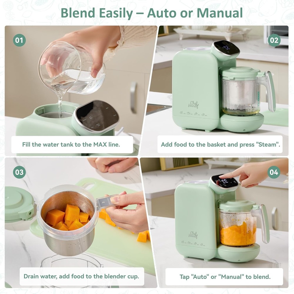 About this item 【Versatile Baby Food Maker with Auto & Manual Blending】Effortlessly prepare homemade baby food with this baby food steamer and blender, featuring automatic and manual blending modes for customized textures. The detachable stainless steel blade ensures smooth results and easy cleaning. 【Safe & Durable Design with Stainless Steel Components】Built with a stainless steel steam basket and a food-grade stainless steel water tank, this baby food maker and steamer ensures even heating while preserving nutrients. Designed for long-term performance and safety. 【5-in-1 Functionality for Complete Baby Meal Preparation】This multifunctional baby food processor combines steaming, blending, steri-lizing, and bottle warming, making it an all-in-one solution for busy parents. The BPA-fre-e 300ML blending cup ensures safe and healthy meal preparation. 【Smart Safety Alerts & User-Friendly Operation】Equipped with an E1 safety warning and low water reminder, this baby food steamer and blender ensures a safe and seamless experience. The intuitive controls make it easy to prepare fresh, nutritious meals for your little one. 【Designed for Convenience with Extra Accessories】This baby food maker with steam and blend includes six baby food pouches and replacement accessories for easy storage and feeding. Built to Last with High-Quality Materials for Long-Term Use. On Nov 11, 2025 at 21:52:18 PST, seller added the following information: