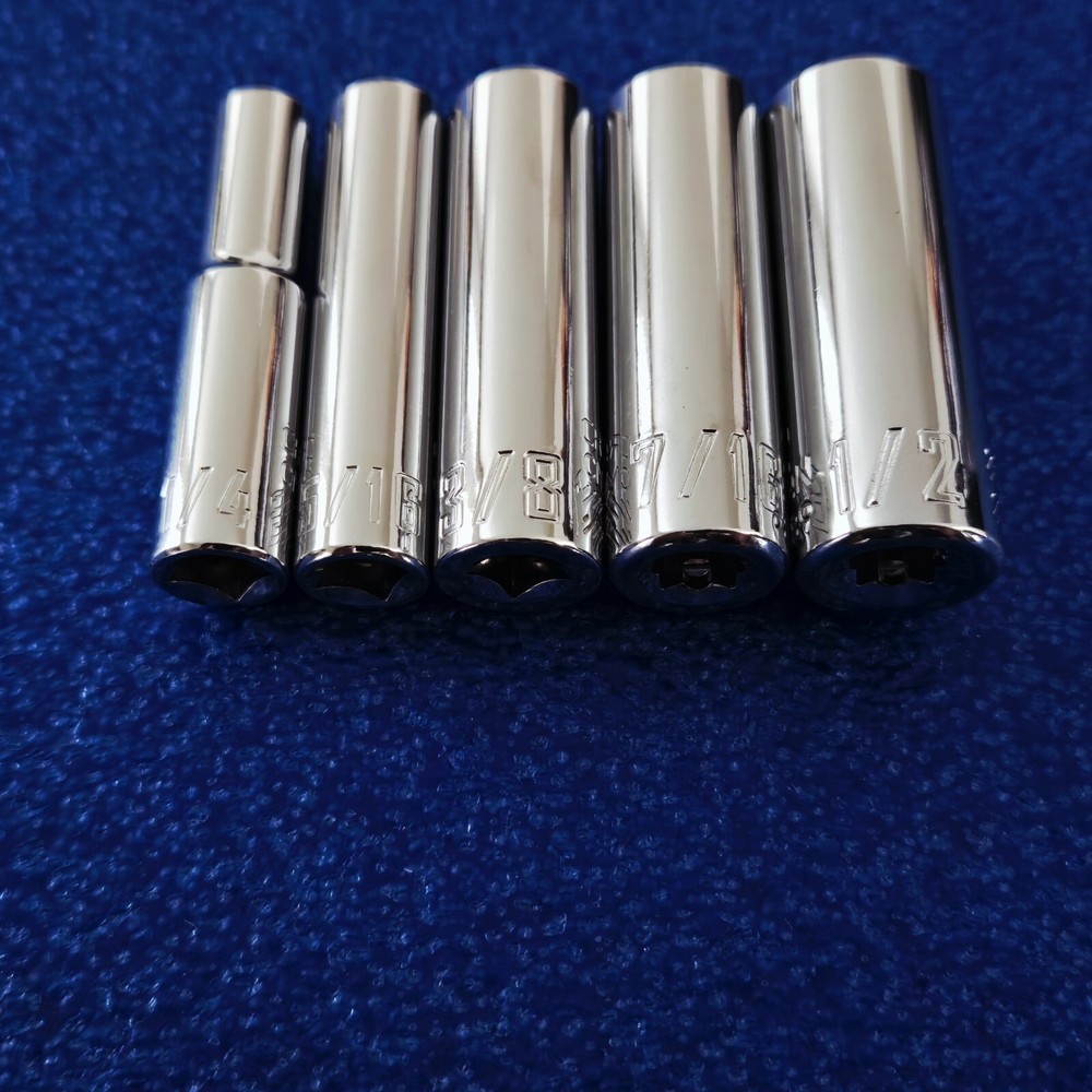 - YOU GET ALL 5 BRAND NEW CRAFTSMAN 1/4" DRIVE DEEP 6 POINT SOCKETS - SHIPS WITHOUT ORIGINAL PACKAGING SIZES: 1/4" 5/16" 3/8" 7/16" 1/2"