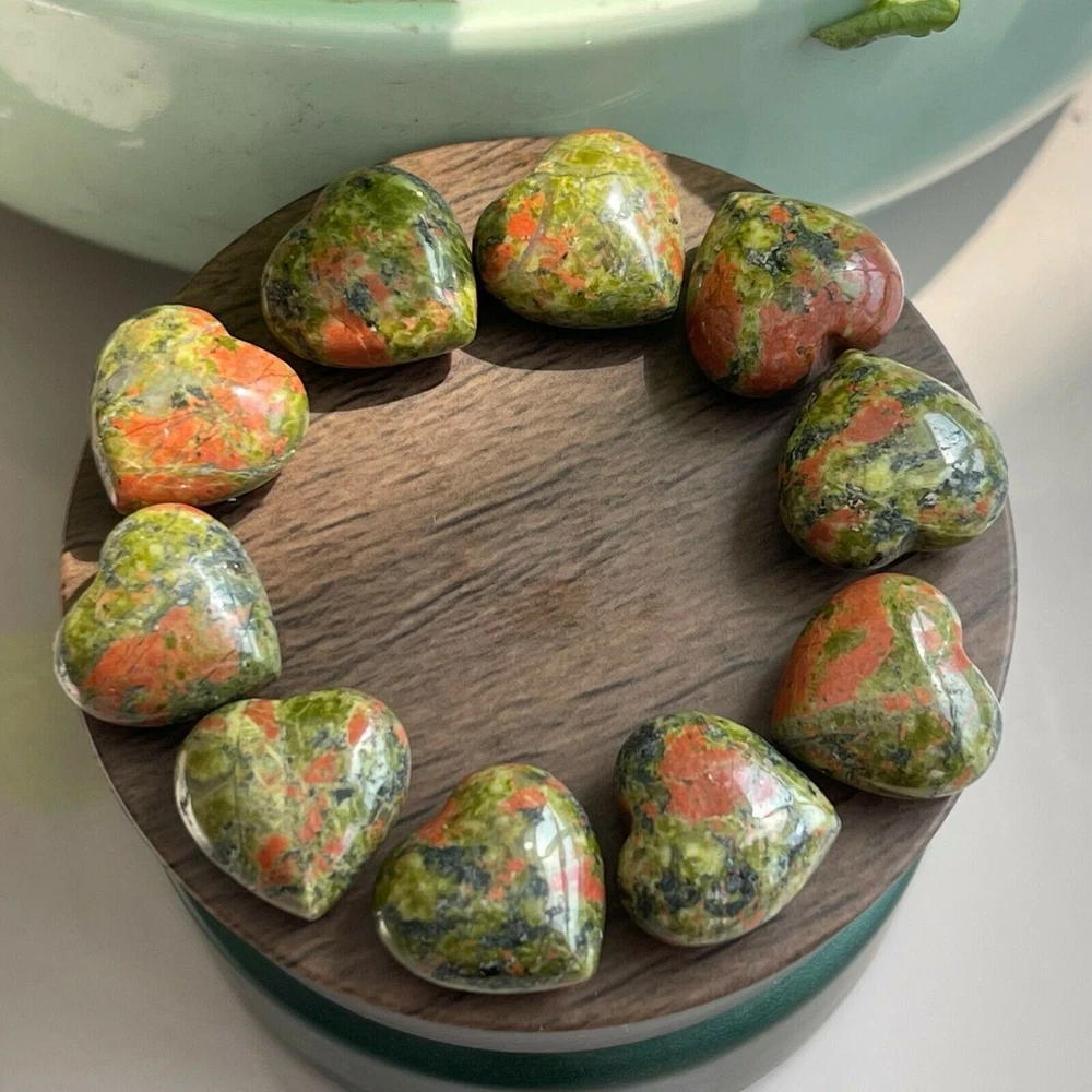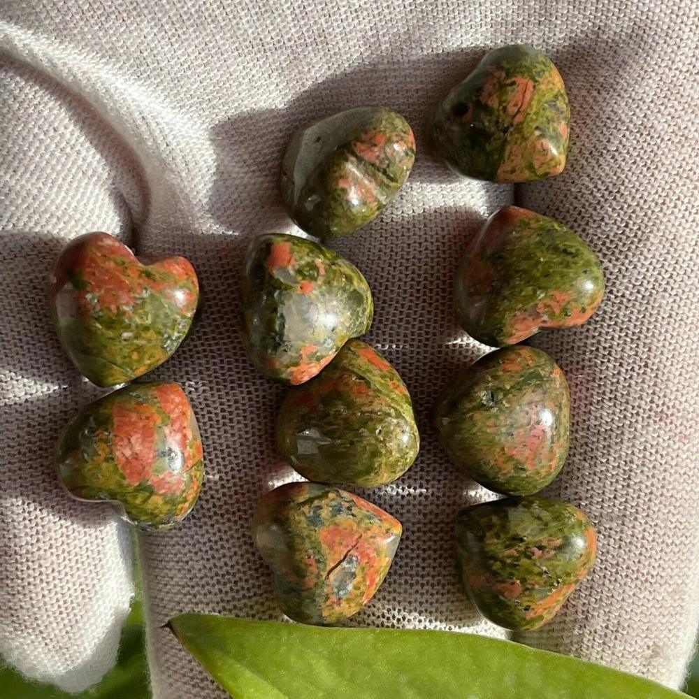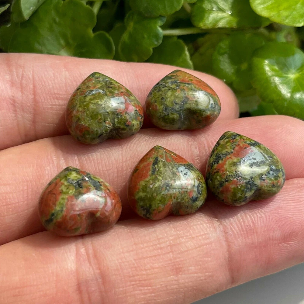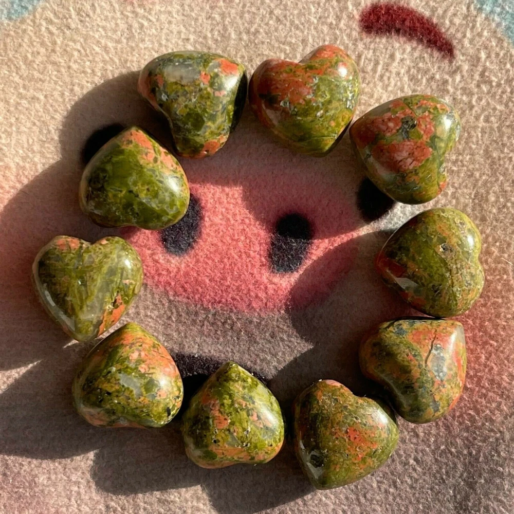 5pc Natural unakite quartz Mini loving heart crystal carved gem reiki healing^