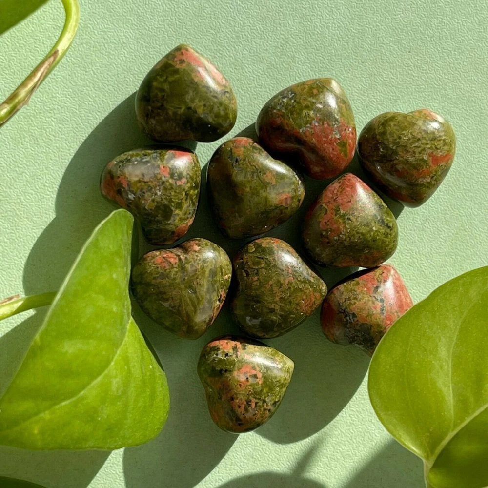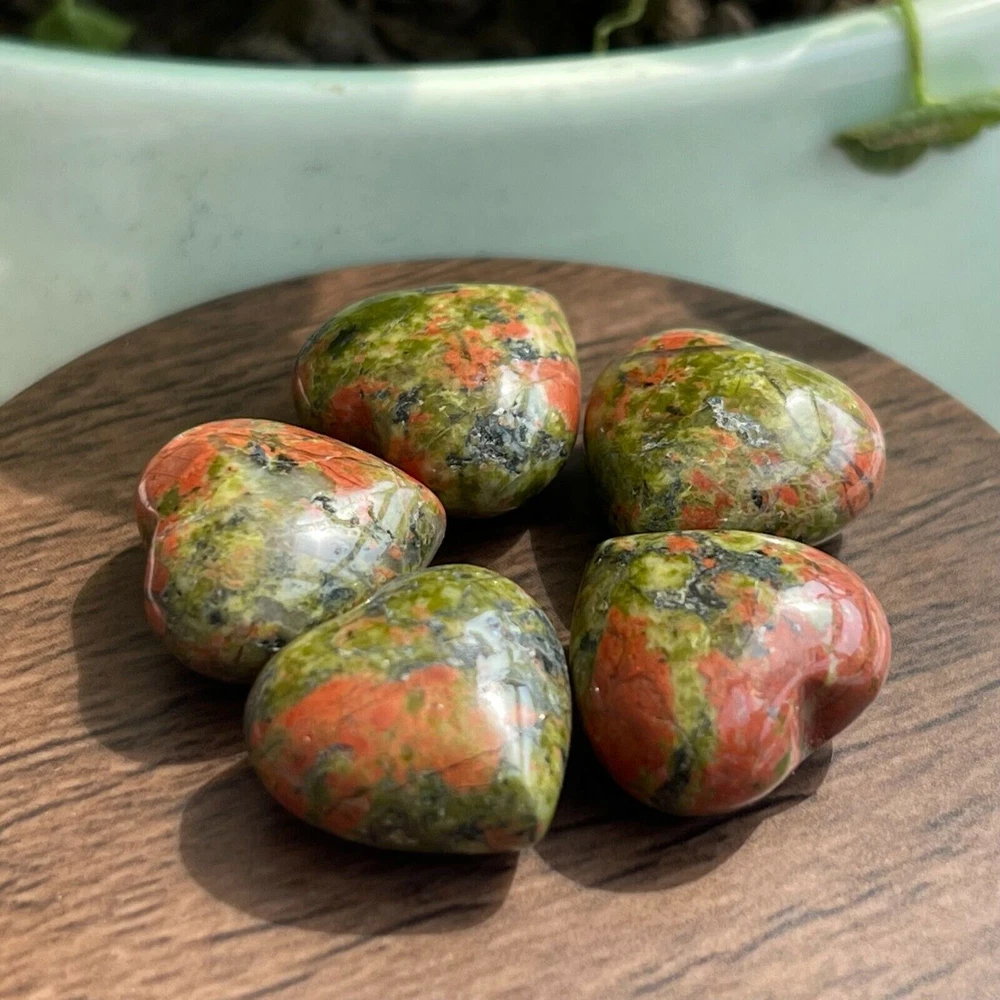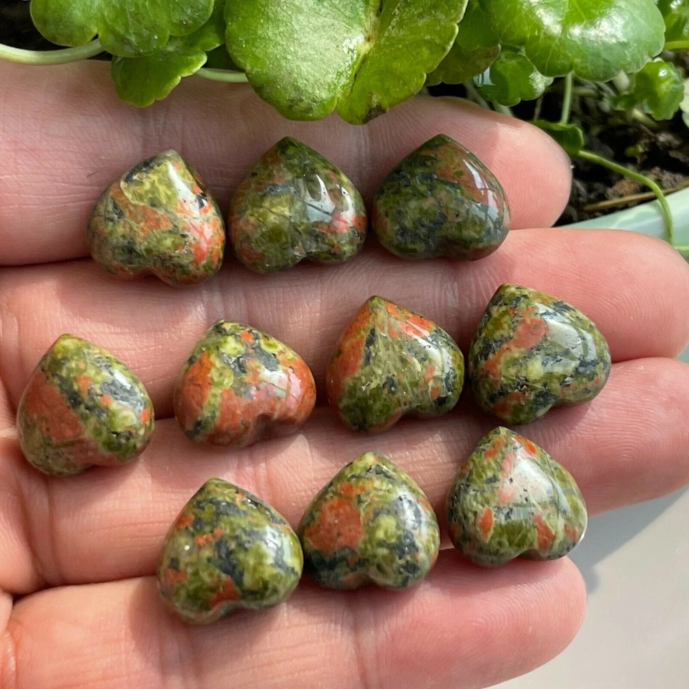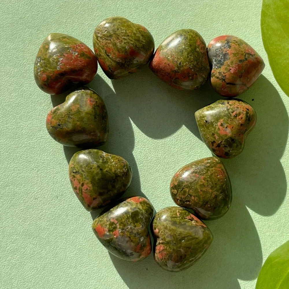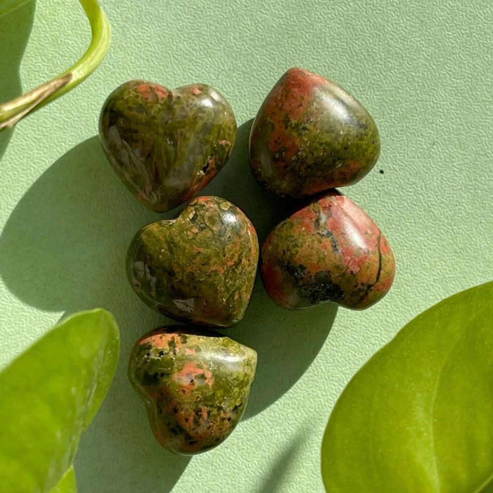 5pc Natural unakite quartz Mini loving heart crystal carved gem reiki healing^