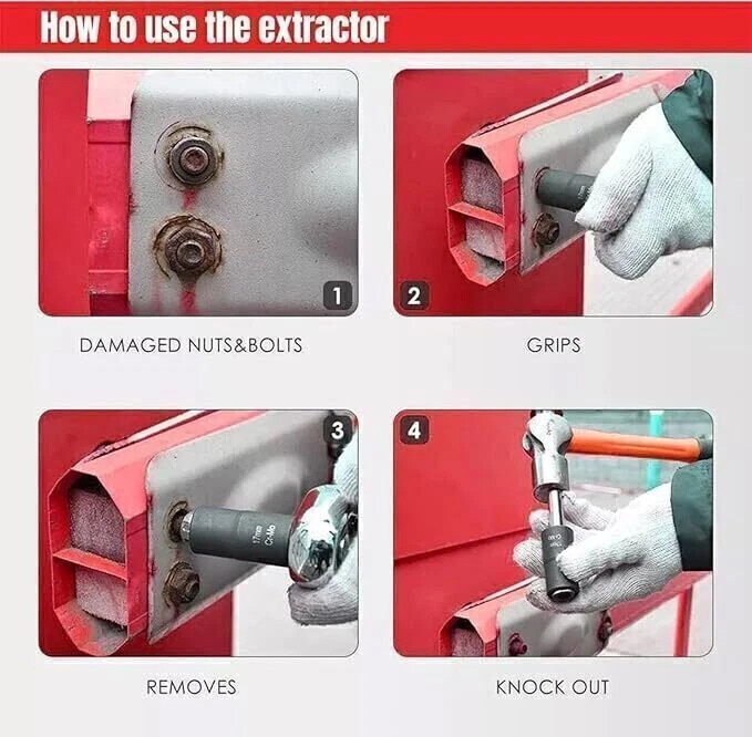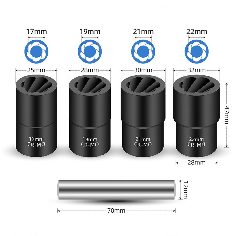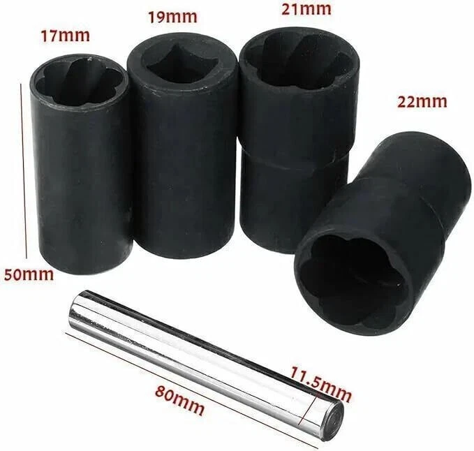 Features: Efficient Extraction Versatile Compatibility Innovative Design Construction Comprehensive Application Specifications: *Product Name:Nut Removal Extractor Socket Tool *Material:steel *Size:17mm, 19mm, 21mm, and 22mm *Color:black *For 1/2inch driver adapter Package Content: 5pcs/set Nut Removal Extractor Socket Tool Note: 1. The real color of the item may be slightly different from the pictures shown on website caused by many factors such as brightness of your monitor and light brightness. 2. Please allow slight manual measurement deviation for the data. 5pc Wheel Lock Removal Kit, Locking Lug Nut Removal Tool - 17MM,19MM, 21MM, 22MM Features: *Efficient Extraction: This 5-piece nut remover set is designed for effective removal of damaged, stripped, rusted, or stuck fasteners, allowing you to unscrew stubborn bolts with ease. *Versatile Compatibility: The extractor tools can be used with a 1/2inch square drive wrench, ratchet, or breaker bar, ensures quick and efficient work with various tools at hand. *Innovative Design: Featuring a 6-point spiral socket design, these extractors provide a secure grip on rounded-off fasteners, enhancing your ability to extract them without slipping. *Construction: Crafted from 42CrMo ultra-high strength steel, these sockets offer exceptional toughness and hardenability, making them robust and long-lasting for repeated use. *Comprehensive Application: Suitable for hex heads sized 17mm, 19mm, 21mm, and 22mm, this set includes a unique punch tool for extracting damaged fasteners, making it good for automotive and mechanical applications. Specifications: *Product Name:Nut Removal Extractor Socket Tool *Material:steel *Size:17mm, 19mm, 21mm, and 22mm *Color:black *For 1/2inch driver adapter Package Content: 5pcs/set Nut Removal Extractor Socket Tool Note: 1. The real color of the item may be slightly different from the pictures shown on website caused by many factors such as brightness of your monitor and light brightness. 2. Please allow slight manual measurement deviation for the data. Payment Shipping Return Contact us About us Payment 1.Paypal, Credit Card, G Pay etc, many payment way is accepted. 2.Please be sure your shipping address is correct before make a payment. Shipping 1.We are shipping from multiple warehouses (Houston, Texas/ Corona, California) , please note before placing an order 2.We will ship out the item within 1-3 business days after comfirming the payment, appreciate your patience. 3.If the items are broken on the way( we will check the orders clearly before we sent them ),please contact us in 3 days you received it. We will send you a new one or refund your payment. Return 1.We stand behind every buyer.Items can be returned for exchange or refund within 30 days. 2.Please contact us when you have any confusion of our item, we will solve the trouble for you as soon as possible. Contact us 1.This is professional Seller.We will reply your message within 24 hours. 2.Please contact us whenever you have any question about the item. We will deal with it as soon as possible. 3. If you are unhappy with the item or our service,please Contact Us before leave feedback,just give me a chance,thank you! About us 1. Unless specified otherwise, all our products are IN STOCK and are shipped from Local warehouse - Not Overseas! 2. We provide a 30 day Satisfaction Guarantee or your money back (provided items are in the same new and resaleable condition.) 3. We have a PayPal Verified Business Account, please buy with Confidence! 4. Every item will be tesrted before send.We know our products well and if we don't have the answers we will do our best to find them for you! 5. Our friendly team look forward to serving you! Your satisfaction is our No.1 Priority We will do our best to satisfacy you.