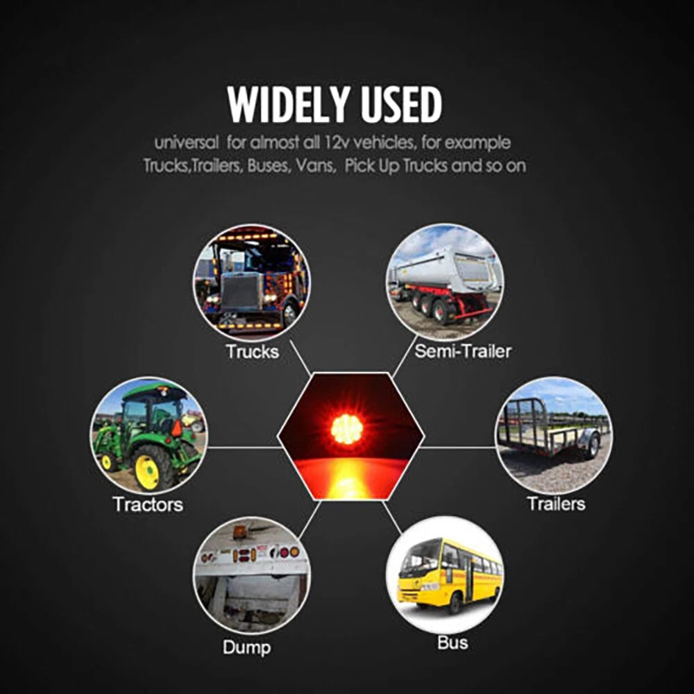 Store Categories Store Categories Lights Projector Lights License Plate Lights Interior Lights Warning Lights Others Sun Shades Organizers Gear Shift Steering Wheels Seats Tools Stickers Decors Other 5pcs 2" Inch DOT Red Round Trailer 9 LED Marker Lights w/ Grommet for Truck RV Features: Depending on the size of your vehicle, federal regulations mandate the use of both reflectors and side marker lights. Luckily, the red 2" clearance light allows you to satisfy both requirements. The 2" clearance light comes with 9 high powered LEDS as well as polycarbonate reflectors that reflect direct light to make your tractor or trailer more visible and the road safer for everyone. This clearance light is also IP67 rated , meaning that it can not only handle water, but is also submersible as well. Ultra-Bright 9 LEDS and Easy Installation The clearance light comes with a rubber grommet so you never need to mess around with screws. Simply use a preexisting hole, or cut out a new one for the grommet. Reverse polarity protection helps protect your clearance light from damage in the event that you miswire your light. HIGH QUALITY COMPONENTS - Each 2.8" round LED clearance light uses high quality components, and is reverse polarity protected, meaning that plugging it in the wrong way will not damage the unit itself. Specification: 180° Viewing Angle 9 High Powered LEDs Reflective Polycarbonate Design Rubber Grommet Package content: 5 x 2" Round 9 LED Clearance Side Marker Light - RED 5 x 2.8" Round Black Grommet 5 x 2-Pin 90° Plugs connector Specifications: Voltage: 10-26V DC Connector Type: Pigtail, Lens Cover Color: Red Lens Cover Material: Plastic Mounting Type: Flush-Mount, Mounting Hardware: Grommet, Housing Material: Plastic, (rubber grommet) 5 Year Warranty Application: Universally fit any vehicles with DC 12V-24V Such as Semi Truck & Trailer, Service Truck, Bus, Service Van, Utility Truck, Parade Float, Horse Trailer, Utility Trailer, Pick Up Truck, UTE, UTV. Payment We can accept payment of Paypal only. Payment should be made within 7 days after purchasing. (No payment orders eBay system will automatically open unpaid dispute, and this is not good to your account.) Shipping Item will be shipped out within 48 hours upon receipt of your cleared payment. We can not ship on Sundays and other public holidays. International Buyers Please Note: 1, Import duties, taxes and charges are not included in the item price or shipping charges. These charges are the buyer's responsibility. 2, Please check with your countrys customs office to determine what these additional costs will be prior to bidding/buying. Please make sure your address in paypal is correct. we will only follow your address listed in the Paypal payment for the shipment. Combine shipment is not allowed. If you want to combine all the items together, you should still pay for all of the shipping, insurance and handling fee! Returns We offer you 30 days return. The buyer is responsible for return shipping including a result of customer error or wrong item bought: 1) If you received an incorrect, damaged, defective, or item not as described, contact us for a partial/full refund or replacement on our cost. 2) If you want to return the item, please contact us within 60 days after package received. Return products must also be in its original condition: including box, packaging and all other accessories. Feedback 1.We are appreciated your business and to improve our customer service and our commitment to quality. 2.We will leave a positive feedback immediately after payment is received. We appreciate a positive feedback as much as you do. 3.If for some reason there is any issue with the purchase, please contact us prior to leaving feedback, and we will be glad to work with you to have it resolved. Contact Us We do appreciate your purchase from our store. If you are satisfied with the item as well as our service, please kindly leave us a Positive Feedback to help develop our business. Thank you in advance. Our office hours are MONDAY - FRIDAY 9:00PM - 18:00PM PST , we do not answer any E-mails or eBay messages on weekend. All E-mail or eBay message take us around 24 hours to respond. Thanks a lot. Store Categories Store Categories Car Sunshade Organizers Gear Shift Steering Wheels Seats Tools Stickers For BENZ For BMW Car Door Lights License Plate Light Other 5pcs 2" Inch DOT Red Round Trailer 9 LED Marker Lights w/ Grommet for Truck RV Features: Depending on the size of your vehicle, federal regulations mandate the use of both reflectors and side marker lights. Luckily, the red 2" clearance light allows you to satisfy both requirements. The 2" clearance light comes with 9 high powered LEDS as well as polycarbonate reflectors that reflect direct light to make your tractor or trailer more visible and the road safer for everyone. This clearance light is also IP67 rated , meaning that it can not only handle water, but is also submersible as well. Ultra-Bright 9 LEDS and Easy Installation The clearance light comes with a rubber grommet so you never need to mess around with screws. Simply use a preexisting hole, or cut out a new one for the grommet. Reverse polarity protection helps protect your clearance light from damage in the event that you miswire your light. HIGH QUALITY COMPONENTS - Each 2.8" round LED clearance light uses high quality components, and is reverse polarity protected, meaning that plugging it in the wrong way will not damage the unit itself. Specification: 180° Viewing Angle 9 High Powered LEDs Reflective Polycarbonate Design Rubber Grommet Package content: 5 x 2" Round 9 LED Clearance Side Marker Light - RED 5 x 2.8" Round Black Grommet 5 x 2-Pin 90° Plugs connector Specifications: Voltage: 10-26V DC Connector Type: Pigtail, Lens Cover Color: Red Lens Cover Material: Plastic Mounting Type: Flush-Mount, Mounting Hardware: Grommet, Housing Material: Plastic, (rubber grommet) 5 Year Warranty Application: Universally fit any vehicles 