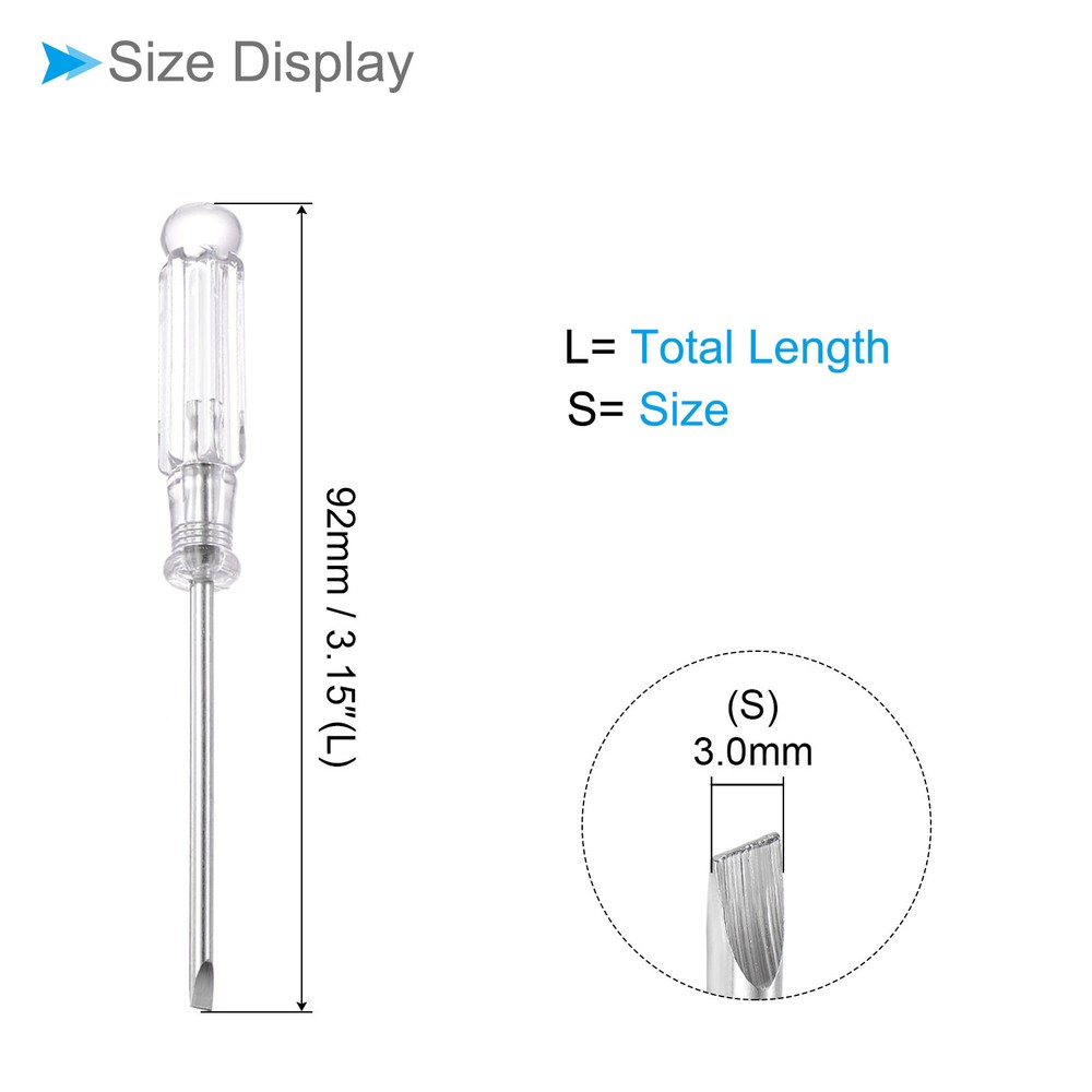 Document Attributes:* Size: 3.0mm* Total Length: 92mm / 3.15-inch* Shaft Material: Carbon SteelWhat Is Included:* 5 Pieces x Micro ScrewdriversApplications & Features:--- This screwdriver is a multifunctional tool suitable for a variety of electronic devices and appliances and can be used on laptops, computers, game consoles, pocket knives, doorbells, dishwashers, routers, and more.--- The screwdriver features a comfortable handle that provides a secure grip and reduces tired during prolonged use--- The screwdriver is made from carbon steel material ensuring strength, durability and rust resistance for long-lasting performance.Useful Tips:--- Please confirm the screwdriver size before buying. 5pcsSmall Slotted Screwdriver 3.0mm 92mm Flat Screwdriver W Anti-slip Handle Attributes: * Size: 3.0mm * Total Length: 92mm / 3.15-inch * Shaft Material: Carbon Steel What Is Included: * 5 Pieces x Micro Screwdrivers Applications & Features: --- This screwdriver is a multifunctional tool suitable for a variety of electronic devices and appliances and can be used on laptops, computers, game consoles, pocket knives, doorbells, dishwashers, routers, and more. --- The screwdriver features a comfortable handle that provides a secure grip and reduces tired during prolonged use --- The screwdriver is made from carbon steel material ensuring strength, durability and rust resistance for long-lasting performance. Useful Tips: --- Please confirm the screwdriver size before buying. Hot Item Payment 1.We accept eBay payment . 2.Payment must be received within 7 business days of auction closing. Shipping 1.We ship to your eBay or Paypal address. Please make sure your eBay and Paypal address is correct before you pay. 2.Items will be shipped within 1-3 business day when we received payment. 3.Delivery time depends on destination and other factors. Description Policy 5pcsSmall Slotted Screwdriver 3.0mm 92mm Flat Screwdriver W Anti-slip Handle Attributes: * Size: 3.0mm * Total Length: 92mm / 3.15-inch * Shaft Material: Carbon Steel What Is Included: * 5 Pieces x Micro Screwdrivers Applications & Features: --- This screwdriver is a multifunctional tool suitable for a variety of electronic devices and appliances and can be used on laptops, computers, game consoles, pocket knives, doorbells, dishwashers, routers, and more. --- The screwdriver features a comfortable handle that provides a secure grip and reduces tired during prolonged use --- The screwdriver is made from carbon steel material ensuring strength, durability and rust resistance for long-lasting performance. Useful Tips: --- Please confirm the screwdriver size before buying. Hot Item Payment 1.We accept eBay payment . 2.Payment must be received within 7 business days of auction closing. Shipping 1.We ship to your eBay or Paypal address. Please make sure your eBay and Paypal address is correct before you pay. 2.Items will be shipped within 1-3 business day when we received payment. 3.Delivery time depends on destination and other factors.