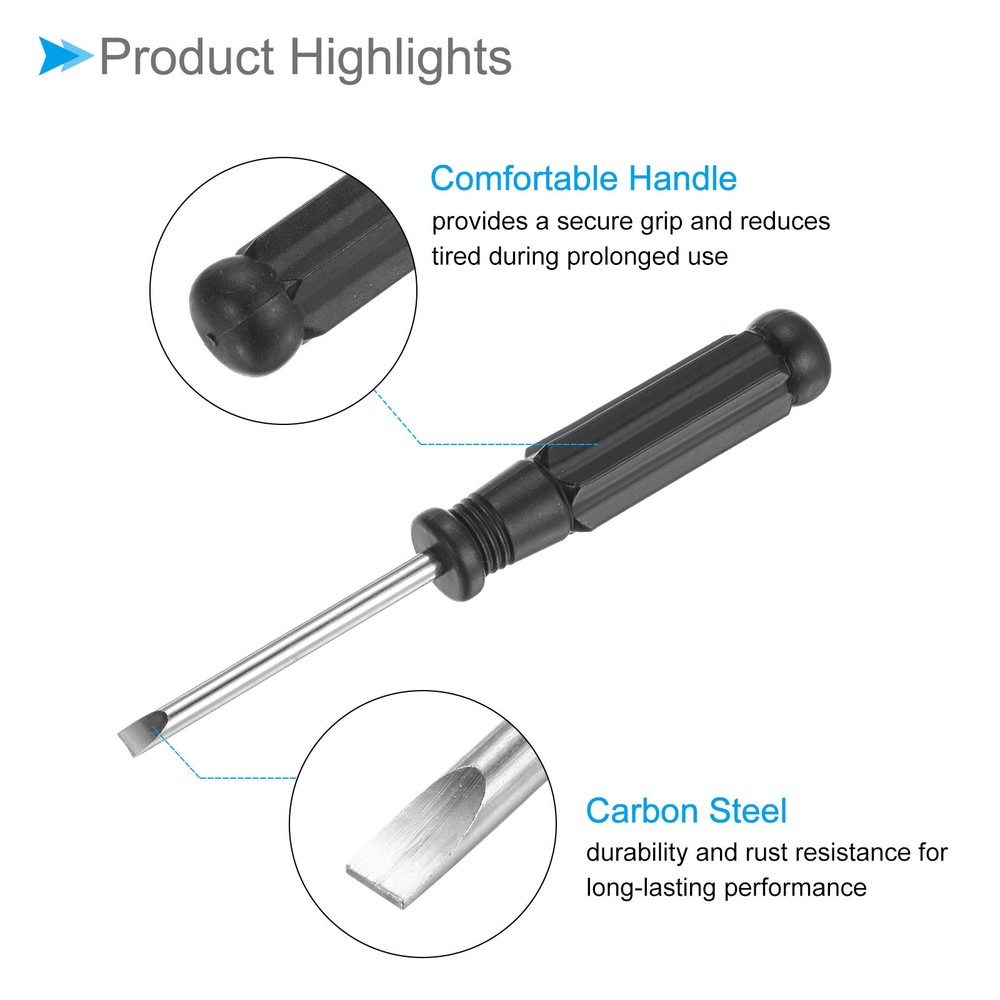 Document Attributes:* Size: 4.0mm* Total Length: 108mm / 3.15-inch* Shaft Material: Carbon SteelWhat Is Included:* 5 Pieces x Micro ScrewdriversApplications & Features:--- This screwdriver is a multifunctional tool suitable for a variety of electronic devices and appliances and can be used on laptops, computers, game consoles, pocket knives, doorbells, dishwashers, routers, and more.--- The screwdriver features a comfortable handle that provides a secure grip and reduces tired during prolonged use--- The screwdriver is made from carbon steel material ensuring strength, durability and rust resistance for long-lasting performance.Useful Tips:--- Please confirm the screwdriver size before buying. 5pcsSmall Slotted Screwdriver 4.0mm 108mm Flat Screwdriver W Black Handle Attributes: * Size: 4.0mm * Total Length: 108mm / 3.15-inch * Shaft Material: Carbon Steel What Is Included: * 5 Pieces x Micro Screwdrivers Applications & Features: --- This screwdriver is a multifunctional tool suitable for a variety of electronic devices and appliances and can be used on laptops, computers, game consoles, pocket knives, doorbells, dishwashers, routers, and more. --- The screwdriver features a comfortable handle that provides a secure grip and reduces tired during prolonged use --- The screwdriver is made from carbon steel material ensuring strength, durability and rust resistance for long-lasting performance. Useful Tips: --- Please confirm the screwdriver size before buying. Hot Item Payment 1.We accept eBay payment . 2.Payment must be received within 7 business days of auction closing. Shipping 1.We ship to your eBay or Paypal address. Please make sure your eBay and Paypal address is correct before you pay. 2.Items will be shipped within 1-3 business day when we received payment. 3.Delivery time depends on destination and other factors. Description Policy 5pcsSmall Slotted Screwdriver 4.0mm 108mm Flat Screwdriver W Black Handle Attributes: * Size: 4.0mm * Total Length: 108mm / 3.15-inch * Shaft Material: Carbon Steel What Is Included: * 5 Pieces x Micro Screwdrivers Applications & Features: --- This screwdriver is a multifunctional tool suitable for a variety of electronic devices and appliances and can be used on laptops, computers, game consoles, pocket knives, doorbells, dishwashers, routers, and more. --- The screwdriver features a comfortable handle that provides a secure grip and reduces tired during prolonged use --- The screwdriver is made from carbon steel material ensuring strength, durability and rust resistance for long-lasting performance. Useful Tips: --- Please confirm the screwdriver size before buying. Hot Item Payment 1.We accept eBay payment . 2.Payment must be received within 7 business days of auction closing. Shipping 1.We ship to your eBay or Paypal address. Please make sure your eBay and Paypal address is correct before you pay. 2.Items will be shipped within 1-3 business day when we received payment. 3.Delivery time depends on destination and other factors.