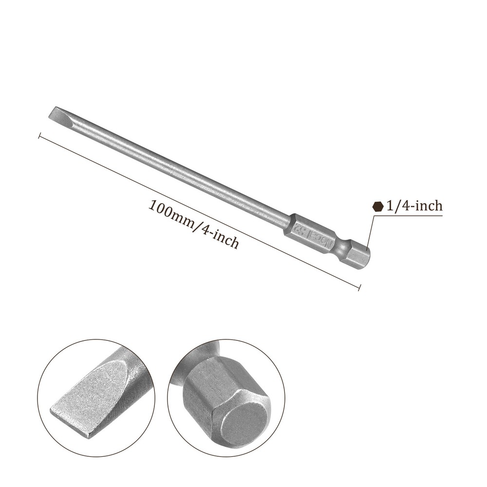 Document APPLICATION- Fit for electric screwdriver, manual screwdriver, power drill and other pneumatic or power tools with 1/4" hex holder. Widely used in cars, trucks, engines, motorcycles, computers, cable boxes and other applications.ABOUT THIS PRODUCT- Made of S2 alloy steel, which is a commonly used material in hardware with high hardness.- Sandblasting surface, corrosion resistance and durability.- Magnetic tip, can suck the screws easily when used it.- Exquisite workmanship, each edge can be accurately locked screws, no damage to the screw, and the screwdriver head.SPECIFICATIONBit Type: T15 Shank: 1/4“ Hex ShankLength: 100mm / 4”Material: S2 Alloy SteelFinish: SandblastingPackage: 5 packs of Flat Head Screwdriver BitTAKE NOTICE OF- Do not turn the screws with mismatched size to avoid damage to both the screw and the drill. 5pcs Slotted Screwdriver Bit - [4 Inch x H1/4 x SL4] Magnetic for Power Tool Use APPLICATION - Fit for electric screwdriver, manual screwdriver, power drill and other pneumatic or power tools with 1/4" hex holder. Widely used in cars, trucks, engines, motorcycles, computers, cable boxes and other applications. ABOUT THIS PRODUCT - Made of S2 alloy steel, which is a commonly used material in hardware with high hardness. - Sandblasting surface, corrosion resistance and durability. - Magnetic tip, can suck the screws easily when used it. - Exquisite workmanship, each edge can be accurately locked screws, no damage to the screw, and the screwdriver head. SPECIFICATION Bit Type: T15 Shank: 1/4“ Hex Shank Length: 100mm / 4” Material: S2 Alloy Steel Finish: Sandblasting Package: 5 packs of Flat Head Screwdriver Bit TAKE NOTICE OF - Do not turn the screws with mismatched size to avoid damage to both the screw and the drill. Hot Item Payment 1.We accept eBay payment . 2.Payment must be received within 7 business days of auction closing. Shipping 1.We ship to your eBay or Paypal address. Please make sure your eBay and Paypal address is correct before you pay. 2.Items will be shipped within 1-3 business day when we received payment. 3.Delivery time depends on destination and other factors. Description Policy 5pcs Slotted Screwdriver Bit - [4 Inch x H1/4 x SL4] Magnetic for Power Tool Use APPLICATION - Fit for electric screwdriver, manual screwdriver, power drill and other pneumatic or power tools with 1/4" hex holder. Widely used in cars, trucks, engines, motorcycles, computers, cable boxes and other applications. ABOUT THIS PRODUCT - Made of S2 alloy steel, which is a commonly used material in hardware with high hardness. - Sandblasting surface, corrosion resistance and durability. - Magnetic tip, can suck the screws easily when used it. - Exquisite workmanship, each edge can be accurately locked screws, no damage to the screw, and the screwdriver head. SPECIFICATION Bit Type: T15 Shank: 1/4“ Hex Shank Length: 100mm / 4” Material: S2 Alloy Steel Finish: Sandblasting Package: 5 packs of Flat Head Screwdriver Bit TAKE NOTICE OF - Do not turn the screws with mismatched size to avoid damage to both the screw and the drill. Hot Item Payment 1.We accept eBay payment . 2.Payment must be received within 7 business days of auction closing. Shipping 1.We ship to your eBay or Paypal address. Please make sure your eBay and Paypal address is correct before you pay. 2.Items will be shipped within 1-3 business day when we received payment. 3.Delivery time depends on destination and other factors.