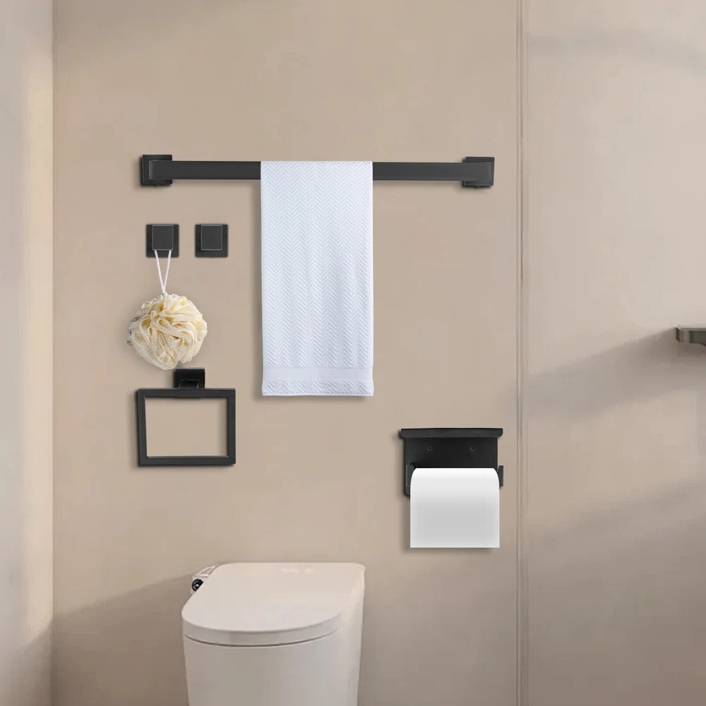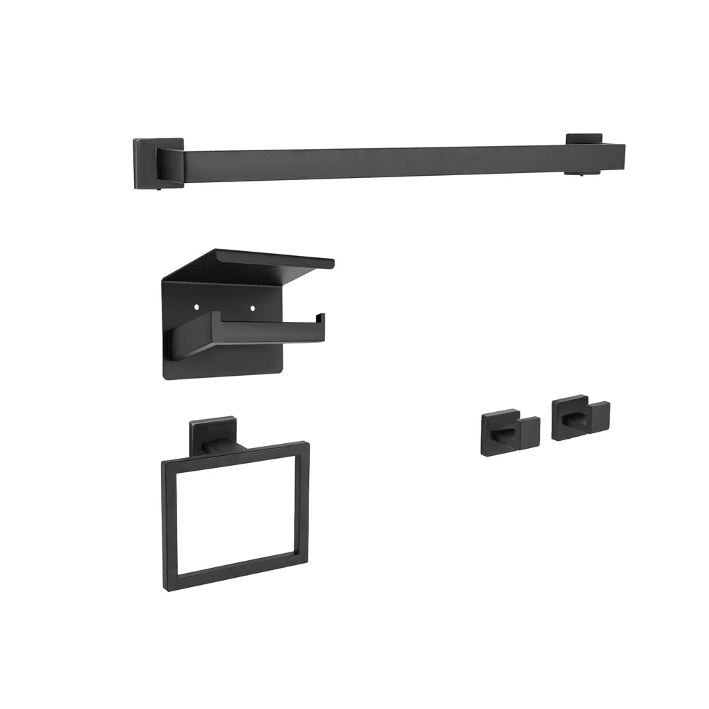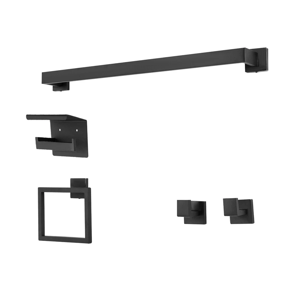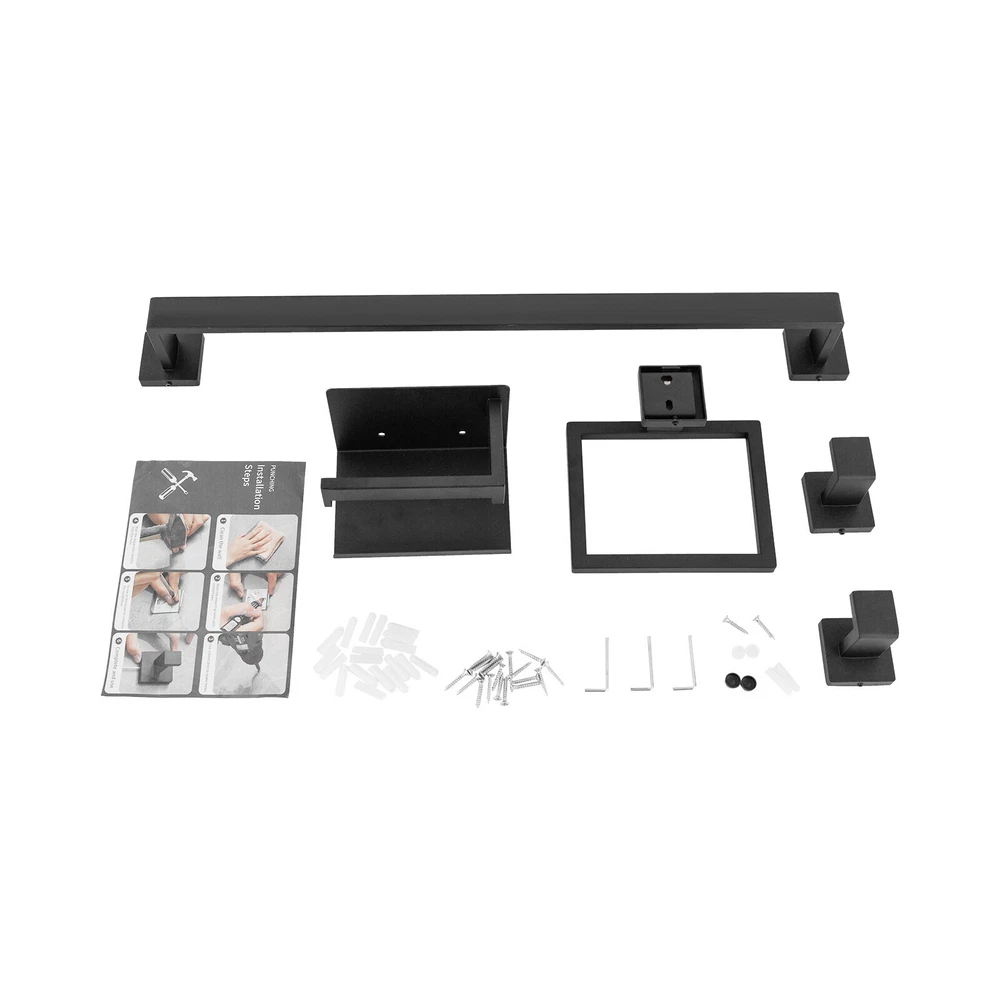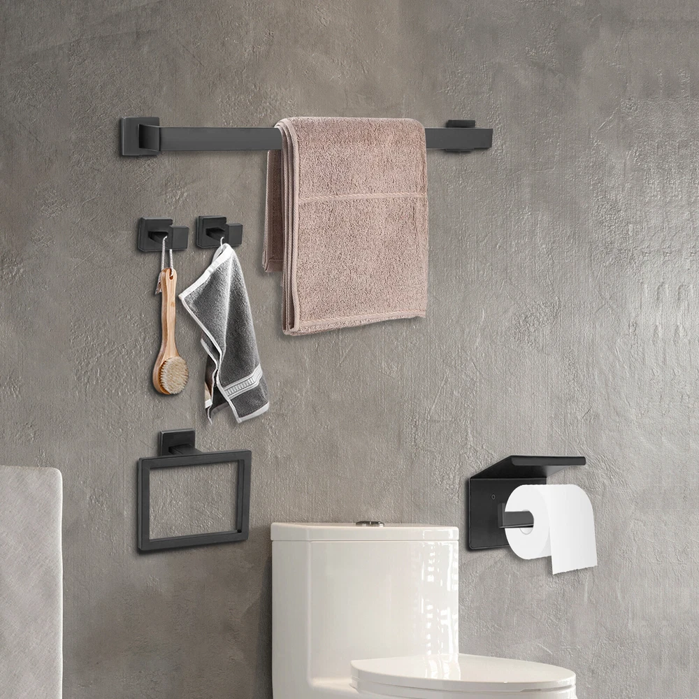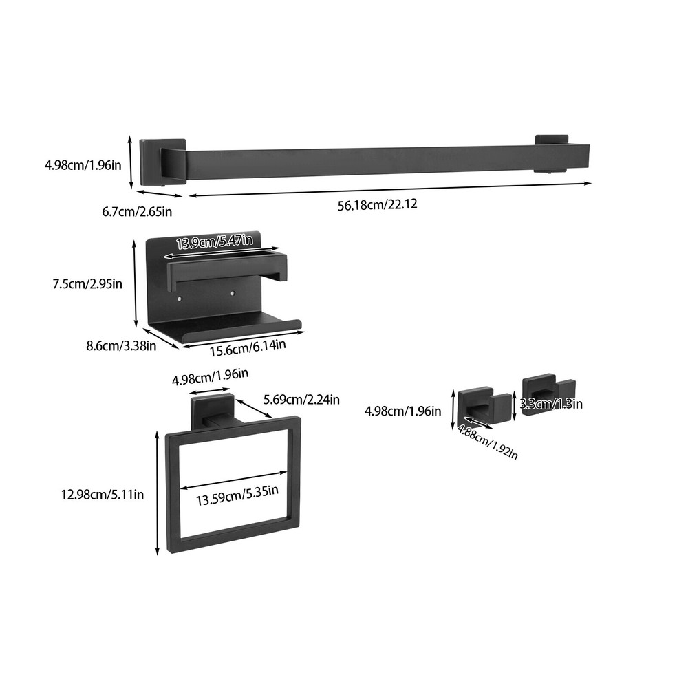 5pcs Bathroom Hardware Accessories Set Towel Bar Set Stainless Steel Black New Description Our bathroom towel bar set is made of high-quality 201 stainless steel for durability. The product is a five-piece set, which can help you store towels, toilet paper, and other items in the bathroom and fully meet your needs. The simple structure and modern appearance can blend with most home decor styles and add a splash of color to your bathroom decor. It will become your ideal choice. Key Features Made to Last: This product is made of high-quality 201 stainless steel by a paint spraying process, strong and wear-resistant , not easy to corrode and rust, and can be used for a long time without frequent replacement. Complete Set: This set includes 5 pieces of racks, including a towel bar, towel ring, two hooks, and a toilet paper holder with a shelf, which can fully meet your different needs. You don't need to buy them separately, saving your cost and effort. Modern Appearance: The black exterior, simple geometric style, and smooth lines add a touch of modern design to your bathroom and can be better integrated into contemporary home decor. Simple Installation: Simple construction, complete accessories, and a detailed installation diagram allow you to quickly install and experience the joy of installation. Excellent Function: They can be used not only to hang towels and paper but also to hang clothes and organize toiletries, which is functional and space-saving. Effortless Cleaning: It has a smooth surface and a simple structure, so you only need to wipe the dust or residue with a towel. Ideal Gift: With good performance and a modern appearance, it can be used as an ideal housewarming gift for parents, friends, and lovers so that they can also enjoy a more convenient life. Protective Package: To prevent the product from being damaged during transportation, we packed it with a sponge to protect your products to the maximum extent possible. Good Customer Service: We aim to provide quality products and services. If you have problems, please feel free to contact us. We will reply and solve the problem for you as soon as possible. Details Rounded Corners: They prevent you from scratching your hands and skin during installation and use. Pre-drilled Holes: They can facilitate the installation of your product, saving time and effort. Application This product is suitable for the bathroom, kitchen, bedroom, and laundry room. The bathroom towel bar can be used to hang towels and clothes; the hooks can be used to hang bath balls, combs, bathing suits, keys, pants, kitchen utensils, and more. How to Install Clean the wall. Mark the mounting holes with a colored pen (not included). Use a drill (not included) to make holes. Nail the expansion pellets into the holes. Screw on the screw to complete the installation. Specification Material: 201 Stainless Steel Color: Black Process: Paint Spraying Style: Modern Installation Required: Yes Number of Items: 5 Mounting Type: Wall Mount Towel Bar Length: 60cm/23.62in Package Size: 64*20.5*11cm/25.2*8.07*4.33in Gross Weight: 1.5kg/3.31lbs Net Weight: 1.2kg/2.65lbs Package Included 1* Towel Bar 1* Towel Ring 1* Toilet Paper Holder 2* Towel Hooks 1* English Installation Diagram Other Accessories for Assembly Notes Please install this product according to the diagram. Towels, rolls of paper, and other products shown in the pictures are not included in the packaging. Please allow the slight color difference caused by the shooting light and 1-3cm error due to manual measurement, and make sure you do not mind before ordering. Payment Delivery details Terms of sales About us Contact us Payment We accept ebay payment 。 Fees such as import duties, taxes are not included in the item price or shipping costs. These charges are the buyer's responsibility. Delivery details Shipping: 2-9 working days to: USA Terms of sales We maintain high standards of excellence and strive for hundred percent customer satisfaction. Feedback is very important to us. We hope that you contact us immediately before you give neutral or negative feedback, so that we can address your concerns. It is impossible to address issues if we do not know about them! About us Your satis faction is our ultimate goal. We work hard to earn your trust and future business. Our certified technicians have tested each item before shipping. The unit comes with 1 year limited warranty on all manufacturing defects. a) If you receive a defective item, you may return it or ask for a discount. Please contact us within 14 days after you receive the package. b) What you returned must be intact and in its original packaging as re? u. Customer is responsible for shipping costs of the returned item. c) We will cover the cost of shipping back t with the shipping rate indicated in the registration page. We will send you a new unit or refund the full payment you paid. Thank you. Contact us Business Hour Business Hour: Monday To Friday: 8:30 AM to 5:00 PM (Beijing China time) Due to time zones, our reply to your questions may not be immediately. But within above working time, we will reply your email within 24 hours. If it's non-workdays, please kindly be patient and wait till Monday. Please contact us with ebay message. Please feel free to contact us if you have any questions. Monday To Friday: 8:30 AM to 5:00 PM (Beijing China time) Due to time zones, our reply to your questions may not be immediately. But within above working time, we will reply your email within 24 hours. If it's non-workdays, please kindly be patient and wait till Monday. Please contact us with ebay message. Please feel free to contact us if you have any questions. Brand Unbranded Color Black Material 201 Stainless Steel Room Bathroom Set Includes N/A Type Accessory Set Department Adults Capacity N/A Product Line N/A Mounting Wall Mount Installation Wall Mount