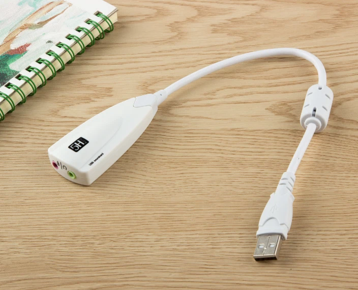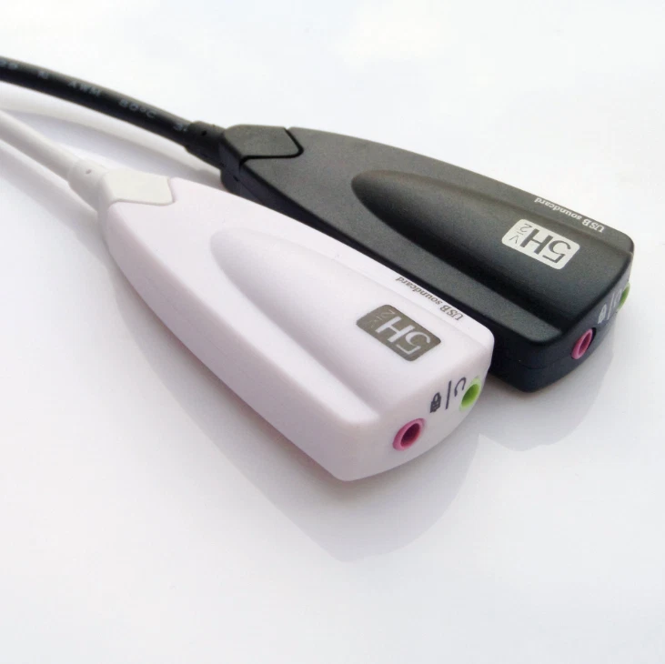 Product features: The product is equipped with 33cm data cable, which is easy to connect, use and place; The product has a built-in high-quality microphone, and there is no need to connect another microphone device; Ultra clear sound transmission within 5m to achieve perfect voice chat and sound recording; Compatible with pure digital sound output, virtual channel processing capability. Two compact LED lights show the working state of the sound card; Support ordinary audio or headphones, with microphone hole; USB interface, plug and play, replacing the traditional sound card; Microphone recording function; Karaoke function; Multi channel technology to realize dynamic sound effect of sound channel; Dynamic rotating sound field; Free switching between headset and speaker modes; Analog speaker position free adjustment function; Mixer function; Output level adjustment; 16 rhythm preset modes; 23 preset modes of sound field; Convert analog signals (microphone and line signals of CD, MP3, TV, tape recorder, etc.) into digital signal well storage function; Volume adjustment button to facilitate volume adjustment; Double mute switch key: microphone mute key and sound output mute key. Quantity: 5pcs