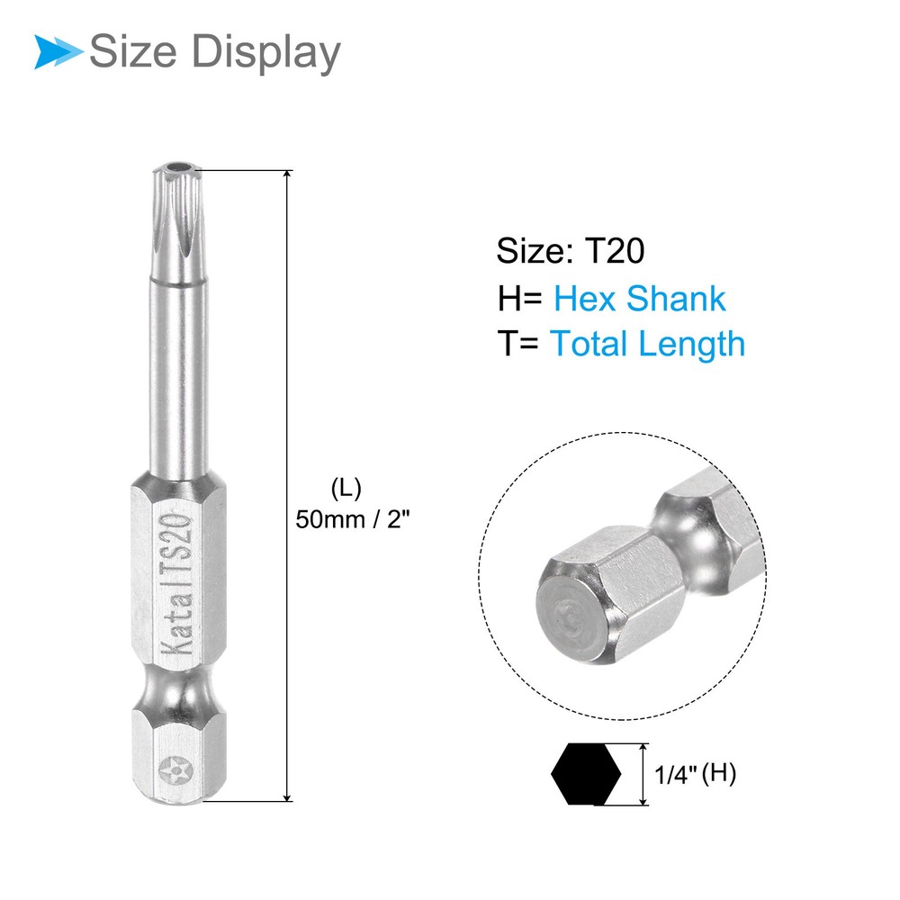 Document Attributes:* Material: S2 Alloy Steel* Size: T20* Hex Shank: 1/4"* Total Length: 50mm / 2"What Is Included:* 5 Pieces x Magnetic Security BitApplications & Features:--- Screwdriver bits set can be used in furniture installation, car maintenance, electronic factory, office installation, kitchen installation, etc.--- The magnetic bit tip can hold the screw securely before installation and after removing the screw to improve efficiency.--- Security bits are made of S2 alloy steel, with good toughness, the surface of the security torx bit set is nickel plating treatment for good anti-rust and wear-resistant and durability, and is suitable for industrial use.Useful Tips:--- Do not turn the screws with mismatched sizes to avoid damage to both the screw and the drill. 5pcs Magnetic Torx Bits T20 S2 Steel 5 Point Star Screwdriver Bits Attributes: * Material: S2 Alloy Steel * Size: T20 * Hex Shank: 1/4" * Total Length: 50mm / 2" What Is Included: * 5 Pieces x Magnetic Security Bit Applications & Features: --- Screwdriver bits set can be used in furniture installation, car maintenance, electronic factory, office installation, kitchen installation, etc. --- The magnetic bit tip can hold the screw securely before installation and after removing the screw to improve efficiency. --- Security bits are made of S2 alloy steel, with good toughness, the surface of the security torx bit set is nickel plating treatment for good anti-rust and wear-resistant and durability, and is suitable for industrial use. Useful Tips: --- Do not turn the screws with mismatched sizes to avoid damage to both the screw and the drill. Hot Item Payment 1.We accept eBay payment . 2.Payment must be received within 7 business days of auction closing. Shipping 1.We ship to your eBay or Paypal address. Please make sure your eBay and Paypal address is correct before you pay. 2.Items will be shipped within 1-3 business day when we received payment. 3.Delivery time depends on destination and other factors. Description Policy 5pcs Magnetic Torx Bits T20 S2 Steel 5 Point Star Screwdriver Bits Attributes: * Material: S2 Alloy Steel * Size: T20 * Hex Shank: 1/4" * Total Length: 50mm / 2" What Is Included: * 5 Pieces x Magnetic Security Bit Applications & Features: --- Screwdriver bits set can be used in furniture installation, car maintenance, electronic factory, office installation, kitchen installation, etc. --- The magnetic bit tip can hold the screw securely before installation and after removing the screw to improve efficiency. --- Security bits are made of S2 alloy steel, with good toughness, the surface of the security torx bit set is nickel plating treatment for good anti-rust and wear-resistant and durability, and is suitable for industrial use. Useful Tips: --- Do not turn the screws with mismatched sizes to avoid damage to both the screw and the drill. Hot Item Payment 1.We accept eBay payment . 2.Payment must be received within 7 business days of auction closing. Shipping 1.We ship to your eBay or Paypal address. Please make sure your eBay and Paypal address is correct before you pay. 2.Items will be shipped within 1-3 business day when we received payment. 3.Delivery time depends on destination and other factors.
