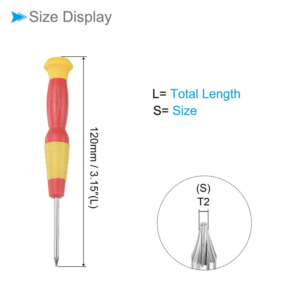 Document Attributes:* Size: T2* Total Length: 120mm / 3.15-inch* Shaft Material: Carbon SteelWhat Is Included:* 5 Pieces x Micro ScrewdriversApplications & Features:--- This screwdriver is a multifunctional tool suitable for a variety of electronic devices and appliances and can be used on laptops, computers, game consoles, pocket knives, doorbells, dishwashers, routers, and more.--- The screwdriver features a comfortable handle that provides a secure grip and reduces tired during prolonged use--- The screwdriver is made from carbon steel material ensuring strength, durability and rust resistance for long-lasting performance.Useful Tips:--- Please confirm the screwdriver size before buying. 5pcsSmall Torx Screwdriver T2 120mm 6 Point Screwdriver W Anti-slip Handle Attributes: * Size: T2 * Total Length: 120mm / 3.15-inch * Shaft Material: Carbon Steel What Is Included: * 5 Pieces x Micro Screwdrivers Applications & Features: --- This screwdriver is a multifunctional tool suitable for a variety of electronic devices and appliances and can be used on laptops, computers, game consoles, pocket knives, doorbells, dishwashers, routers, and more. --- The screwdriver features a comfortable handle that provides a secure grip and reduces tired during prolonged use --- The screwdriver is made from carbon steel material ensuring strength, durability and rust resistance for long-lasting performance. Useful Tips: --- Please confirm the screwdriver size before buying. Hot Item Payment 1.We accept eBay payment . 2.Payment must be received within 7 business days of auction closing. Shipping 1.We ship to your eBay or Paypal address. Please make sure your eBay and Paypal address is correct before you pay. 2.Items will be shipped within 1-3 business day when we received payment. 3.Delivery time depends on destination and other factors. Description Policy 5pcsSmall Torx Screwdriver T2 120mm 6 Point Screwdriver W Anti-slip Handle Attributes: * Size: T2 * Total Length: 120mm / 3.15-inch * Shaft Material: Carbon Steel What Is Included: * 5 Pieces x Micro Screwdrivers Applications & Features: --- This screwdriver is a multifunctional tool suitable for a variety of electronic devices and appliances and can be used on laptops, computers, game consoles, pocket knives, doorbells, dishwashers, routers, and more. --- The screwdriver features a comfortable handle that provides a secure grip and reduces tired during prolonged use --- The screwdriver is made from carbon steel material ensuring strength, durability and rust resistance for long-lasting performance. Useful Tips: --- Please confirm the screwdriver size before buying. Hot Item Payment 1.We accept eBay payment . 2.Payment must be received within 7 business days of auction closing. Shipping 1.We ship to your eBay or Paypal address. Please make sure your eBay and Paypal address is correct before you pay. 2.Items will be shipped within 1-3 business day when we received payment. 3.Delivery time depends on destination and other factors.