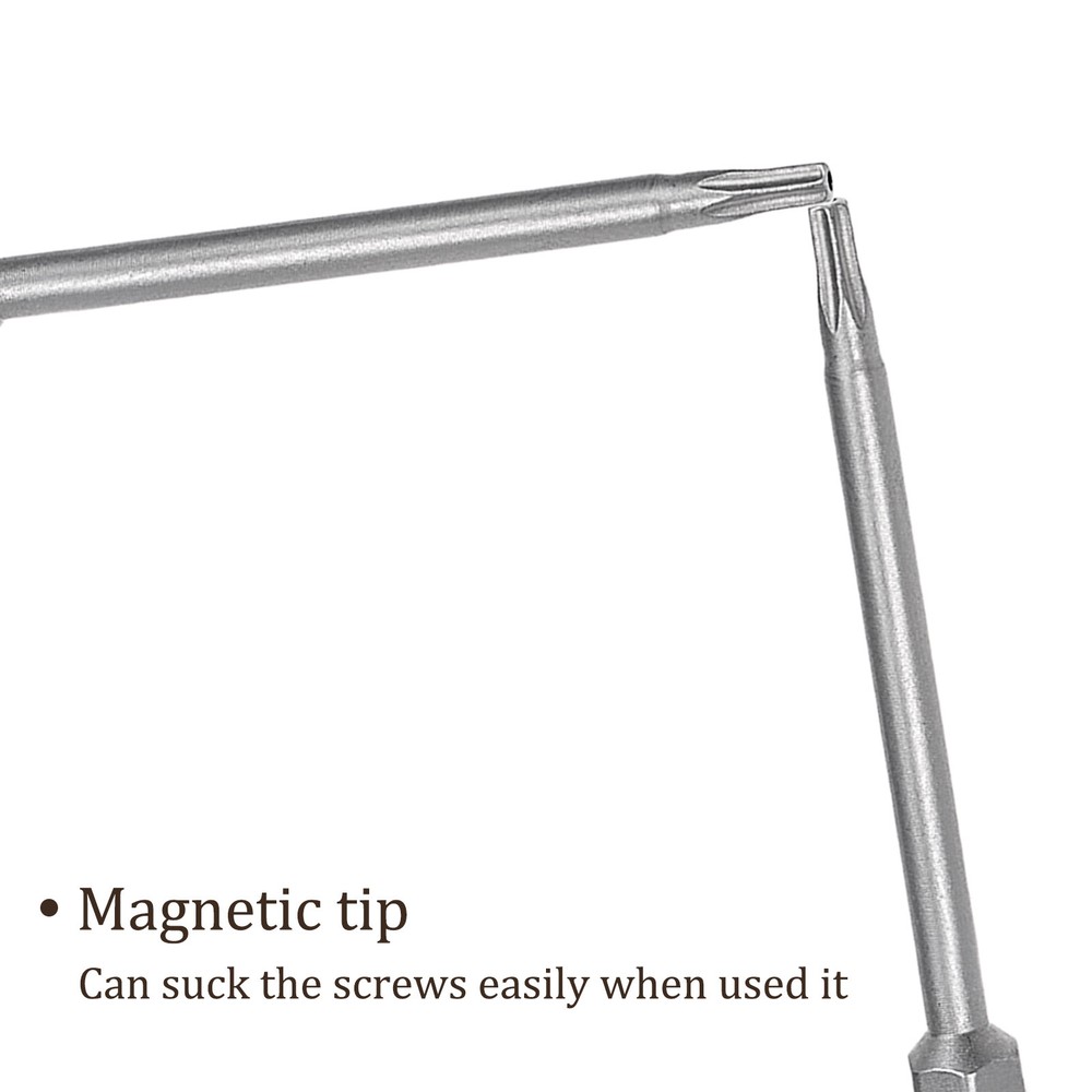 Document APPLICATION- Fit for electric screwdriver, manual screwdriver, power drill and other pneumatic or power tools with 1/4" hex holder. Widely used in cars, trucks, engines, motorcycles, computers, cable boxes and other applications.ABOUT THIS PRODUCT- Made of S2 alloy steel, which is a commonly used material in hardware with high hardness.- Sandblasting surface, corrosion resistance and durability.- Magnetic tip, can suck the screws easily when used it.- The hole in the center of each bit causes it to be tamper resistant, designed to prevent Cam-Out the hex bits clicks onto most standard sockets, screwdrivers, drill/driver kits & Power tools attachments.- Exquisite workmanship, each edge can be accurately locked screws, no damage to the screw, and the screwdriver head.SPECIFICATIONBit Type: T15 Shank: 1/4“ Hex ShankLength: 75mm / 3”Material: S2 Alloy SteelFinish: SandblastingPackage: 5 packs of Tamper Proof Torx Screwdriver BitTAKE NOTICE OF- Do not turn the screws with mismatched size to avoid damage to both the screw and the drill. 5pcs Torx Screwdriver Bit - [3 Inch x H1/4 x T10] Magnetic for Power Tool Use APPLICATION - Fit for electric screwdriver, manual screwdriver, power drill and other pneumatic or power tools with 1/4" hex holder. Widely used in cars, trucks, engines, motorcycles, computers, cable boxes and other applications. ABOUT THIS PRODUCT - Made of S2 alloy steel, which is a commonly used material in hardware with high hardness. - Sandblasting surface, corrosion resistance and durability. - Magnetic tip, can suck the screws easily when used it. - The hole in the center of each bit causes it to be tamper resistant, designed to prevent Cam-Out the hex bits clicks onto most standard sockets, screwdrivers, drill/driver kits & Power tools attachments. - Exquisite workmanship, each edge can be accurately locked screws, no damage to the screw, and the screwdriver head. SPECIFICATION Bit Type: T15 Shank: 1/4“ Hex Shank Length: 75mm / 3” Material: S2 Alloy Steel Finish: Sandblasting Package: 5 packs of Tamper Proof Torx Screwdriver Bit TAKE NOTICE OF - Do not turn the screws with mismatched size to avoid damage to both the screw and the drill. Hot Item Payment 1.We accept eBay payment . 2.Payment must be received within 7 business days of auction closing. Shipping 1.We ship to your eBay or Paypal address. Please make sure your eBay and Paypal address is correct before you pay. 2.Items will be shipped within 1-3 business day when we received payment. 3.Delivery time depends on destination and other factors. Description Policy 5pcs Torx Screwdriver Bit - [3 Inch x H1/4 x T10] Magnetic for Power Tool Use APPLICATION - Fit for electric screwdriver, manual screwdriver, power drill and other pneumatic or power tools with 1/4" hex holder. Widely used in cars, trucks, engines, motorcycles, computers, cable boxes and other applications. ABOUT THIS PRODUCT - Made of S2 alloy steel, which is a commonly used material in hardware with high hardness. - Sandblasting surface, corrosion resistance and durability. - Magnetic tip, can suck the screws easily when used it. - The hole in the center of each bit causes it to be tamper resistant, designed to prevent Cam-Out the hex bits clicks onto most standard sockets, screwdrivers, drill/driver kits & Power tools attachments. - Exquisite workmanship, each edge can be accurately locked screws, no damage to the screw, and the screwdriver head. SPECIFICATION Bit Type: T15 Shank: 1/4“ Hex Shank Length: 75mm / 3” Material: S2 Alloy Steel Finish: Sandblasting Package: 5 packs of Tamper Proof Torx Screwdriver Bit TAKE NOTICE OF - Do not turn the screws with mismatched size to avoid damage to both the screw and the drill. Hot Item Payment 1.We accept eBay payment . 2.Payment must be received within 7 business days of auction closing. Shipping 1.We ship to your eBay or Paypal address. Please make sure your eBay and Paypal address is correct before you pay. 2.Items will be shipped within 1-3 business day when we received payment. 3.Delivery time depends on destination and other factors.